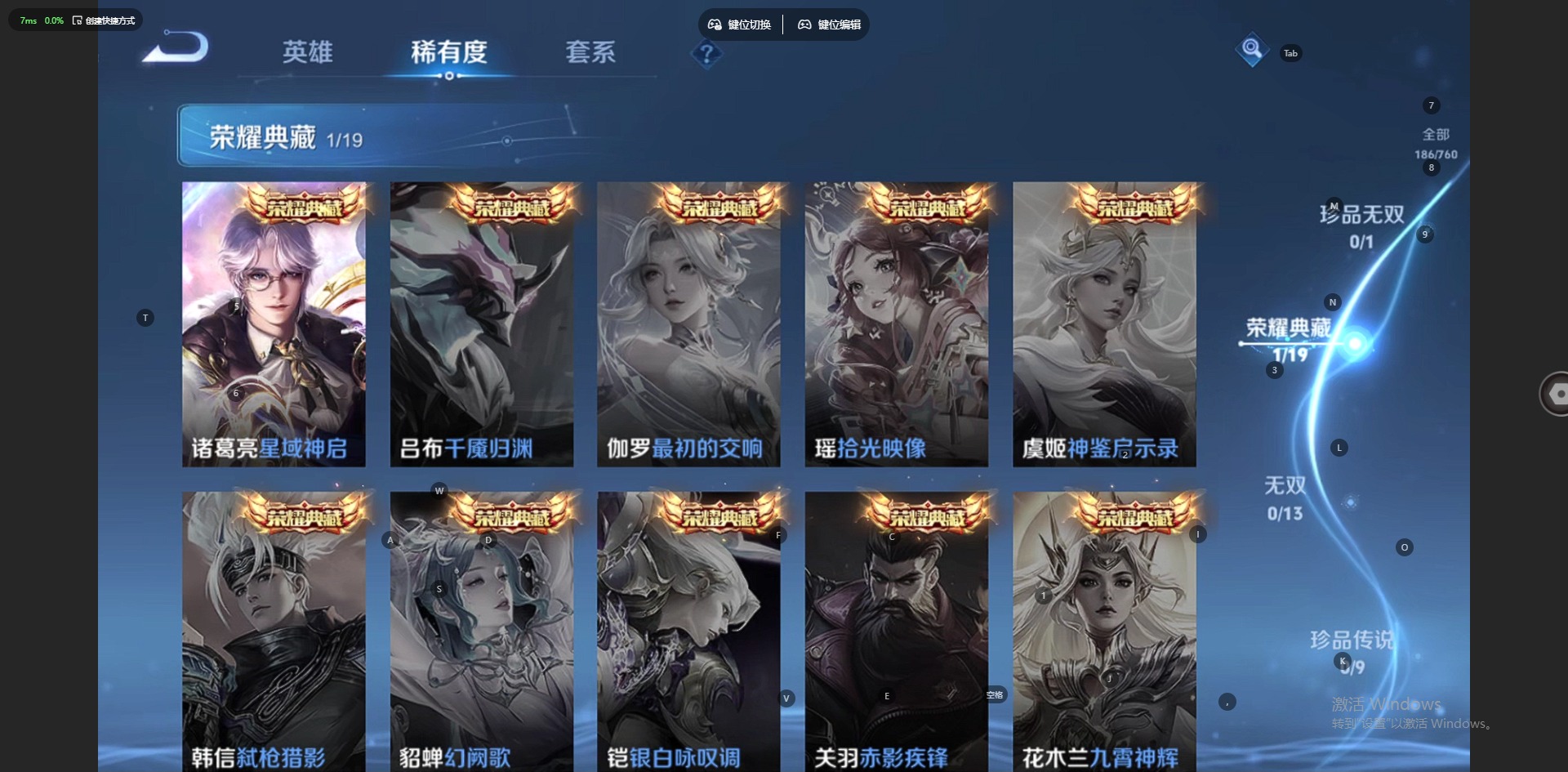 v4 1典藏 4传说 126英雄 186皮肤 可修改实名 男号 【英雄全皮】蚩奼全皮大禹全皮 【稀有英雄】大司命韩信韩跳跳夏洛特夏师傅艾琳橘右京橘子娜可露露鸟人不知火舞赵云金蝉唐僧戈娅 【荣耀水晶】星域神启倪克斯贼亮 【传说皮】神树通天黄金射手座久胜