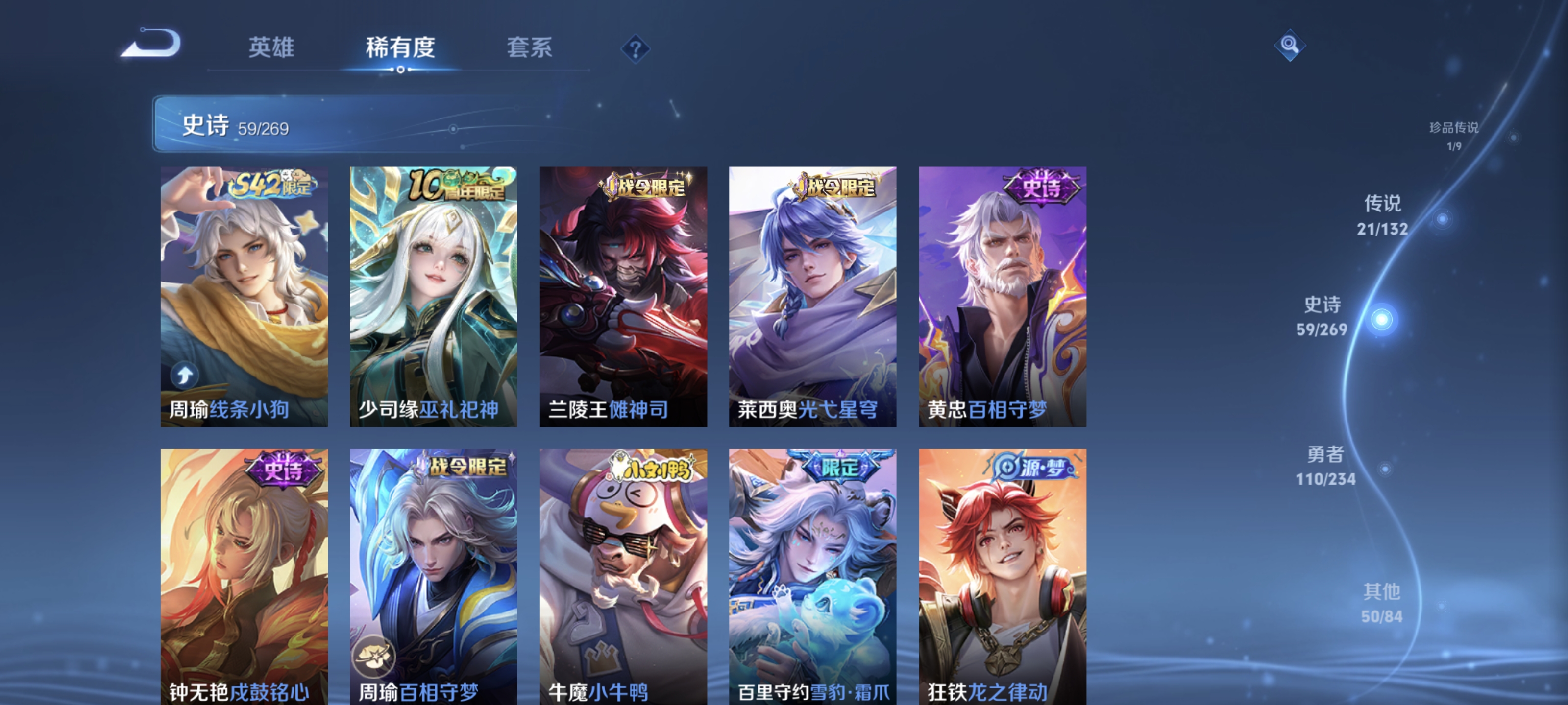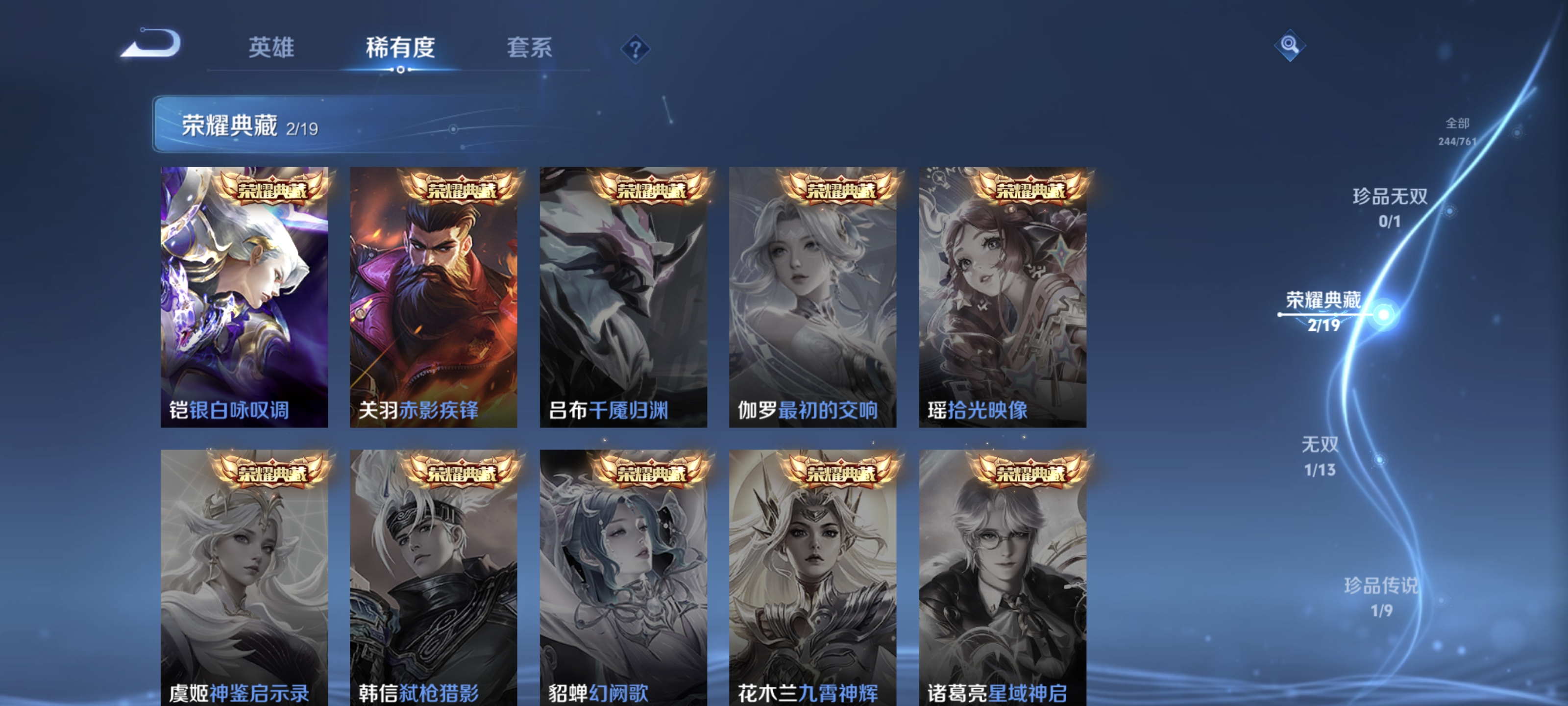 txwz30269 v8-244皮2典藏赤影疾锋,银白咏叹调1无双神罪 1珍品黑崎一护 21传说霜月吟,启明星使,绛天战甲,黄金白羊座,怒海麟威,末日机甲,地狱火,淬星耀世,诗剑行,逐花归海,炽阳神光,黄金射手座,地狱之眼,乞巧织情,无双飞将,一念神魔,黄金狮子座,愿照·众生和,愿照·山河定,鸣野蒿,乘龙·淬吴钩 58史诗