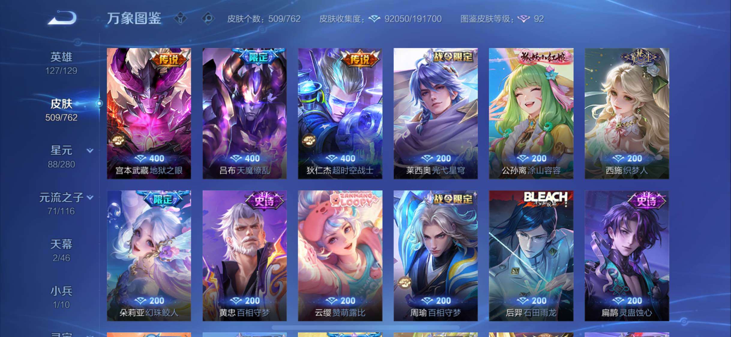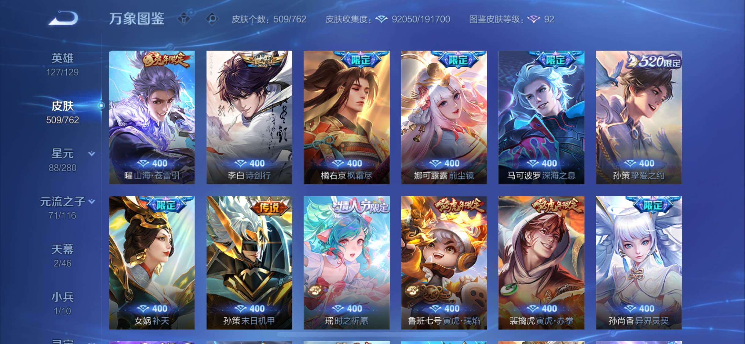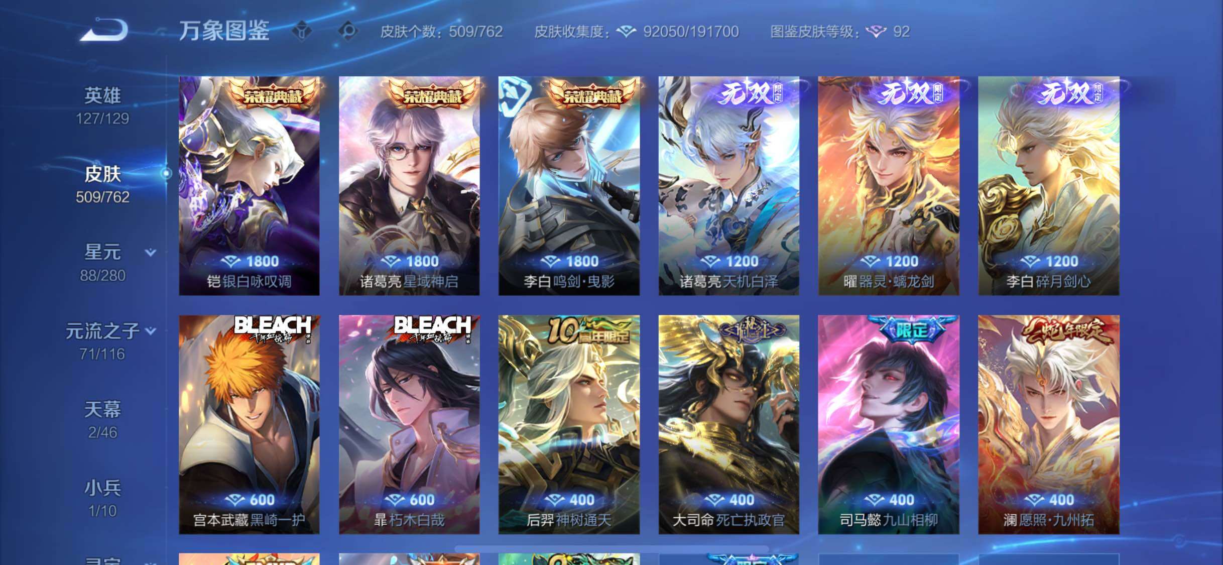 【精品打野v10·3典藏·3无双·2珍品·6星传说·67传说·1小兵·小国澜·金标万战玄策·打野44段·全皮李白·全皮曜·全皮暃·全皮娜可·全皮诸葛亮·银白咏叹调·黑崎一护·紫瑶·荆棘舞步·小兵狐妖小红娘·满虎年限定·满龙年限定·白虎志·夜礼服假面·永曜之星·浮生妄·冥王哈迪斯·霜北刀·山海苍雷引·山海炽霜斩·太华·至尊宝·可二次】w12703-苹果wx-127英雄-509皮肤-25王者印