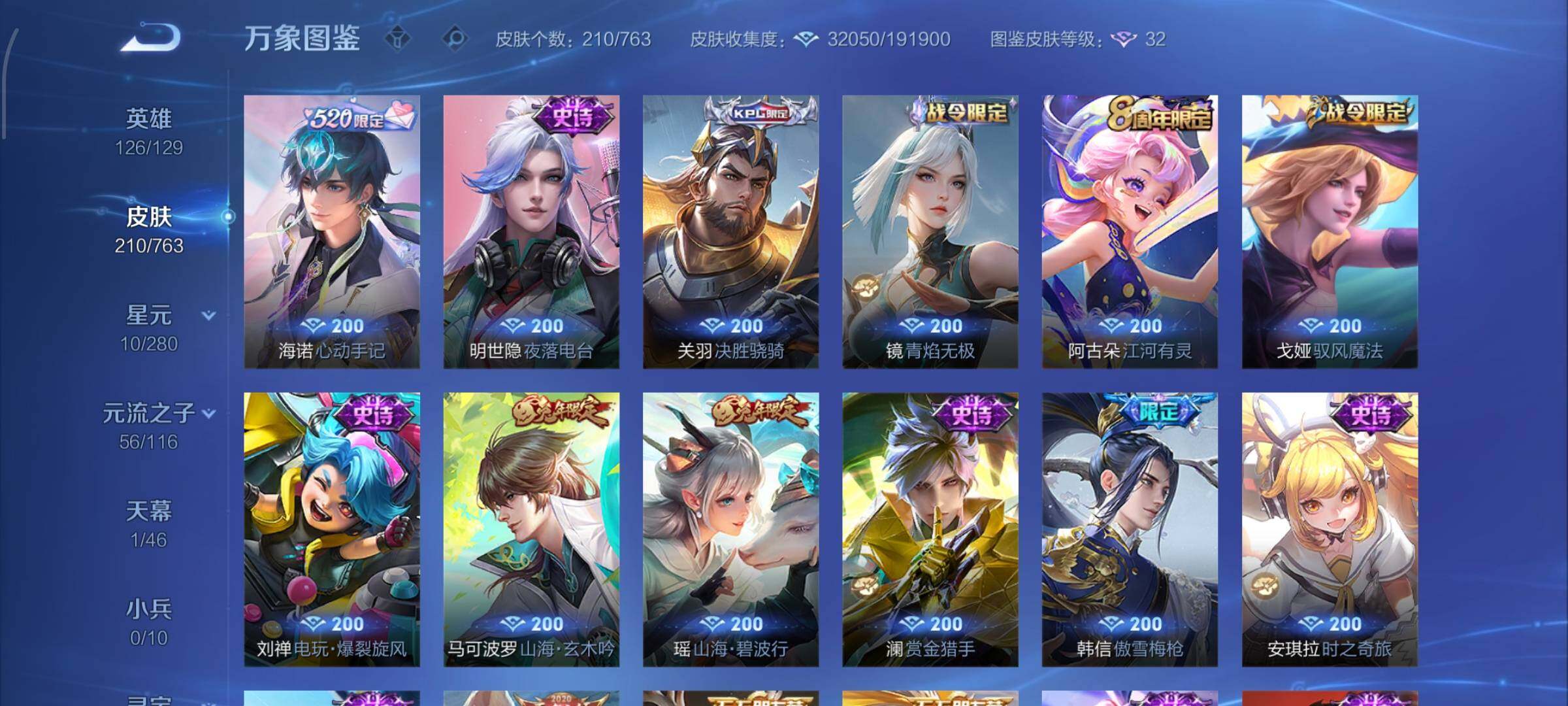 【高性价比·鸣剑曳影·瑶大耳狗之梦·全皮澜·金色貂蝉·财神纳福天幕·祥瑞亨通·心动手记·无尽星芒·游龙清影·镜炽阳神光·云鹰飞将·魔法小厨娘·马可波罗山海玄木吟·瑶山海碧波行·可二次】w14398-安卓q-126英雄-210皮肤-5王者印记-190铭文-贵族积分5w【贵族8】【1典藏·1珍品·1星传说·15传说·1天幕·21按键】【因赛季更新游戏段付以上号为准!】 【英雄全皮】:孙权全皮,