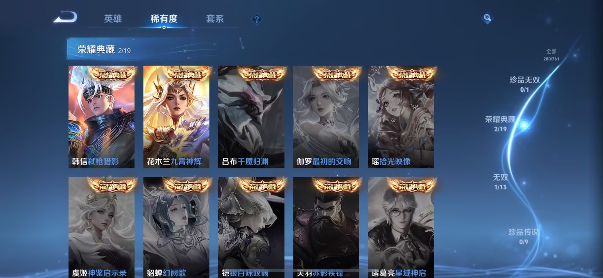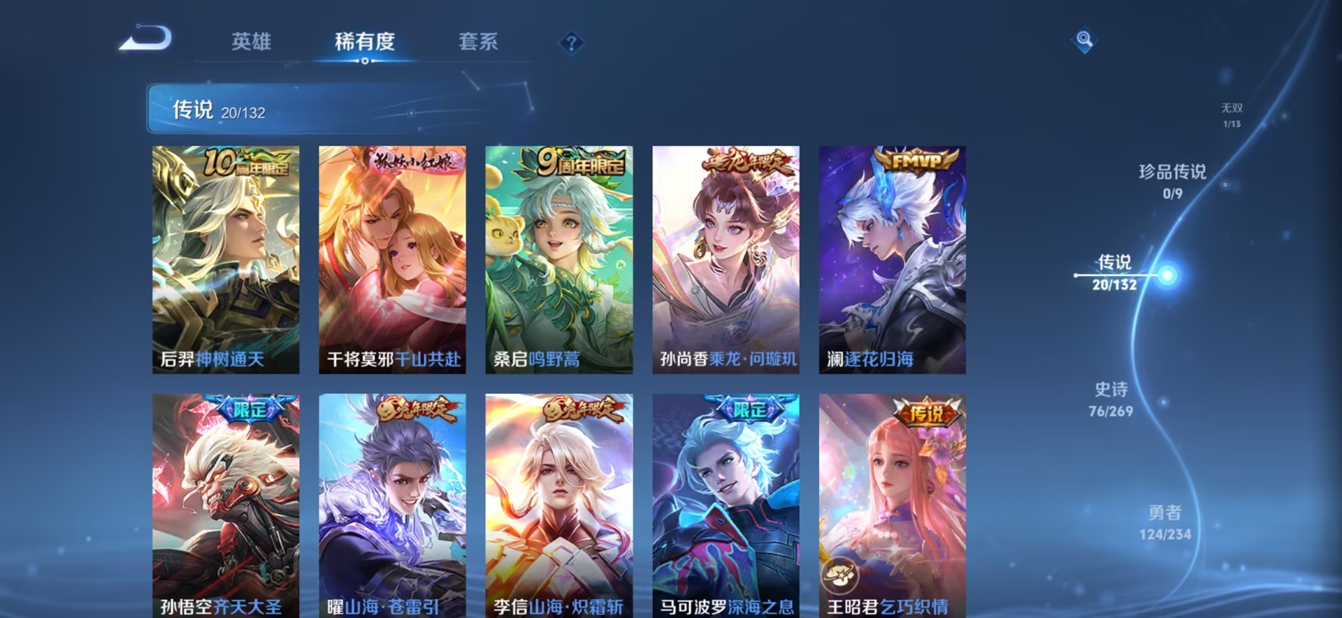 126英雄-280皮肤-[]v8 2典藏 1无双 20传说 126英雄 280皮肤 可修改实名 男号 【英雄全皮】李信全皮孙权全皮 【稀有英雄】大司命嬴政始皇帝韩信韩跳跳夏洛特夏师傅艾琳橘右京橘子娜可露露鸟人不知火舞赵云金蝉唐僧戈娅 【荣耀水晶】九霄神辉木兰