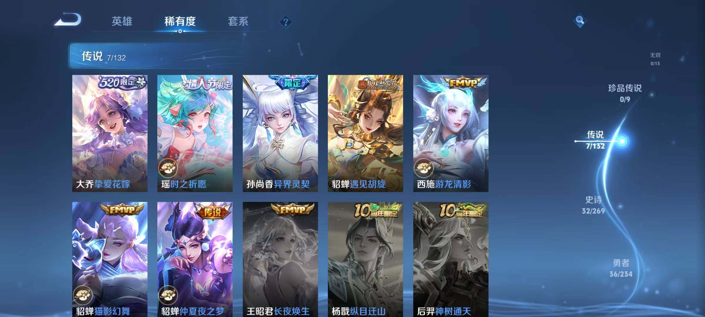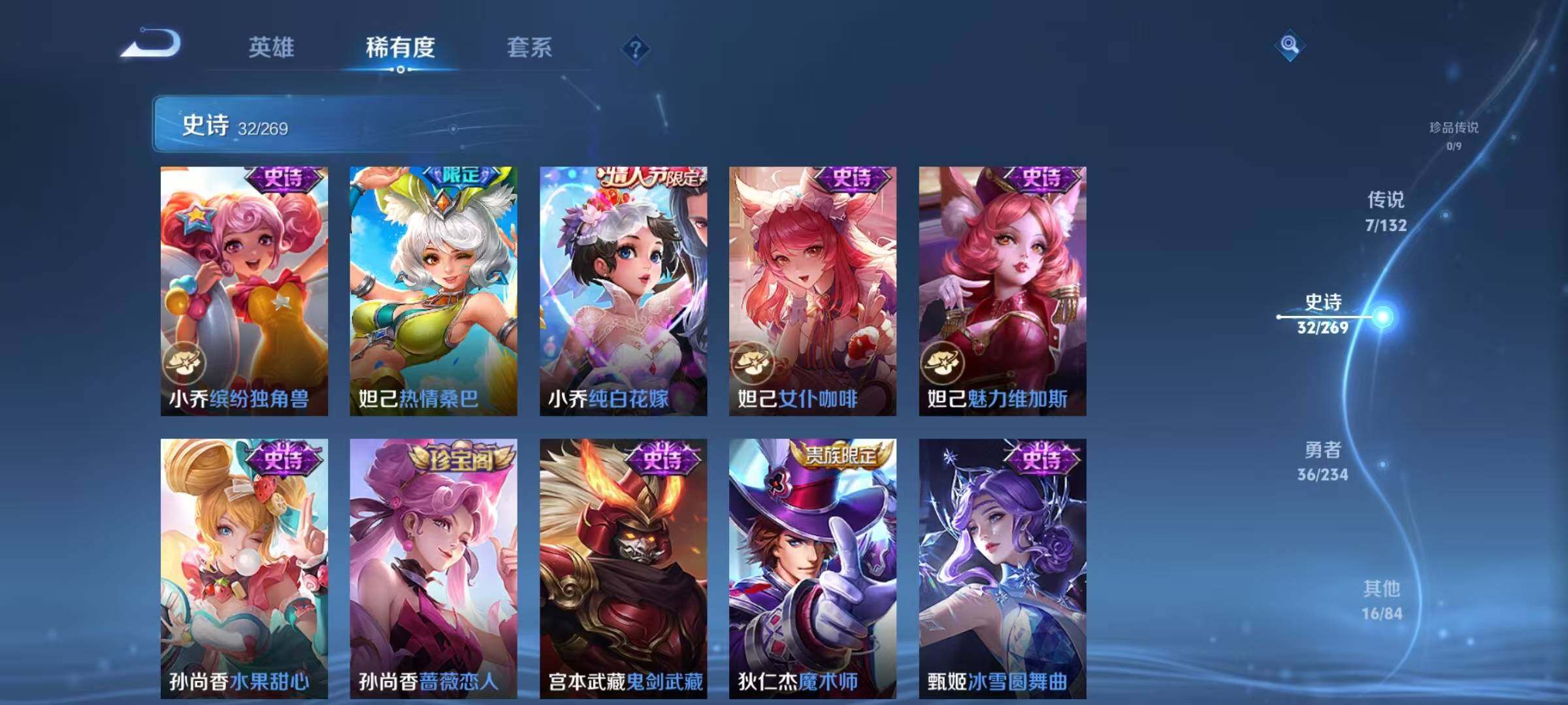 安卓q-v0-尊贵铂金iii段位-98英雄-91皮肤-7传说-32史诗 【传说皮肤】:大乔挚爱花嫁,瑶时之祈愿,孙尚香异界灵契,貂蝉遇见胡旋,西施游龙清影,貂蝉猫影幻舞,貂蝉仲夏夜之梦 【限定皮肤】:狄仁杰阴阳师,小乔纯白花嫁,赵云皇家上将,妲己热情桑巴,妲己时之彼端,妲己时之奇旅,孙尚香蔷薇恋人,孙尚香异界灵契,庄周高山流水,孙膑寅虎展翼,白起夜都怪侠,芈月幻夜卜梦,甄姬落雪兰心,狄仁杰魔术师,狄仁杰万华元夜,达摩沙漠行僧,项羽海滩派对,貂蝉遇见胡旋,程咬金演武夺筹,王昭君午后时光,兰陵王金庭之子,后羿圣弓游侠,李元芳云中旅人,杨玉环遇见飞天,杨玉环寅虎心曲,干将莫邪真爱魔法,鬼谷子五谷丰年,大乔挚爱花嫁,黄忠火炮绅士,苏烈千军破阵,沈梦溪大漠名商,明世隐吟游魔法,裴擒虎擒涛扼浪,狂铁电玩高手,瑶时之祈愿,瑶山海碧波行,嫦娥拒霜思,鲁班大师探海日志,桑启海盐诗旅,张良古海寻踪,鬼谷子天穹祈灯 【年限皮肤】:孙膑寅虎展翼,杨玉环寅虎心曲,瑶山海碧波行 【赛季限定】:狄仁杰万华元夜,程咬金演武夺筹,苏烈千军破阵,达摩沙漠行僧,兰陵王金庭之子,沈梦溪大漠名商,李元芳云中旅人,桑启海盐诗旅,裴擒虎擒涛扼浪,鲁班大师探海日志,张良古海寻踪,鬼谷子天穹祈灯 【战令限定】:干将莫邪真爱魔法,后羿圣弓游侠,黄忠火炮绅士,芈月幻夜卜梦,明世隐吟游魔法,白起夜都怪侠,狂铁电玩高手,王昭君午后时光,甄姬落雪兰心 【史诗皮肤】:赵云皇家上将,貂蝉圣诞恋歌,甄姬冰雪圆舞曲,狄仁杰魔术师,宫本武藏鬼剑武藏,孙尚香蔷薇恋人,孙尚香水果甜心,妲己魅力维加斯,妲己女仆咖啡,小乔纯白花嫁,妲己热情桑巴,小乔缤纷独角兽,安琪拉心灵骇客,蔡文姬舞动绿茵,杨玉环遇见飞天,狄仁杰鹰眼统帅,娜可露露晚萤,妲己时之彼端,瑶遇见神鹿,干将莫邪真爱魔法,安琪拉时之奇旅,庄周高山流水,嫦娥拒霜思,黄忠火炮绅士,杨玉环寅虎心曲,孙膑寅虎展翼,明世隐吟游魔法,貂蝉唤灵魅影,狂铁电玩高手,妲己时之奇旅,鬼谷子五谷丰年,瑶山海碧波行 【其他皮肤】:项羽海滩派对,露娜哥特玫瑰,宫本武藏未来纪元,安琪拉玩偶对对碰,孙膑天使之翼,妲己少女阿狸,亚瑟死亡骑士,甄姬花好人间,狄仁杰阴阳师,刘备汉昭烈帝,钟无艳海滩丽影,王昭君幻想奇妙夜,孙尚香沉稳之力,大乔守护之力,吕布野性能量,狄仁杰万华元夜,程咬金演武夺筹,张良缤纷绘卷,苏烈千军破阵,后羿圣弓游侠,妲己紫罗兰之誓,达摩沙漠行僧,芈月幻夜卜梦,白起夜都怪侠,兰陵王金庭之子,王昭君午后时光,沈梦溪大漠名商,甄姬落雪兰心,李元芳云中旅人,桑启海盐诗旅,海月幻泉雾影,裴擒虎擒涛扼浪,鲁班大师探海日志,李元芳妄想特派,张良古海寻踪,鬼谷子天穹祈灯,钟无艳生化警戒,貂蝉异域舞娘,曹操死神来了,李白范海辛,虞姬加勒比小姐,蔡文姬蔷薇王座,雅典娜战争女神,太乙真人圆桌骑士,大乔伊势巫女,杨玉环霓裳曲,弈星踏雪寻梅,伽罗花见巫女,嫦娥露花倒影,瑶森,金蝉前尘,桑启画中游 【内测皮肤】:孙尚香蔷薇恋人 【营地id】:1709147132