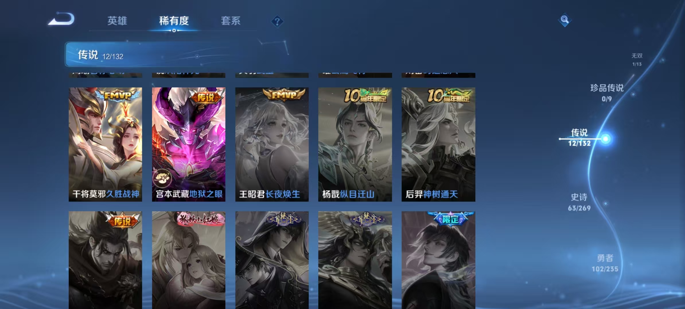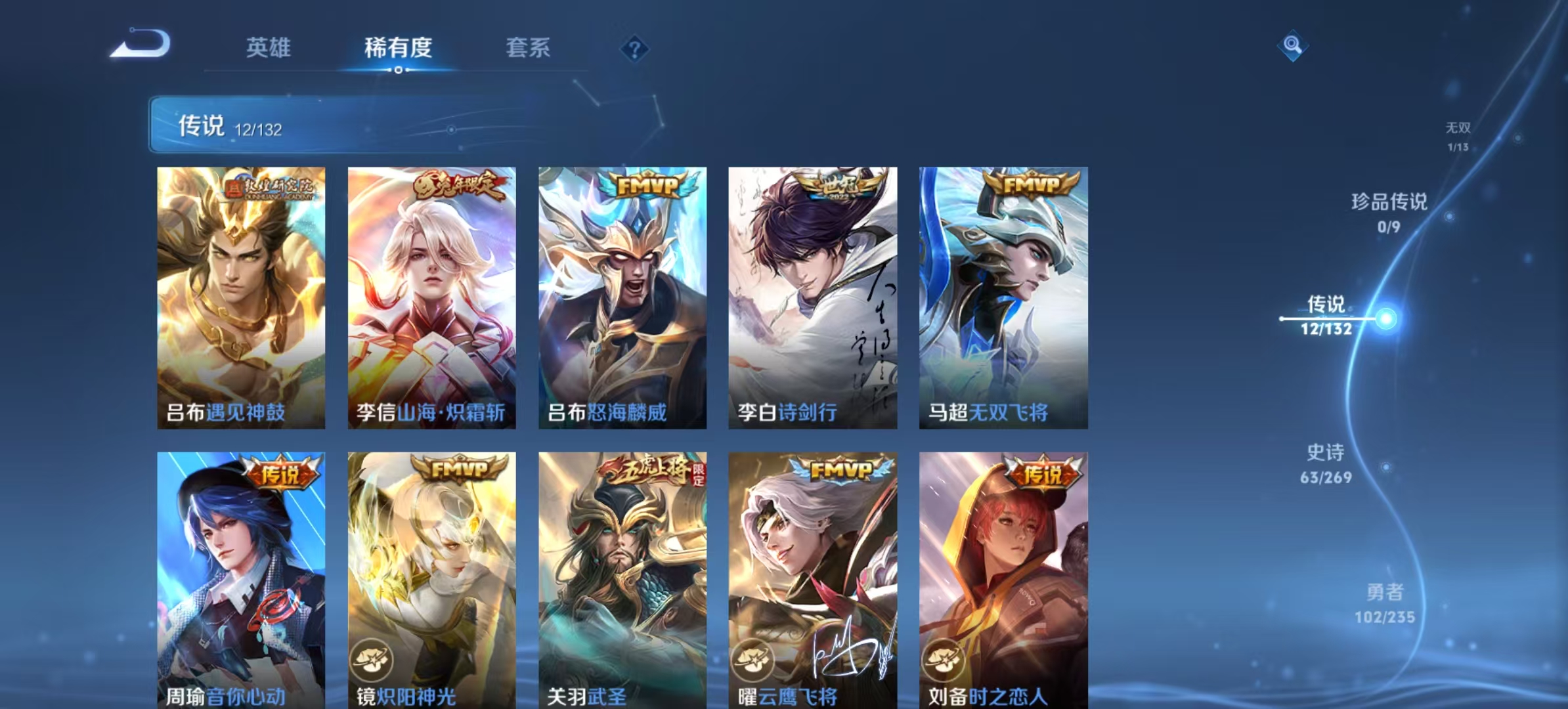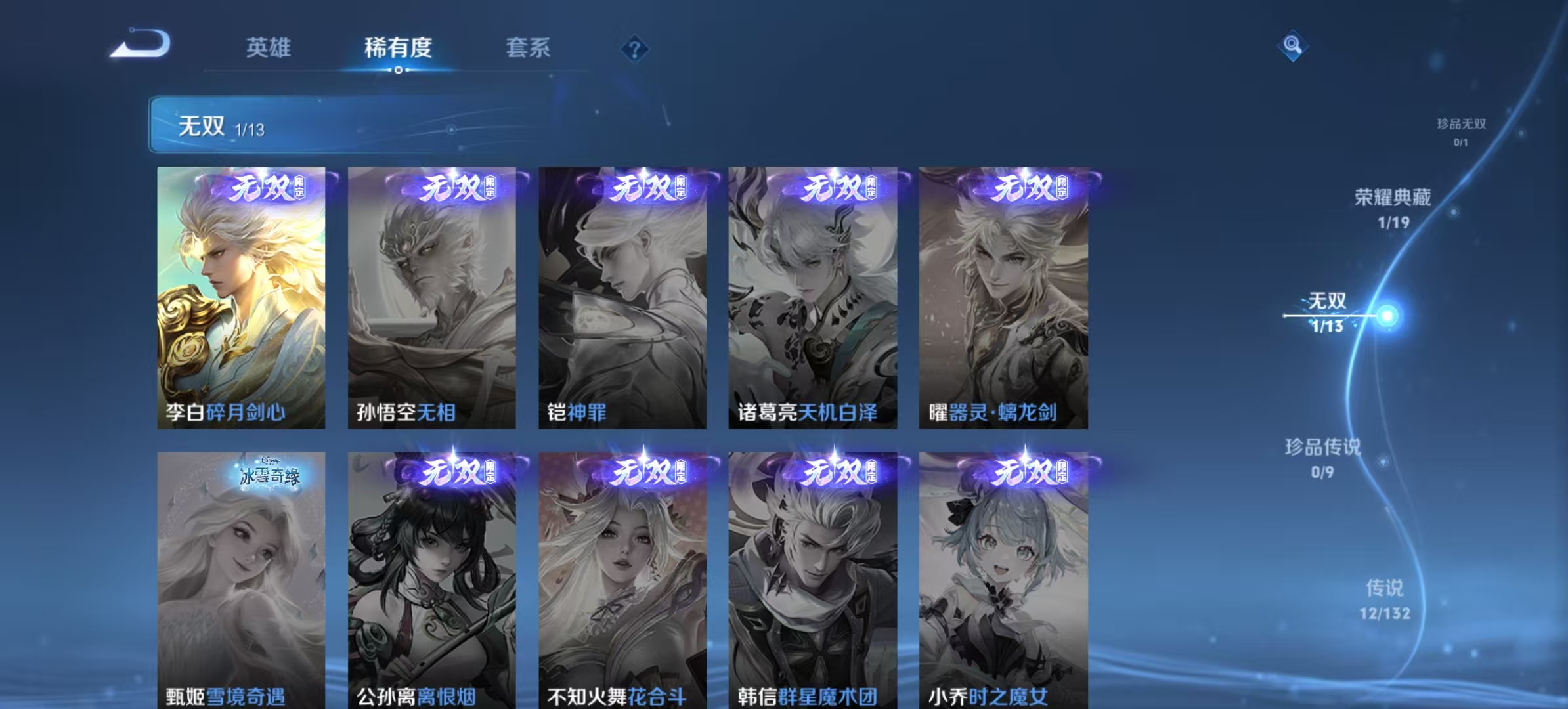 txwz30328 李白玩家必备 v7 213皮 典藏1(鸣剑·曳影)无双1(碎月剑心)传说12(音你心动,诗剑行,武圣,地狱之眼,山海·炽霜斩,无双飞将,时之恋人,云鹰飞将,怒海麟威,炽阳神光,遇见神鼓,久胜战神)史诗62