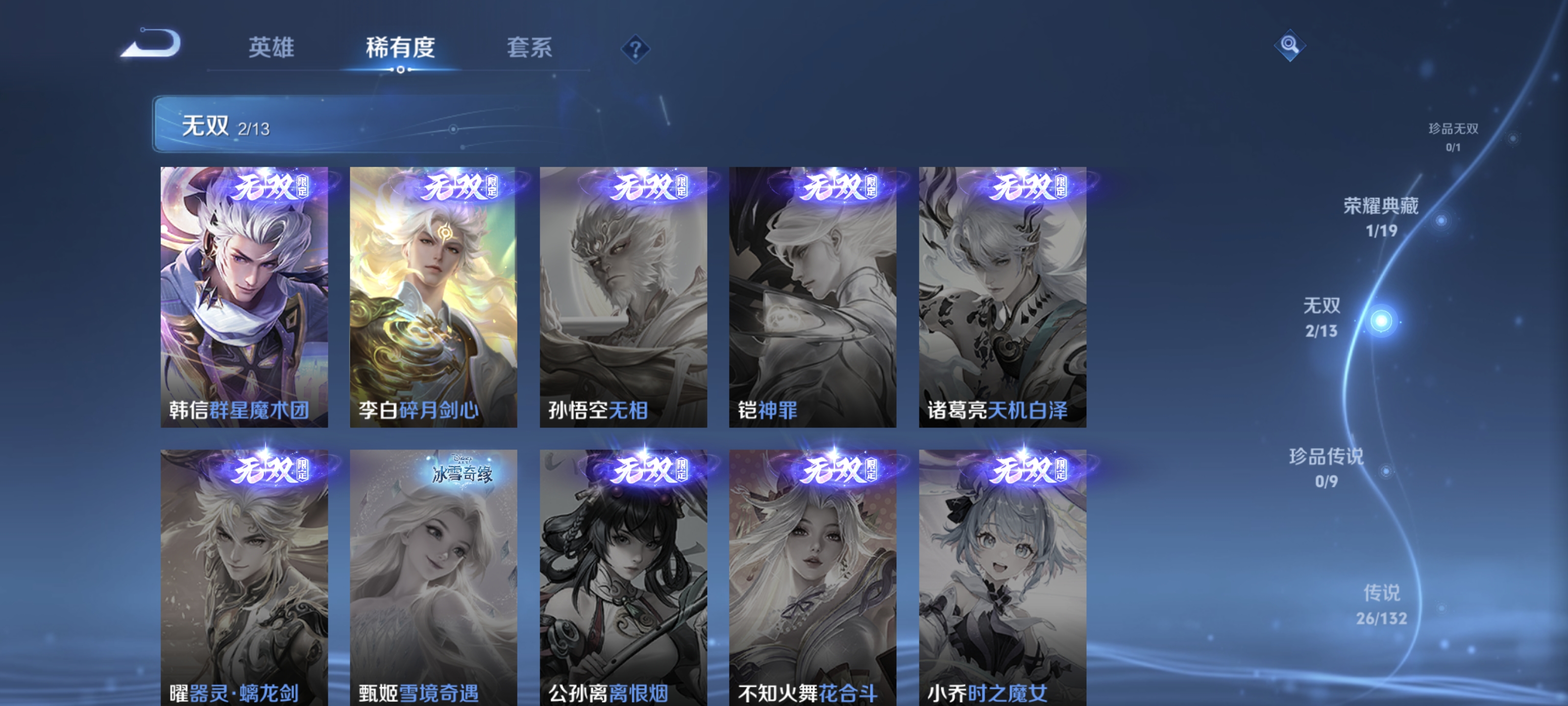 txwz30260 v8 151皮 1小兵-青铜锵锵兵 1荣耀典藏弑呛猎影 2无双群星魔术团,碎月剑心 26传说神树通天,妄想实况,鸣野蒿,凤求凰,启明星使,挚爱之约,群星魔术团,前尘镜,黄金天蝎座,枫霜尽,落雪白狼,曦玄引,曦玄引,寅虎·赤拳,乘龙·问璇玑,乘龙·铭钟鼎,乘龙·淬吴钩,琥珀纪元,琥珀纪元,云鹰飞将,云霓雀翎,音你心动,超时空战士,淬星耀世,逐花归海,末日机甲 51史诗