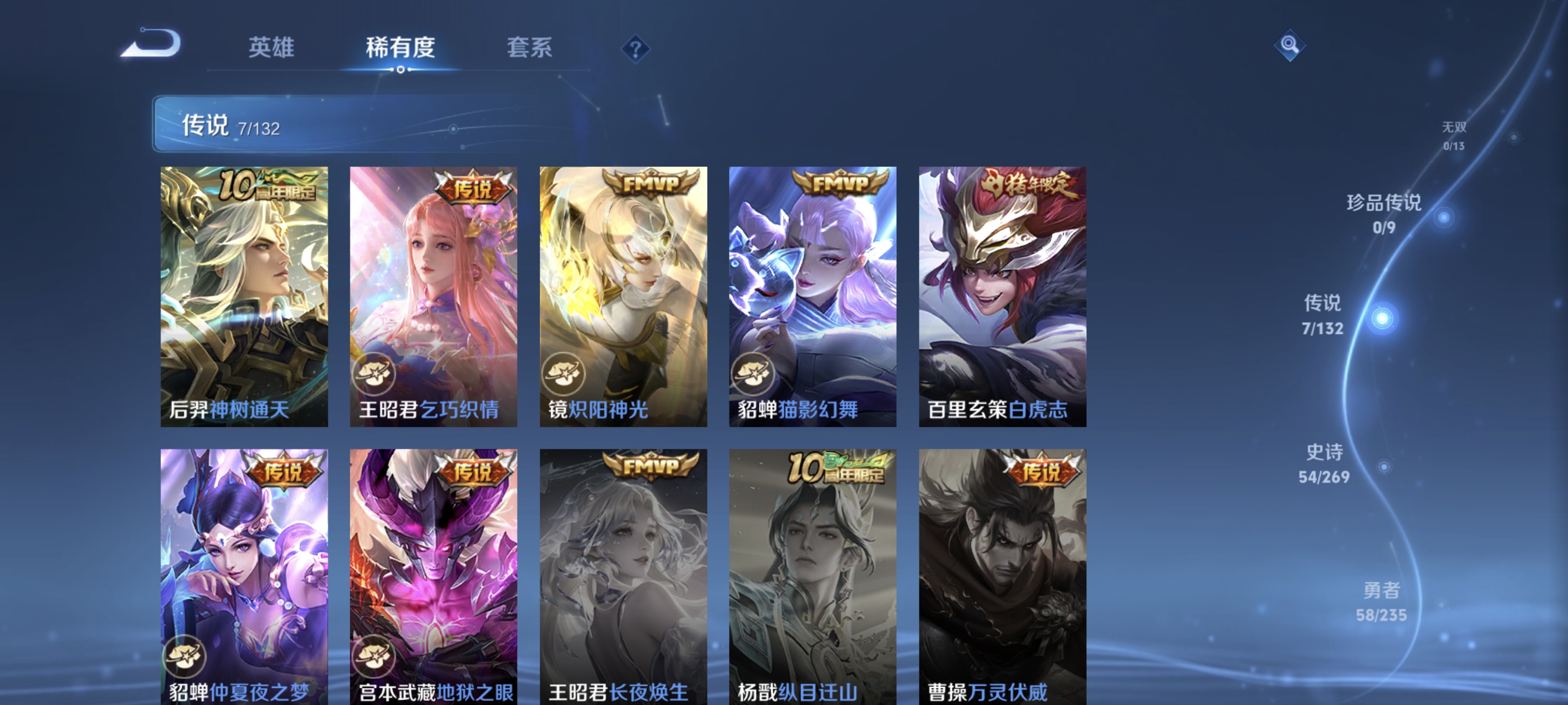 txwz30368 v7-147皮白虎志1荣耀典藏大秦宣太后1星传说 7传说210幸运值地狱之眼,神树通天,乞巧织情,仲夏夜之梦,猫影幻舞,白虎志,炽阳神光 53史诗