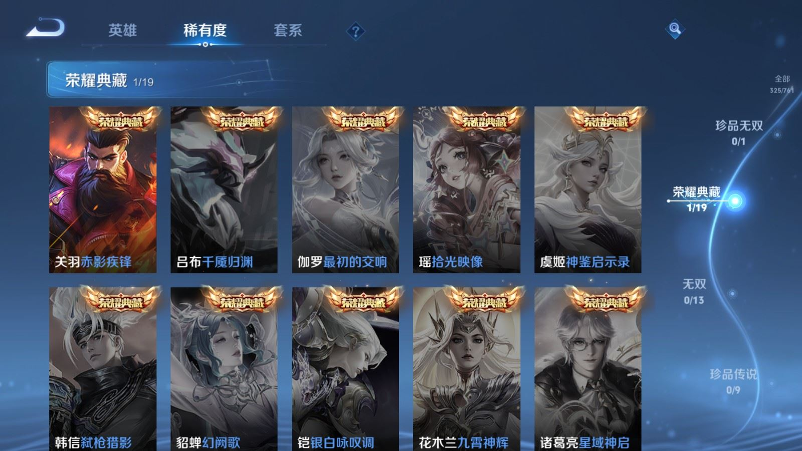 127英雄-325皮肤-127英雄-325皮肤v8-1典藏16传说 打野31段 金标白起 金标吕布 2星传说 幽冥之眼 星际治安官【全皮英雄】 澜全皮 影全皮 【典藏】 赤影疾锋 【传说】 乘龙铭钟鼎 逐花归海 万灵伏威 神树通天 纵目迁山 幻光神呛 祥瑞亨通 愿照九州拓 鸣野蒿 启明星使 李 电玩雷克斯 怒海麟威