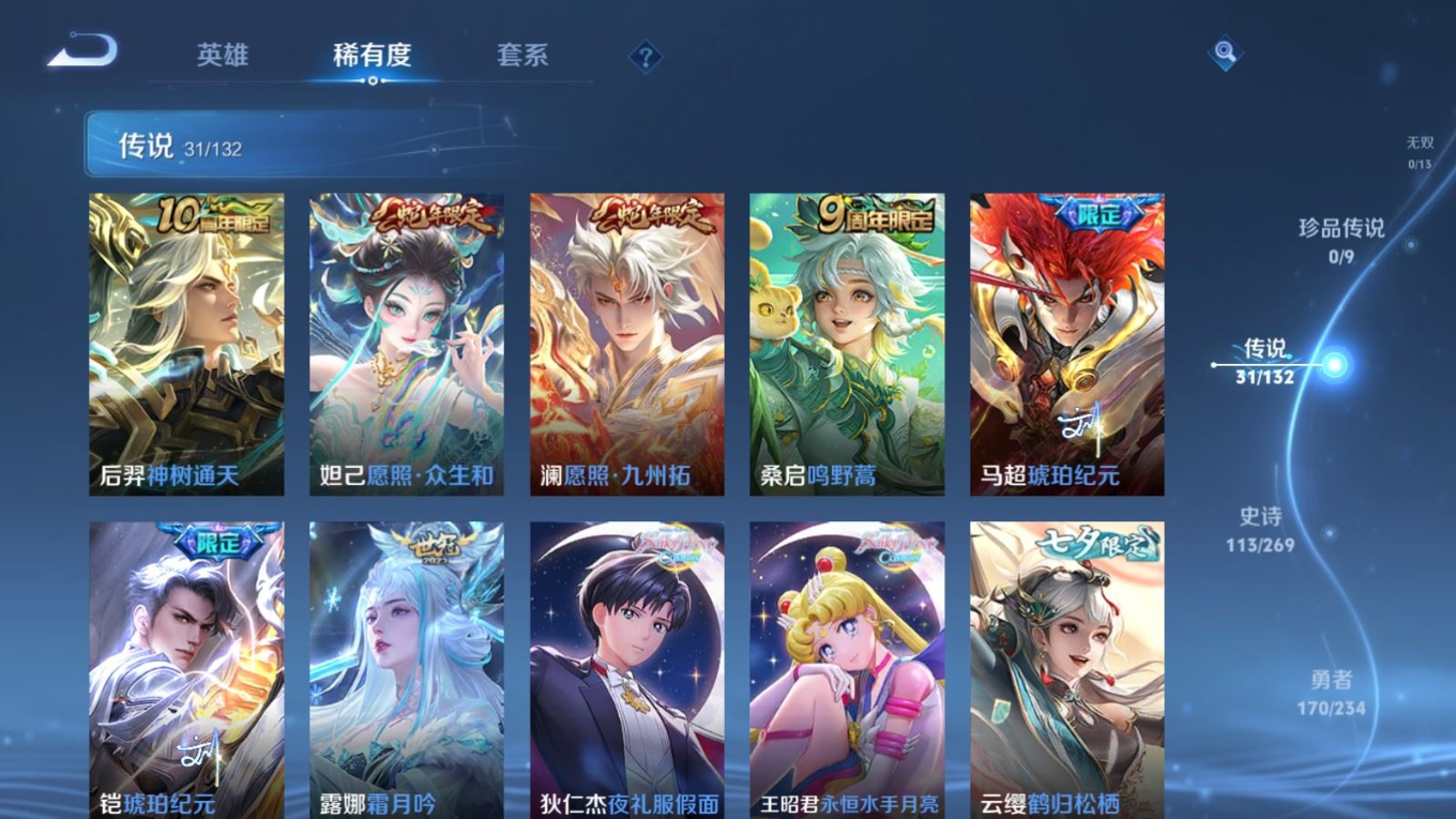 128英雄-388皮肤-128英雄-388皮肤-v8-2典藏31传说 3星传说 幽冥之眼 未来机甲 金色仲夏夜 【全皮英雄】 刘禅全皮 狂铁全皮 猪八戒全皮 影全皮 【典藏】 鸣剑曳影 银白咏叹调 【传说】 铠琥珀纪元 马超琥珀纪元 凤求凰 神树通天 愿照众生和 愿照九州拓 鸣野蒿 白虎志 启明星使 太华 武圣 永曜之星