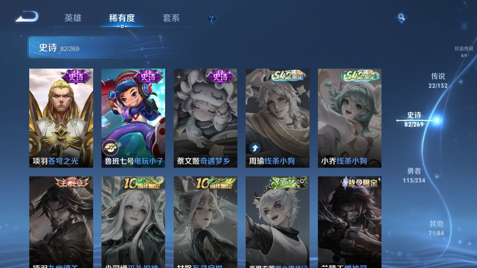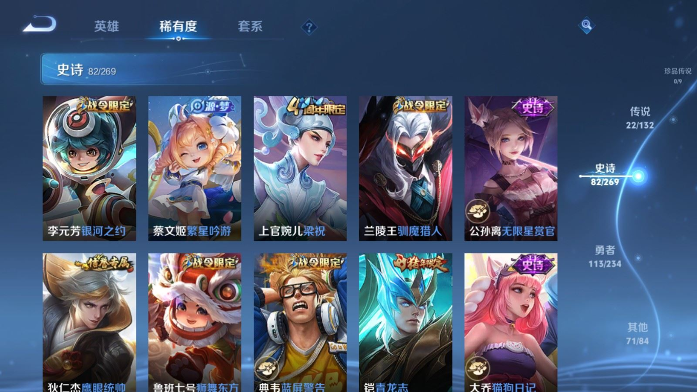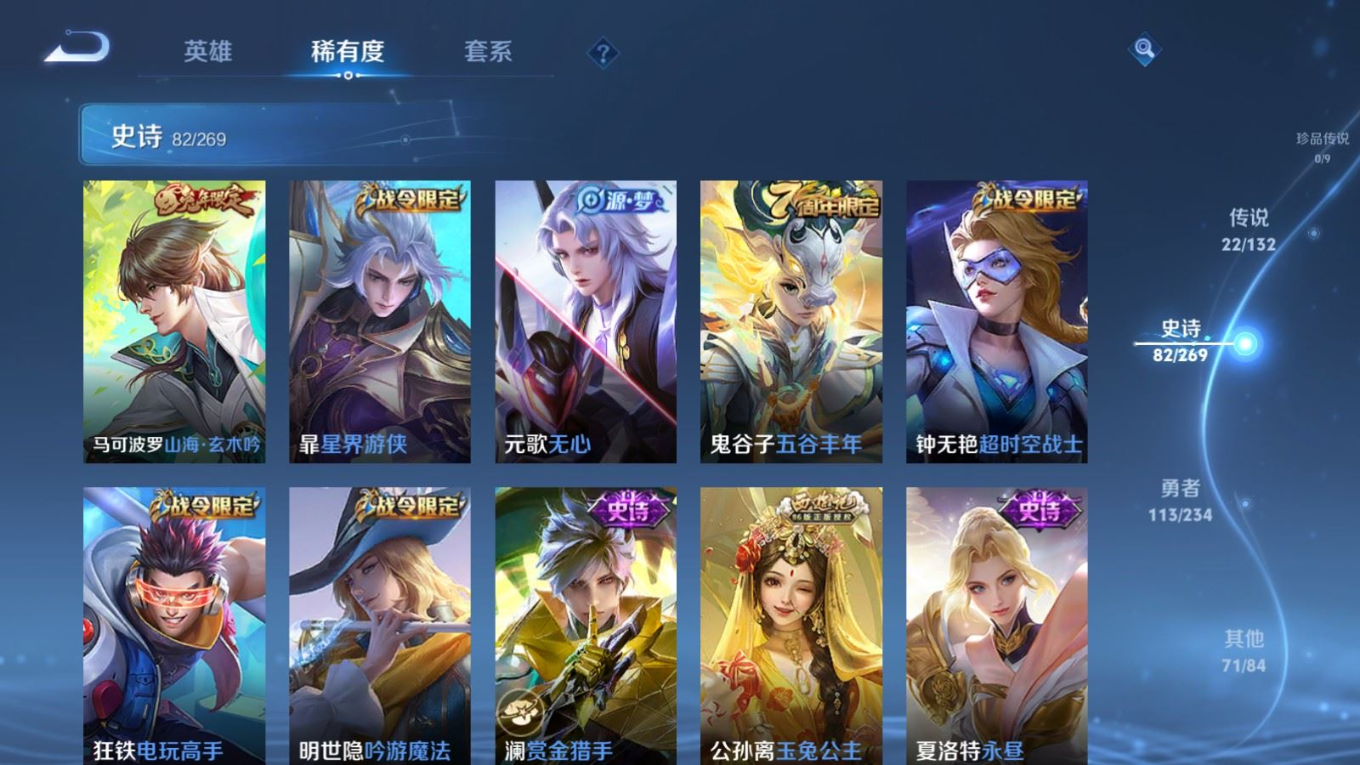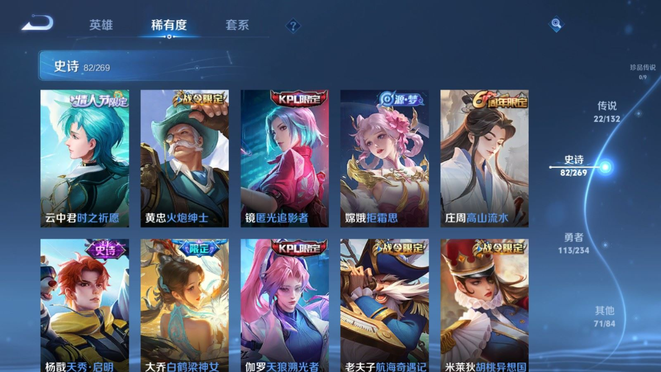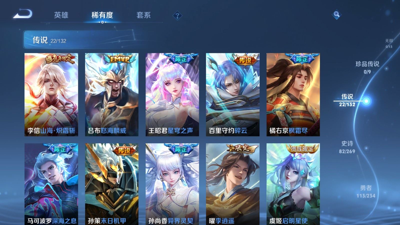 120英雄-290皮肤-120英雄-290皮肤v8-2典藏22传说 对抗37段 1星传说 未来机甲【全皮英雄】 李信全皮 【典藏】 全息碎影 星域神启 【传说】 启明星使 山海炽霜斩 武圣 李 枫霜尽 星穹之声 深海之息 异界灵契 碎云 怒海麟威 猫影幻舞 久胜战神 冠军飞将 一念神魔 黄金狮子座 超时空战士男 胖