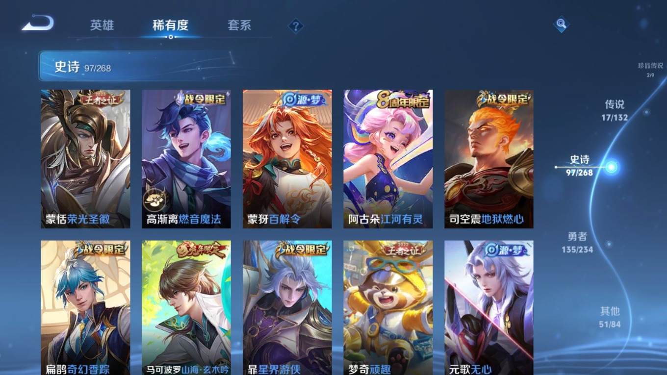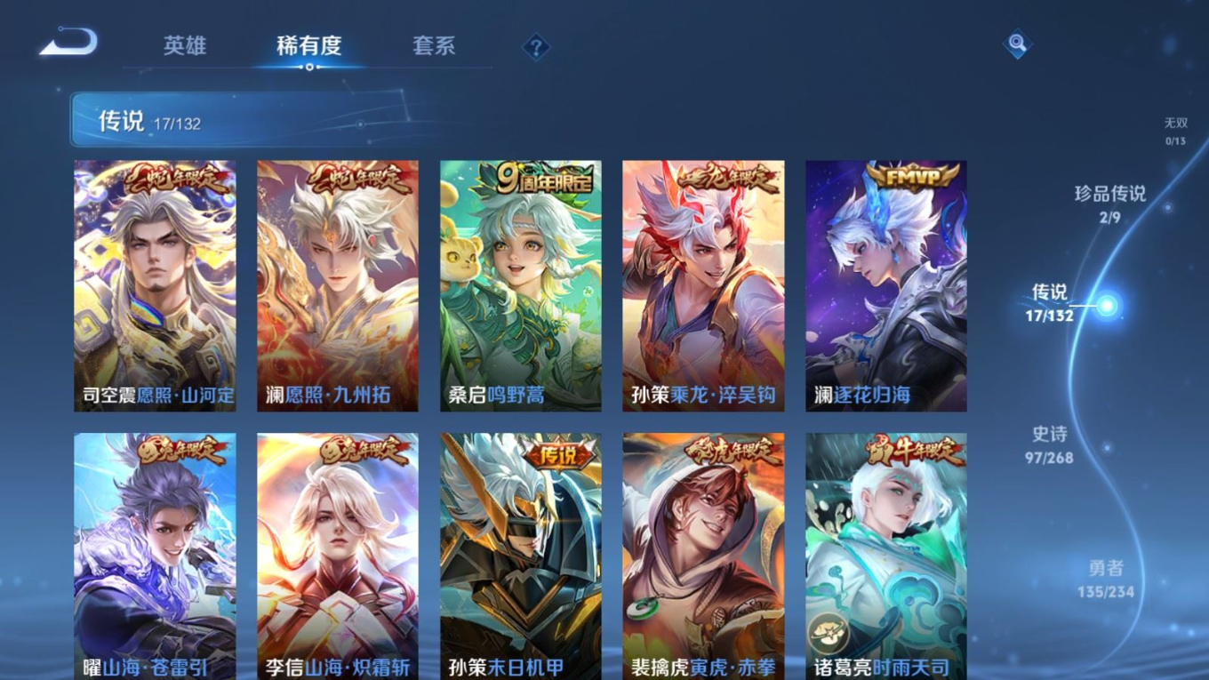128英雄-303皮肤-128英雄-303皮肤v8-1典藏2珍品传说17传说 打野32段 对抗路32段 1星传说 幽冥之眼 【典藏】 鸣剑曳影 【珍品传说】 时之奇旅孙策 怪盗基德 【传说】 乘龙淬吴钩 逐花归海 凤求凰 愿照九州拓 愿照山河定 鸣野蒿 白虎志 启明星使 时雨天司 寅虎赤拳 山海苍雷引 山海炽霜斩 炽阳