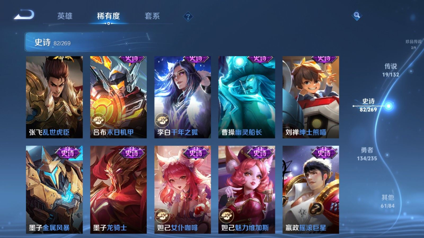 128英雄-299皮肤-128英雄-299皮肤v8-1典藏2珍品传说19传说 1星传说 幽冥之眼【全皮英雄】 司空震全皮 影全皮 【典藏】 九霄神辉 【珍品传说】 时之奇旅孙策 怪盗基德 【传说】 乘龙问璇玑 乘龙淬吴钩 愿照山河定 鸣野蒿 启明星使 齐天大圣 浮生妄 时之奇旅鲁班 挚爱之约 灼幽烈阳 绛天战甲 淬星耀