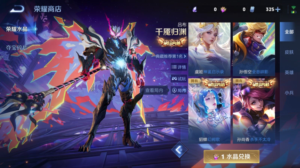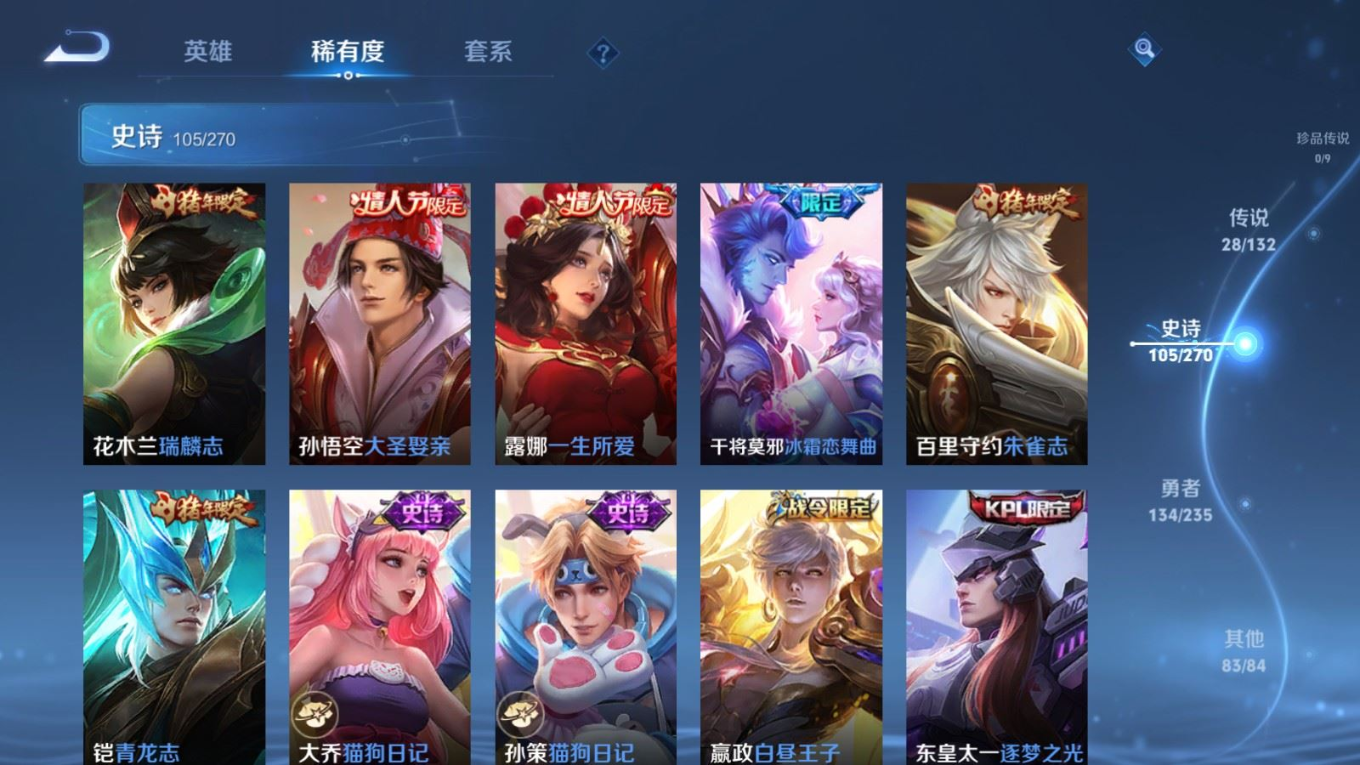 129英雄-355皮肤-129英雄-355皮肤-q场景限制-v9-5典藏1无双28传说 【全皮英雄】 李信全皮 夏洛特全皮 【典藏】 神鉴启示录 武则天 全息碎影 杀手不太冷 幻阙歌 【无双】 无相 【传说】 凤求凰 鸣野蒿 白虎志 启明星使 山海炽霜斩 牧神诗旅 齐天大圣 浮生妄 永曜之星 炽翼辉光 乞巧织情 音你心动男