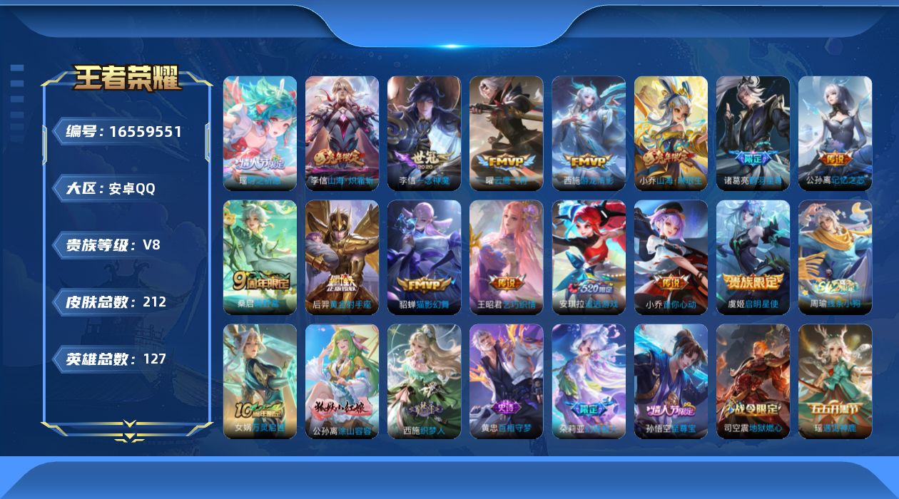 [16559551]0b08yo可二次"女号传说15优质限定12 钱包已注销、信用分正常、无设备脸 李信全皮, 传说限定:山海·炽霜斩山海·琳琅生追逃游戏安琪拉鹤羽星尊时之祈愿-瑶启明星使 传说皮肤:一念神魔音你心动-小乔乞巧织情游龙清影黄金射手座云鹰飞将猫影幻舞记忆之芯鸣野蒿 史诗限定:至尊宝唐三藏白鹤梁神女山海·碧波行匿光追影者天狼溯光者 优质史诗皮肤:修罗青蛇唤灵魅影时之奇旅-安琪拉诗语江南白蛇遇见神鹿 周年皮肤:江河有灵游园惊梦高山流水 珍宝阁:女武神 史诗皮肤:乘风破浪功夫厨神节奏热浪鬼剑武藏热力回旋缤纷独角兽魅力维加斯女仆咖啡摇滚巨星圣诞恋歌心灵骇客偶像歌手水果甜心电玩小子鹰眼统帅逐浪之夏特工魅影无限星赏官绅士熊喵电玩·爆裂旋风舞动绿茵猫狗日记-大乔