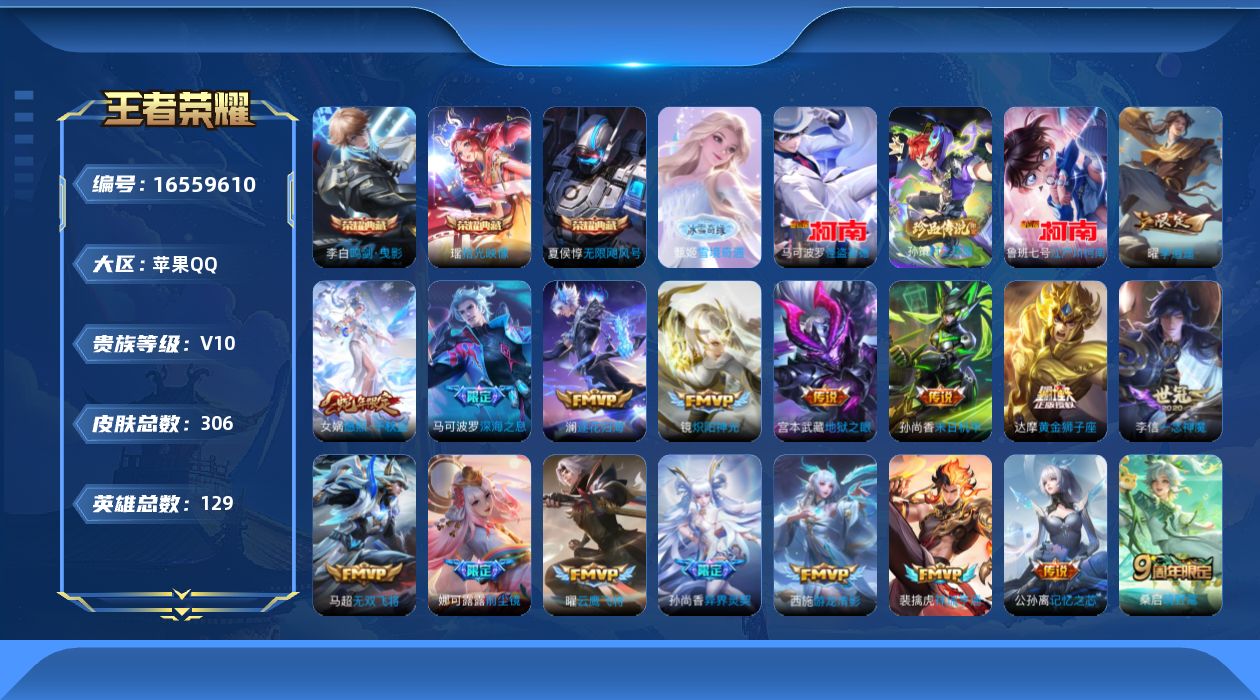 [16559610]0b0cfk"306皮肤v10无双1水晶5珍品传说3传说37优质限定26 qq钱包已注销 信用分合格 星会员已关联 水晶皮肤:无限飓风号鸣剑·曳影武则天拾光映像 小兵皮肤:雪境奇遇 无双皮肤:雪境奇遇-甄姬 珍品传说皮肤:时之奇旅-孙策江户川柯南怪盗基德 新传说限定:祥瑞亨通李玄雷天君愿照·千秋盛 传说限定:前尘镜画中仙异界灵契深海之息艾琳觅芳踪启明星使 传说皮肤:一念神魔澜逐花归海音你心动-小乔乞巧织情游龙清影末日机甲-孙尚香黄金射手座云霓雀翎牧神诗旅小动物乐团黄金狮子座冠军飞将无双飞将淬星耀世地狱之眼地狱火云鹰飞将炽阳神光音你心动-周瑜海洋之心仲夏夜之梦黄金白羊座久胜战神超时空战士-狄仁杰记忆之芯鸣野蒿 新史诗限定:赞萌露比幻珠鲛人小牛鸭 史诗限定:神威飞衡孙行者女儿国国王炽弈燎原陌上桑烈魂蜜橘之夏玉兔公主白鹤梁神女天狼溯光者匿光启智者 新史诗皮肤:苍鳞隐世完美假期浮梦罗烟石田雨龙百相守梦-黄忠末日机甲-莱西奥夜落电台 优质史诗皮肤:天秀·启明雪上飞焰永昼暗渊魔法晚萤修罗赏金猎手银翎春语龙鼓争鸣白蛇遇见神鹿 周年皮肤:李小龙遇见飞天梁祝高山流水 珍宝阁:妄想食味 史诗皮肤:地狱岩魂星夜王子圣诞狂欢末日机甲-吕布无心乘风破浪幽灵船长苍穹之光功夫厨神德古拉伯爵水晶猎龙者心灵战警猫狗日记-孙策节奏热浪鬼剑武藏紫霞仙子暗隐猎兽者冰冠公主黎明之约曙光守护者热力回旋纤云弄巧缤纷独角兽金属风暴魅力维加斯女仆咖啡摇滚巨星暗夜贵公子冰雪圆舞曲心灵骇客偶像歌手黄金分割率月团寄思水果甜心电玩小子鹰眼统帅奇遇舞章逐浪之夏特工魅影箭羽风息天才门将乱世虎臣乐园奇幻夜舞动绿茵繁星吟游猫狗日记-大乔 "