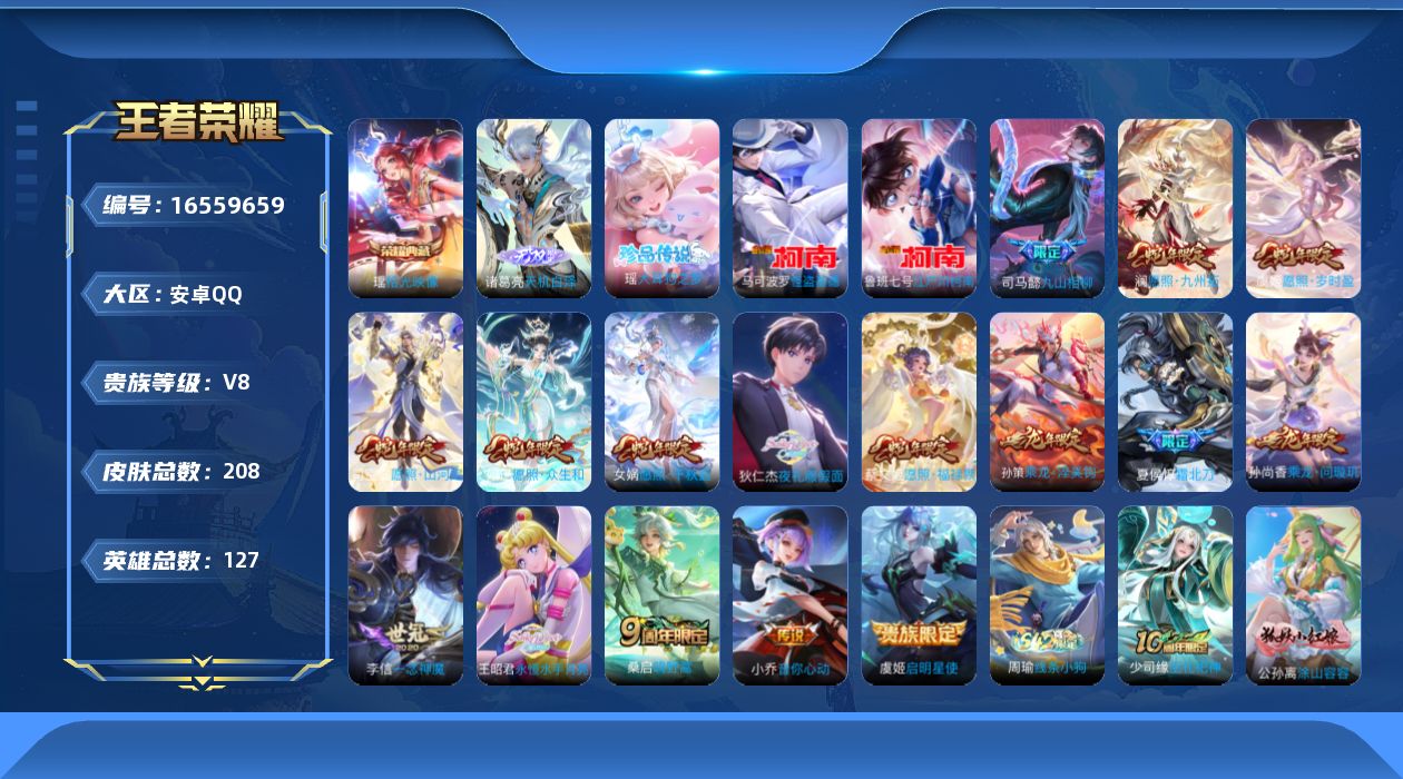 [16559659]0b0gcv可二次"无双1水晶1珍品传说3女号传说16优质限定22 钱包已注销、信用分正常、无设备脸 水晶皮肤:拾光映像 无双皮肤:天机白泽 珍品传说皮肤:江户川柯南怪盗基德大耳狗之梦 新传说限定:愿照·山河定九山相柳愿照·九州拓愿照·众生和愿照·千秋盛愿照·岁时盈愿照·福禄聚 传说限定:乘龙·淬吴钩永恒水手月亮乘龙·问璇玑夜礼服假面神树通天启明星使 天幕:财神纳福 传说皮肤:一念神魔音你心动-小乔鸣野蒿 新史诗限定:赞萌露比守夜人雪豹·霜爪涂山容容幻珠鲛人织梦人 史诗限定:陌上桑奇迹圣诞山海·碧波行 新史诗皮肤:百相守梦-黄忠夜落电台奇遇星旅 优质史诗皮肤:晚萤诗语江南 周年皮肤:江河有灵遇见飞天梁祝神树通天 珍宝阁:万物之道 史诗皮肤:星夜王子末日机甲-吕布乘风破浪幽灵船长功夫厨神水晶猎龙者心灵战警未来纪元-赵云节奏热浪鬼剑武藏紫霞仙子暗隐猎兽者冰冠公主曙光守护者纤云弄巧缤纷独角兽魅力维加斯女仆咖啡摇滚巨星冰雪圆舞曲圣诞恋歌心灵骇客偶像歌手黄金分割率拒霜思水果甜心鹰眼统帅无限星赏官箭羽风息乱世虎臣舞动绿茵