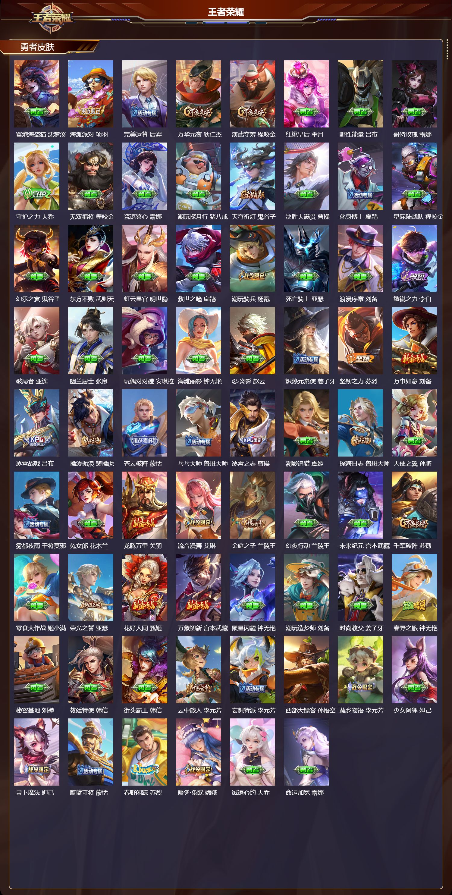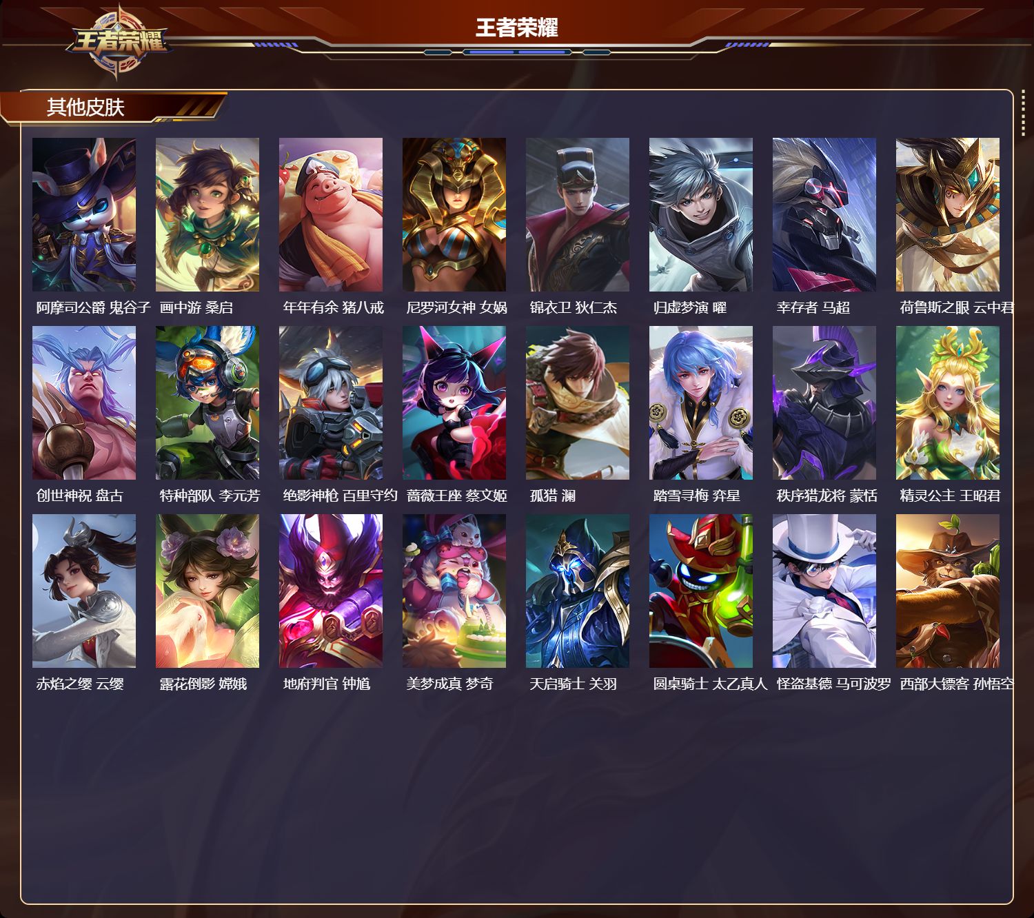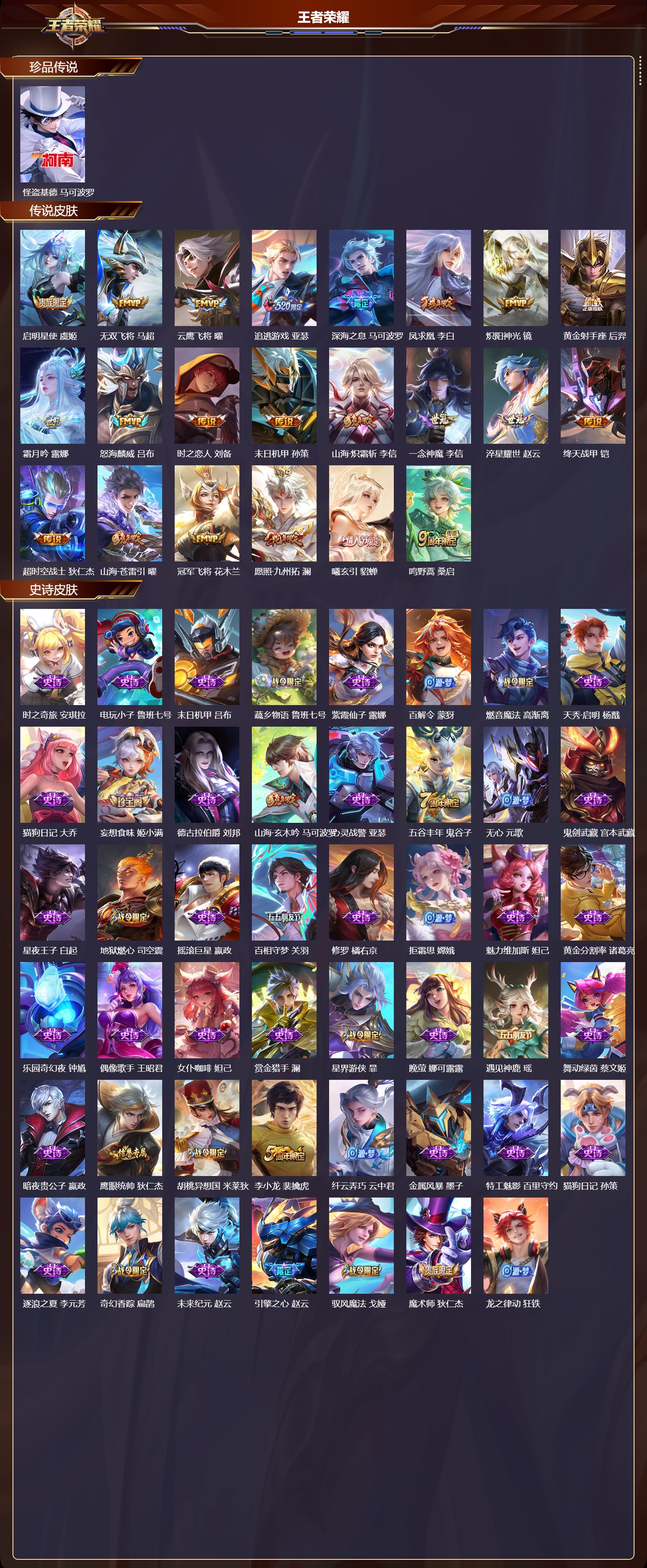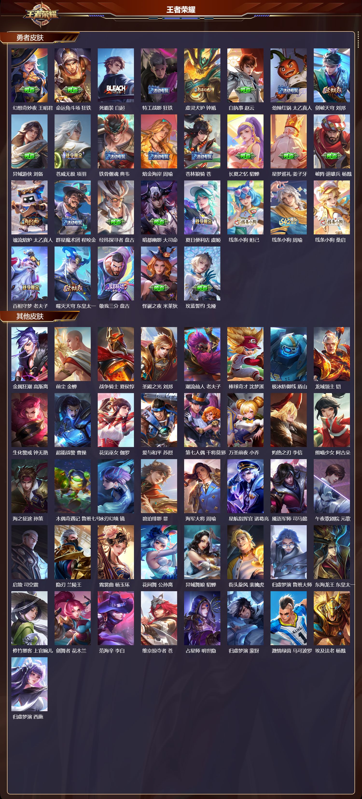 126英雄-302皮肤-安卓qq/永恒钻石/302皮肤/126英雄/0典藏/0珍品无双/0无双/1珍品传说/22传说/85史诗/7稀有英雄【1 珍品传说】怪盗基德 马可波罗【22 传说皮肤】启明星使 虞姬无双飞将 马超云鹰飞将 曜追逃游戏 亚瑟深海之息 马可波罗凤求凰 李白炽阳神光 镜黄金射手座 后羿霜月吟 露娜怒海麟威 吕布时之恋人 刘备末日机甲 孙策山海·炽霜斩 李信一念神魔 李信淬星耀