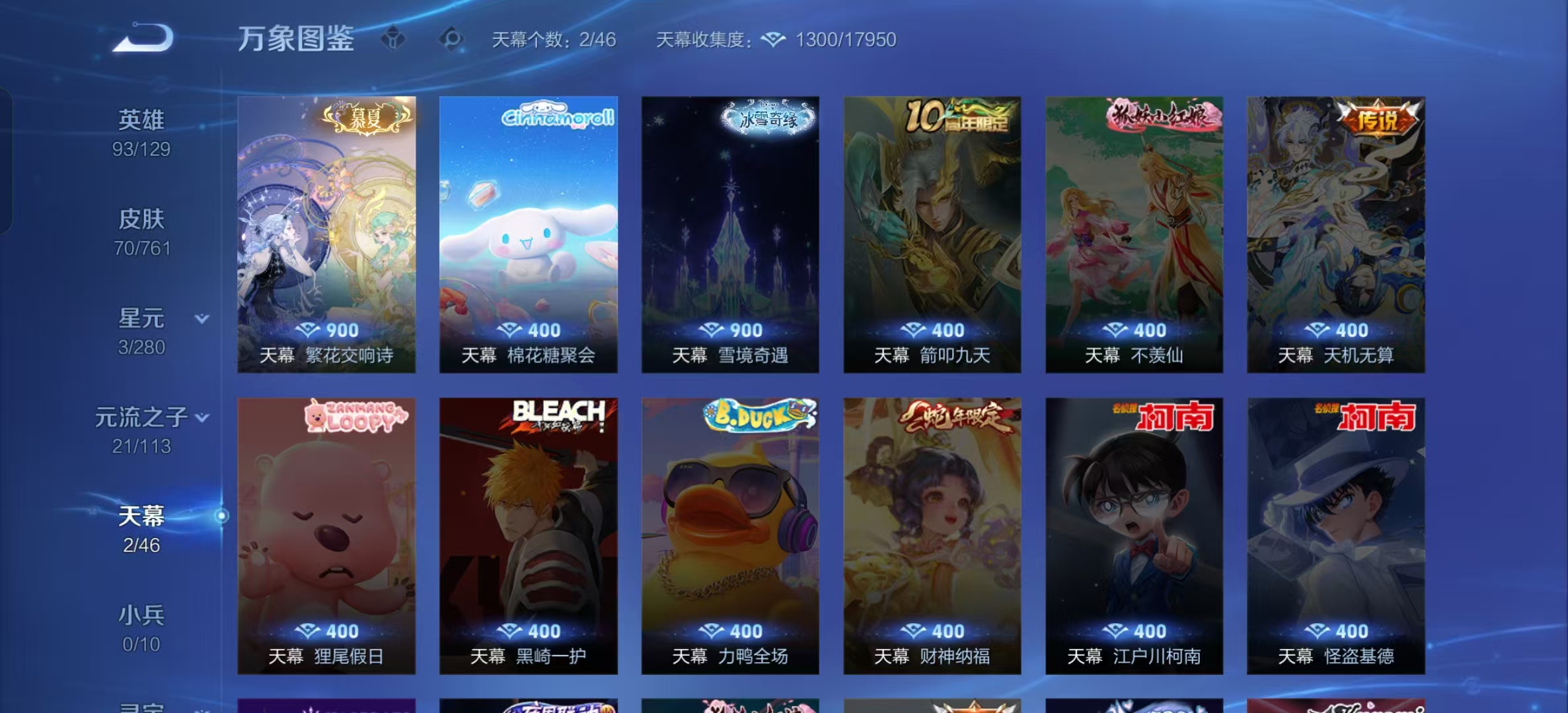 txwz30270 慕夏全套 美神临世 小女号 v7-70皮肤-2珍品传说-大耳狗之梦,酷洛米之心-1珍品无双-馥梦繁花-3传说-神树通天,鸣野蒿,云霓雀翎-21史诗-巫礼祀神,万灵启世,涂山容容,织梦人,青蛇,鸭鸭历险记,冰雪圆舞曲,银翎春语,龙之律动,魔术师,皇家上将,诗语江南,白蛇,女仆咖啡,特工魅影,猫狗日记,水果甜心,心灵战警,缤纷独角兽,繁星吟游,魅力维加斯