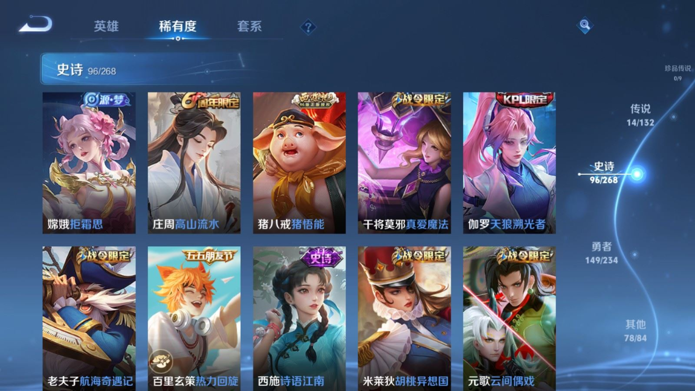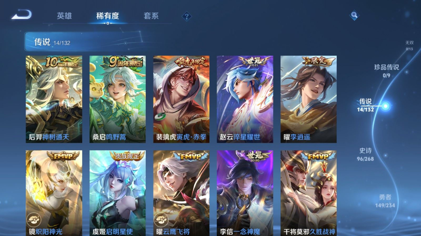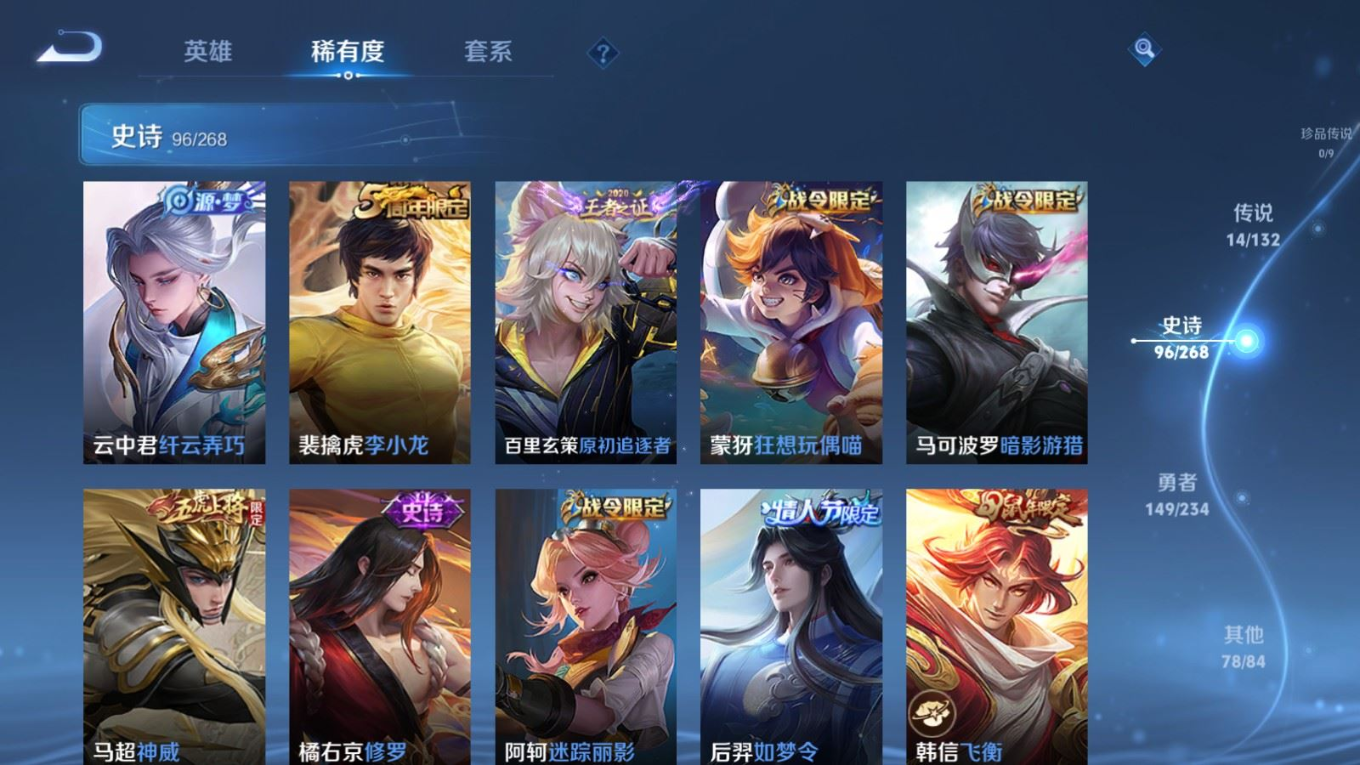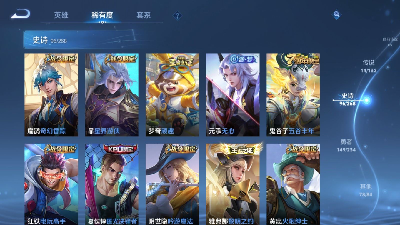 126英雄-338皮肤-124英雄-338皮肤v8-1典藏14传说 打野52段/对抗路47段 万战金标/蒙恬 金标曜/赵云 万战关羽 2星传说 幽冥火 星际治安官【全皮英雄】 猪八戒全皮 【典藏】 弑呛猎影 【传说】 神树通天 鸣野蒿 启明星使 寅虎赤拳 李 天魔缭乱 淬星耀世 地狱火 炽阳神光 云鹰飞将 久胜战神