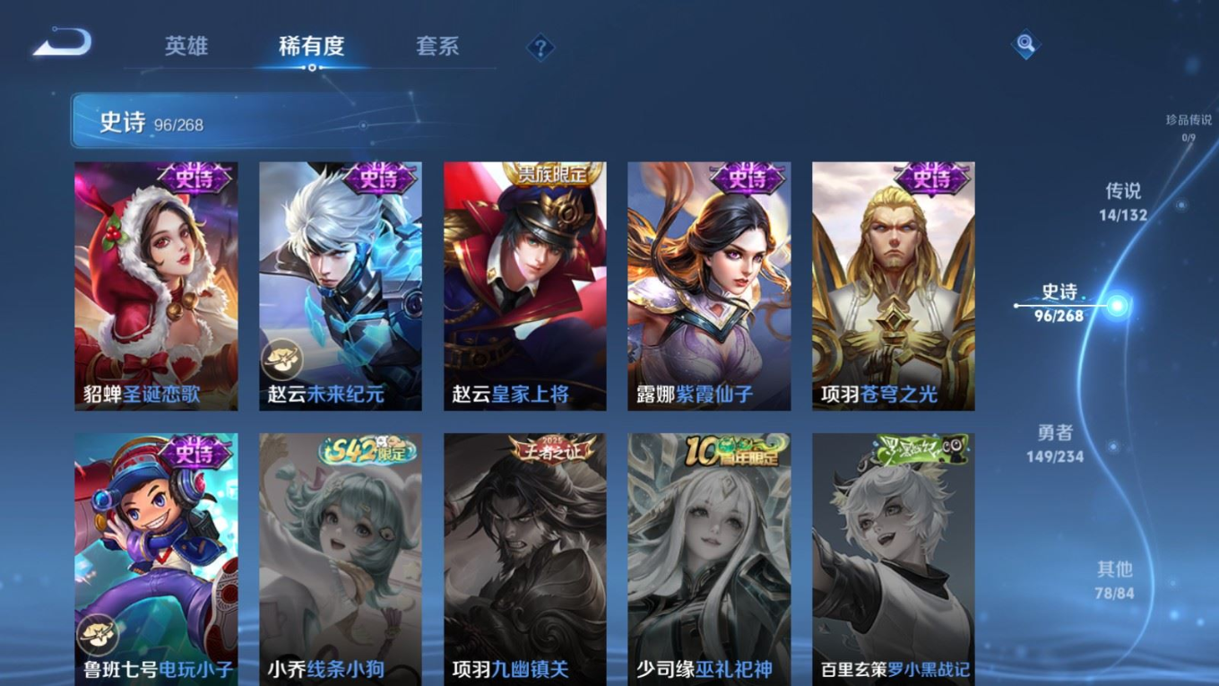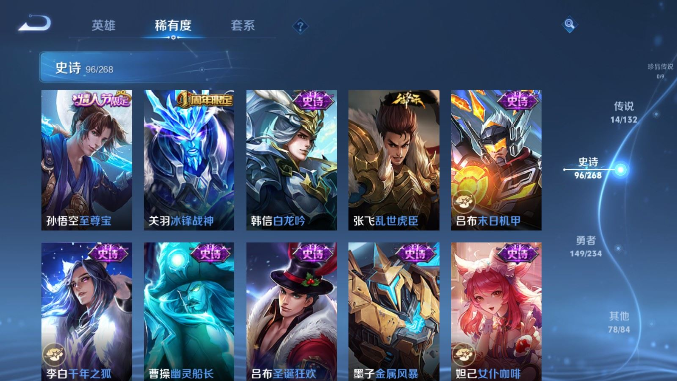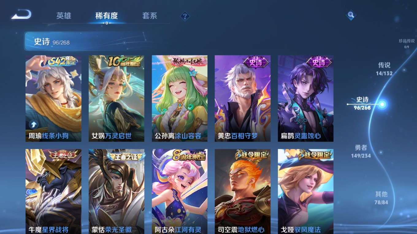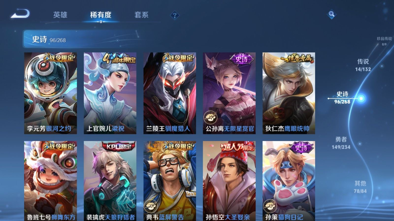 126英雄-338皮肤-124英雄-338皮肤v8-1典藏14传说 打野52段/对抗路47段 万战金标/蒙恬 金标曜/赵云 万战关羽 2星传说 幽冥火 星际治安官【全皮英雄】 猪八戒全皮 【典藏】 弑呛猎影 【传说】 神树通天 鸣野蒿 启明星使 寅虎赤拳 李 天魔缭乱 淬星耀世 地狱火 炽阳神光 云鹰飞将 久胜战神