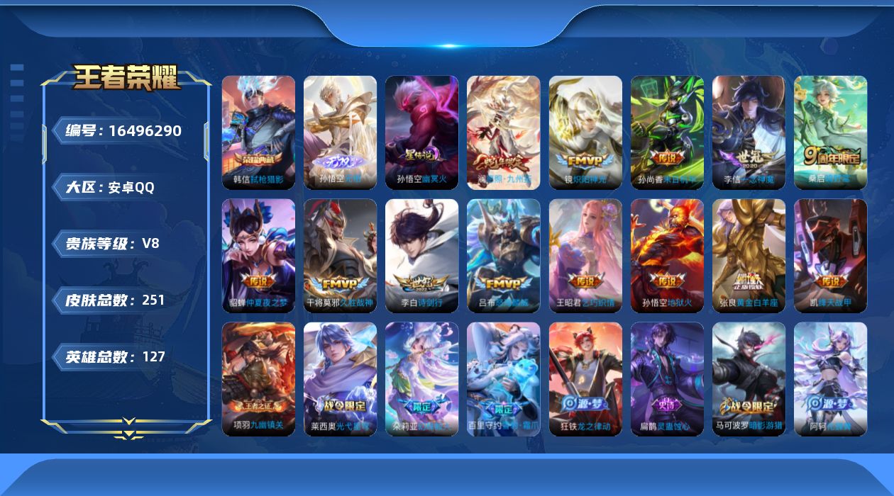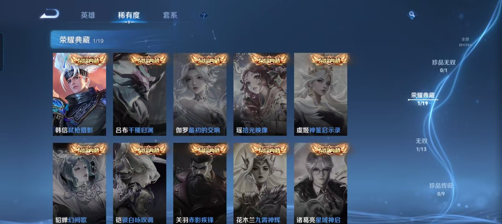 127英雄-251皮肤-【v8 1典藏 1无双 1星传说 14传说 251皮肤 127英雄】韩信典藏弑呛猎影/猴子无双无相/星传说幽冥火/末日机甲孙尚香/怒海麟威/诗剑行/仲夏夜之梦/黄金白羊座/地狱火/启明星使/久胜战神/绛天战甲/一念神魔/愿照九州拓/炽阳神光/鸣野蒿/幻珠鲛人/雪豹霜爪/龙之律动/器灵浮梦炉/遇见