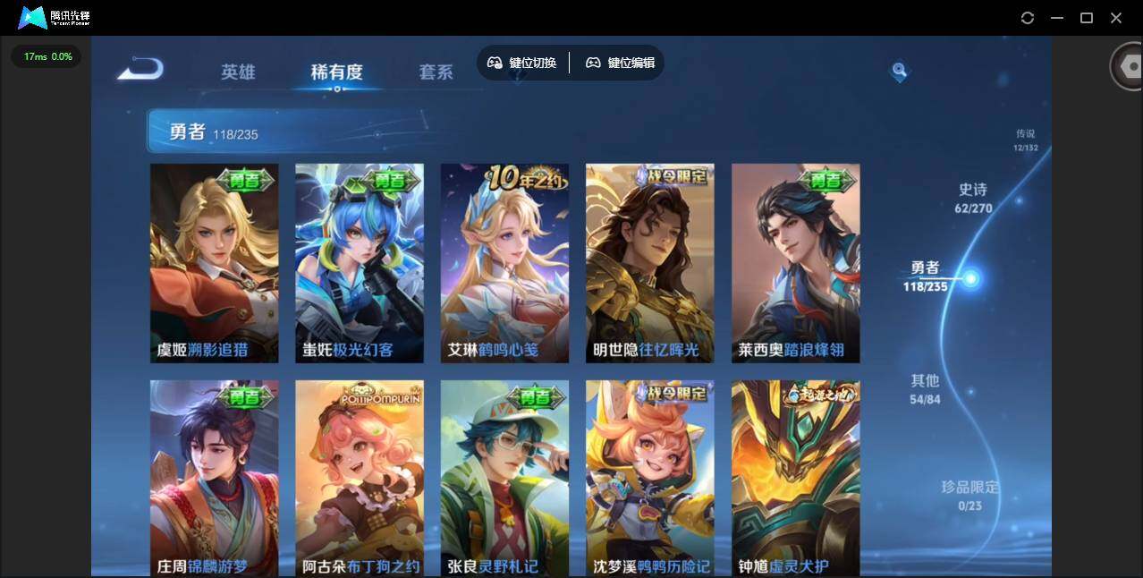 2439661-贵族等级: v7 英雄数: 128 皮肤数: 247 荣耀水晶: 弑呛猎影 星传说: 未来机甲星际治安官 传说皮: 一念神魔末日机甲-孙尚香零号·赤焰时之恋人-刘备超时空战士-狄仁杰无双飞将澜逐花归海典韦战鼓燎原祥瑞亨通 限定皮: 李小龙乒乒小将逐梦之影青龙志大圣娶亲高山流水齐天大圣鸣野蒿逐霄战戟愿照·九州拓