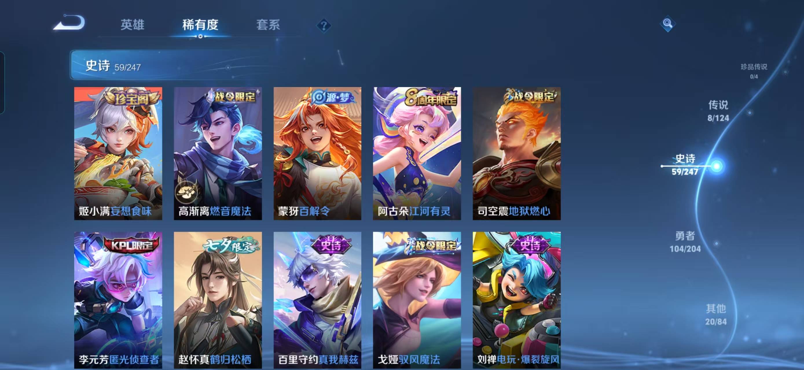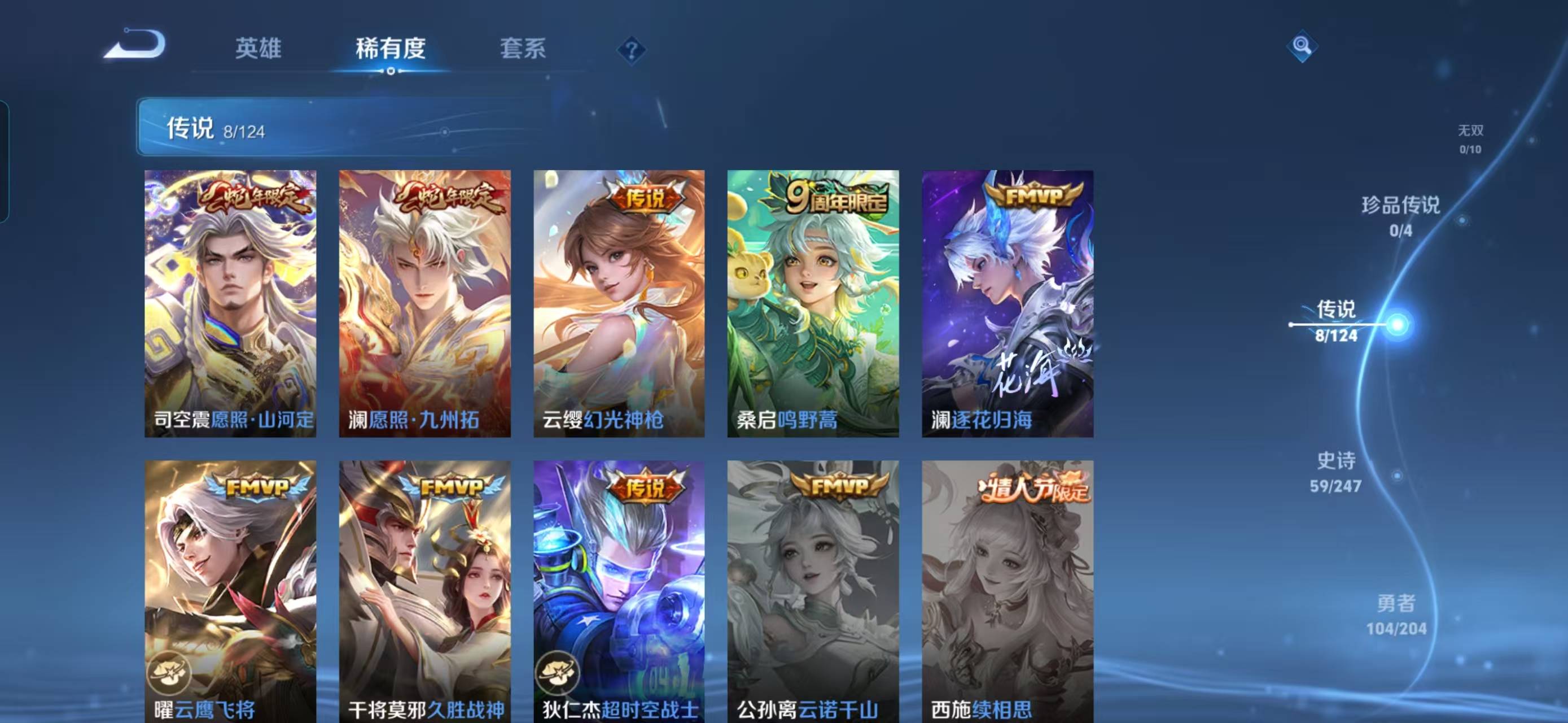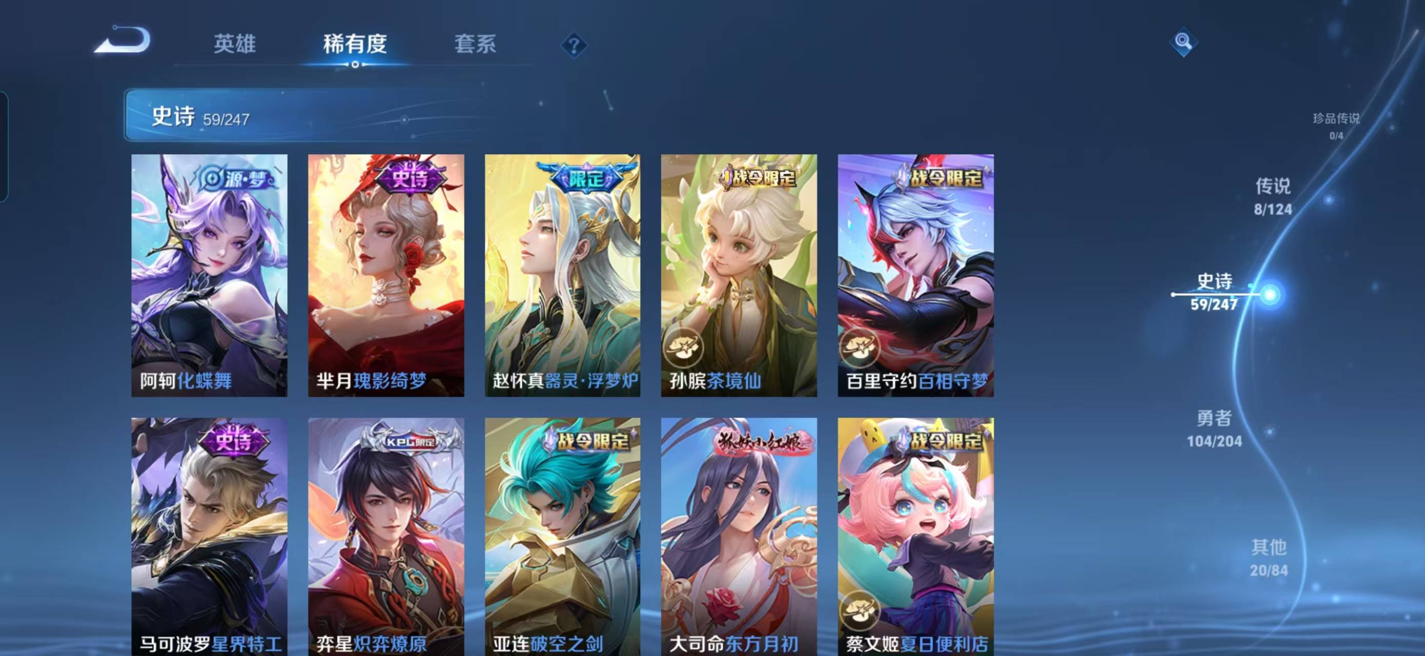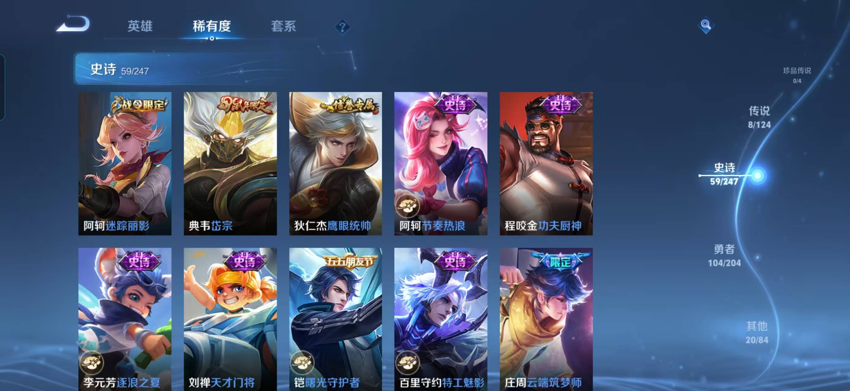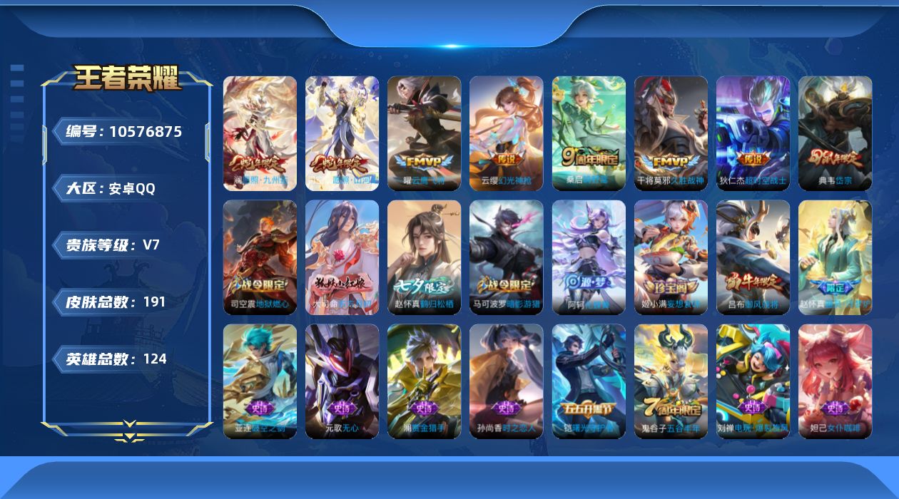 124英雄-191皮肤-【v7 8传说 191皮肤 124英雄】云鹰飞将久胜战神超时空战士狄仁杰逐花归海幻光神呛愿照山河定愿照九州拓器灵浮梦炉守约真我赫兹鹤归松栖岱宗云端筑梦师化蝶舞瑰影绮梦星界特工匿光侦查者御风骁将热力回旋 时之恋人超时空战士 东方月初夏日便利店炽弈燎原燃音