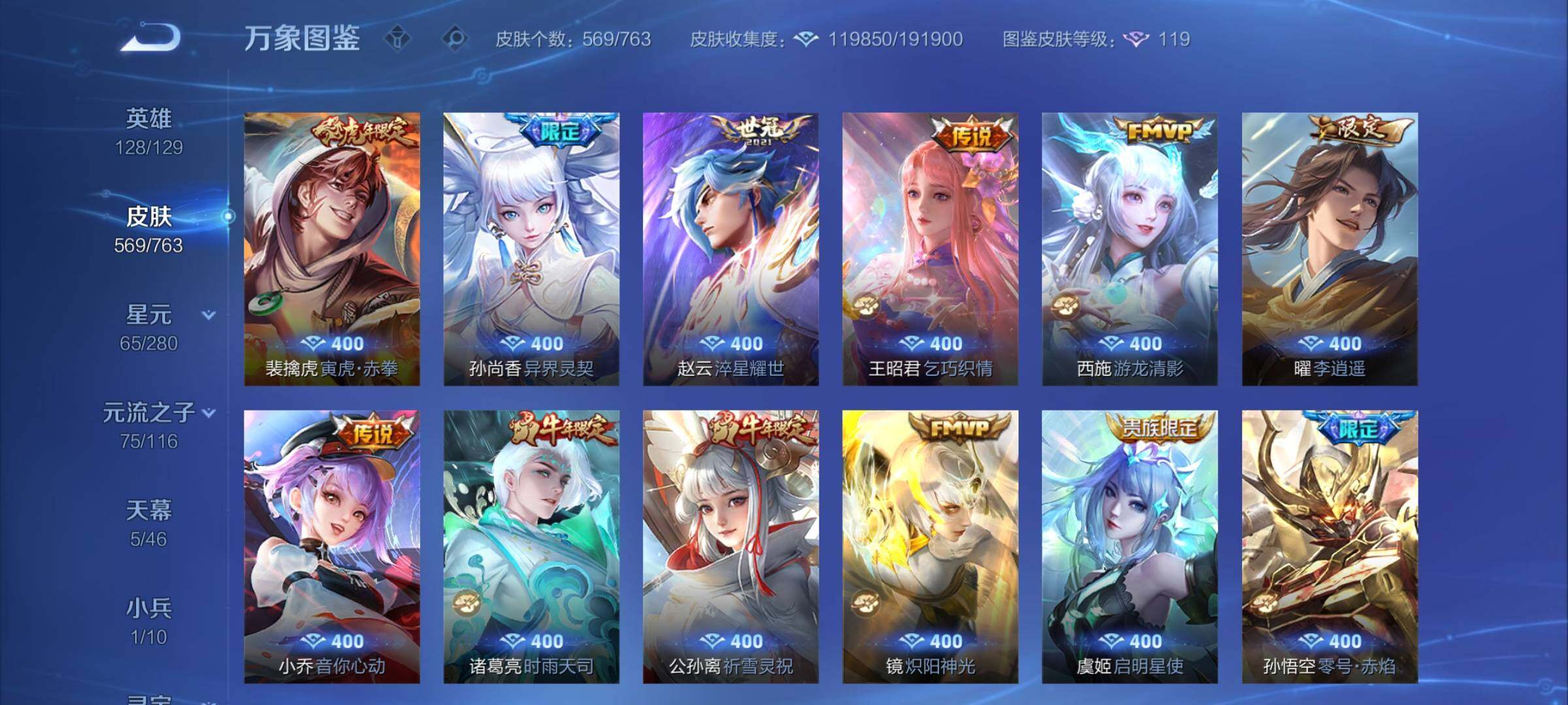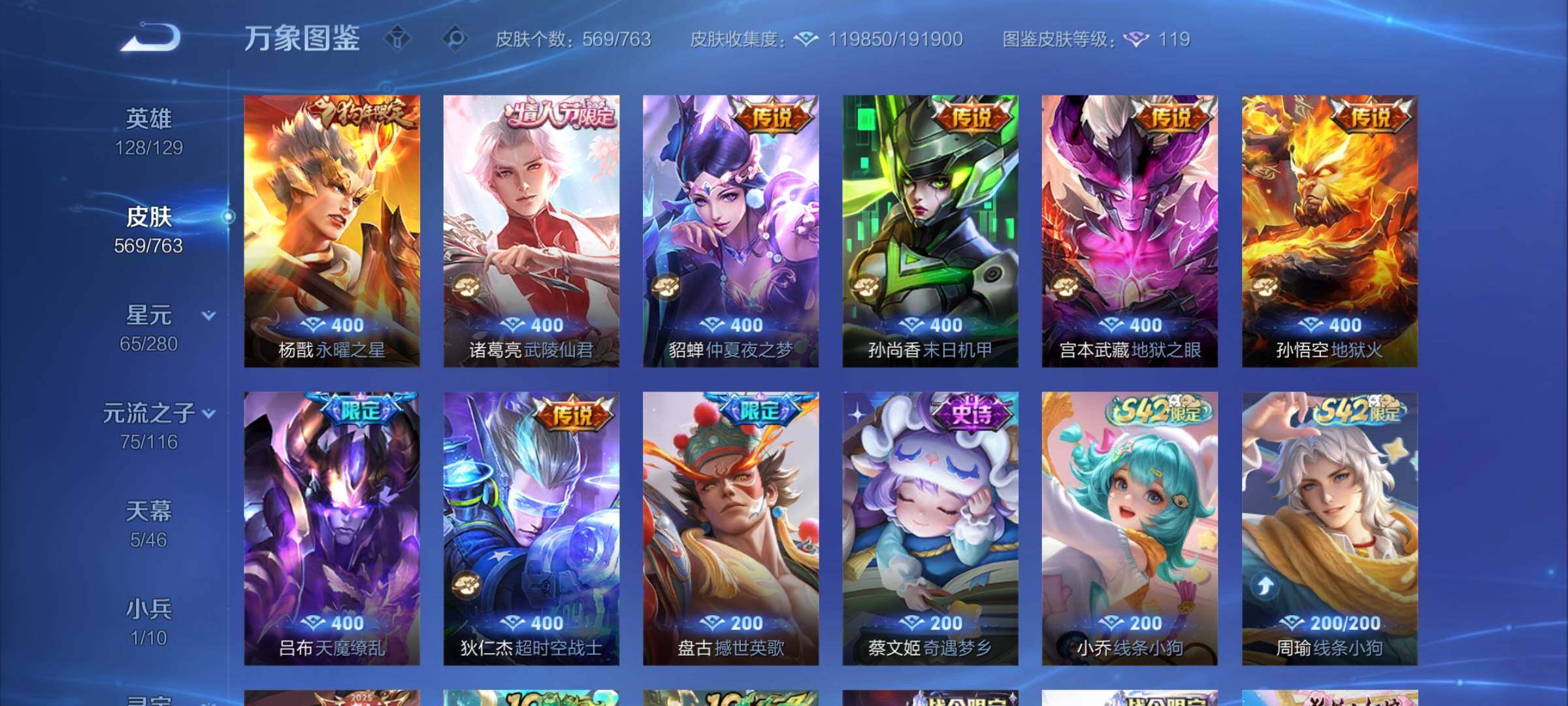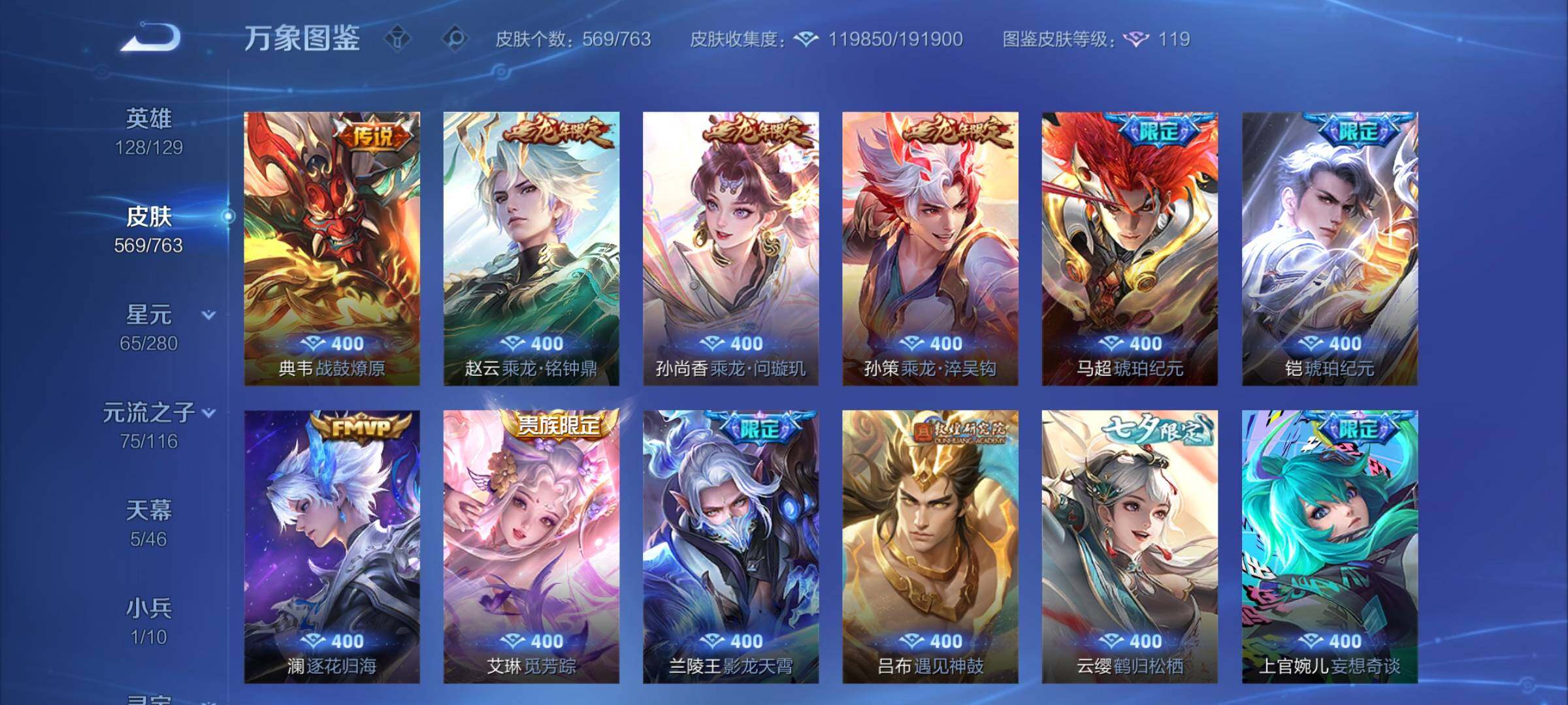 【精品推荐v11·7w7流光积分·准百传·3典藏·10无双·5珍品·小兵青铜锵锵兵·全皮曜·全皮杨戬·全皮孙策·猪年全限定·虎年全限定·兔年全限定·龙年全限定·蛇年全限定·岁雨灵司·力鸭全场天幕·财神纳福天幕·箭叩九天天幕·龙腾四海天幕·鸿兔大展天幕·可二次】w14808-安卓q-128英雄-569皮肤-5王者印记-300铭文-贵族积分40w【贵族11】【3典藏·10无双·5珍品·4星传说