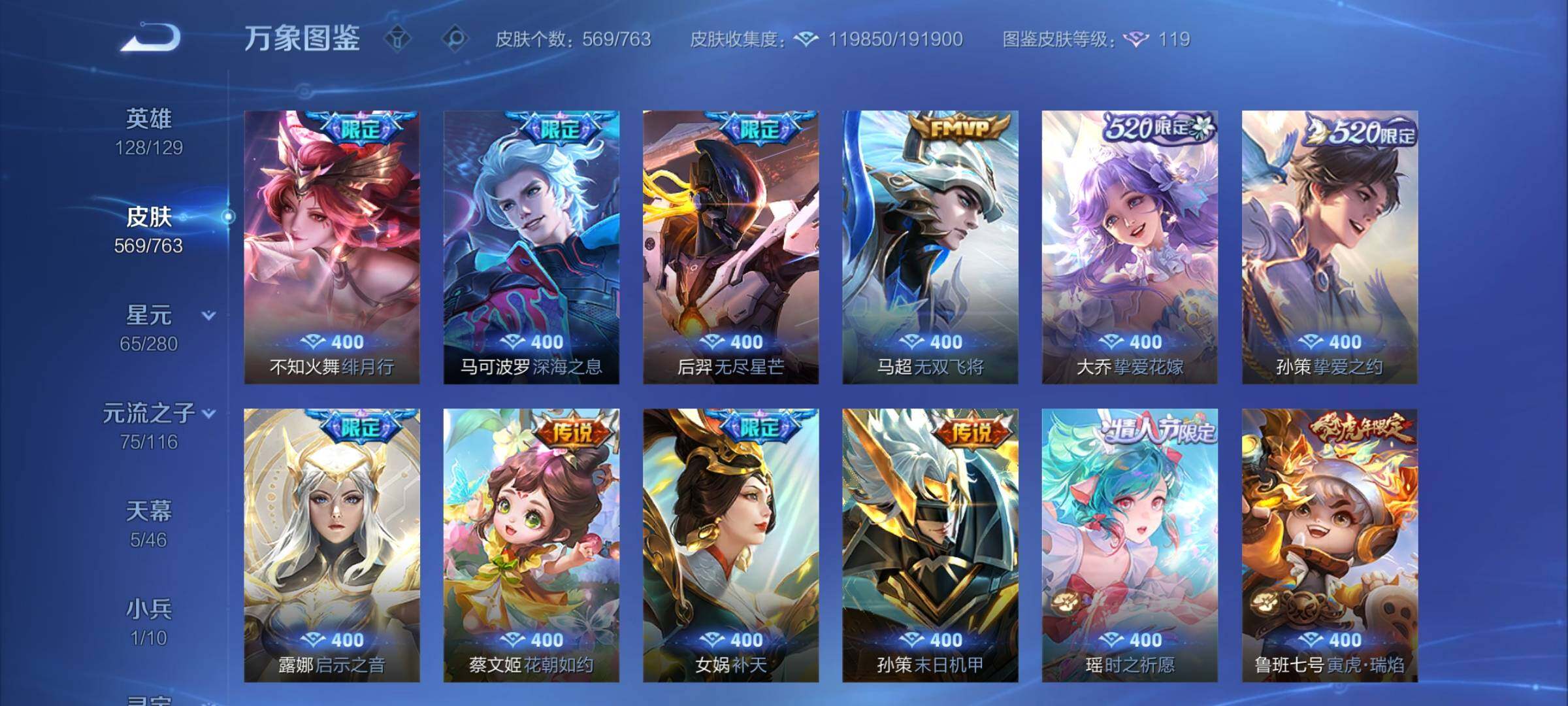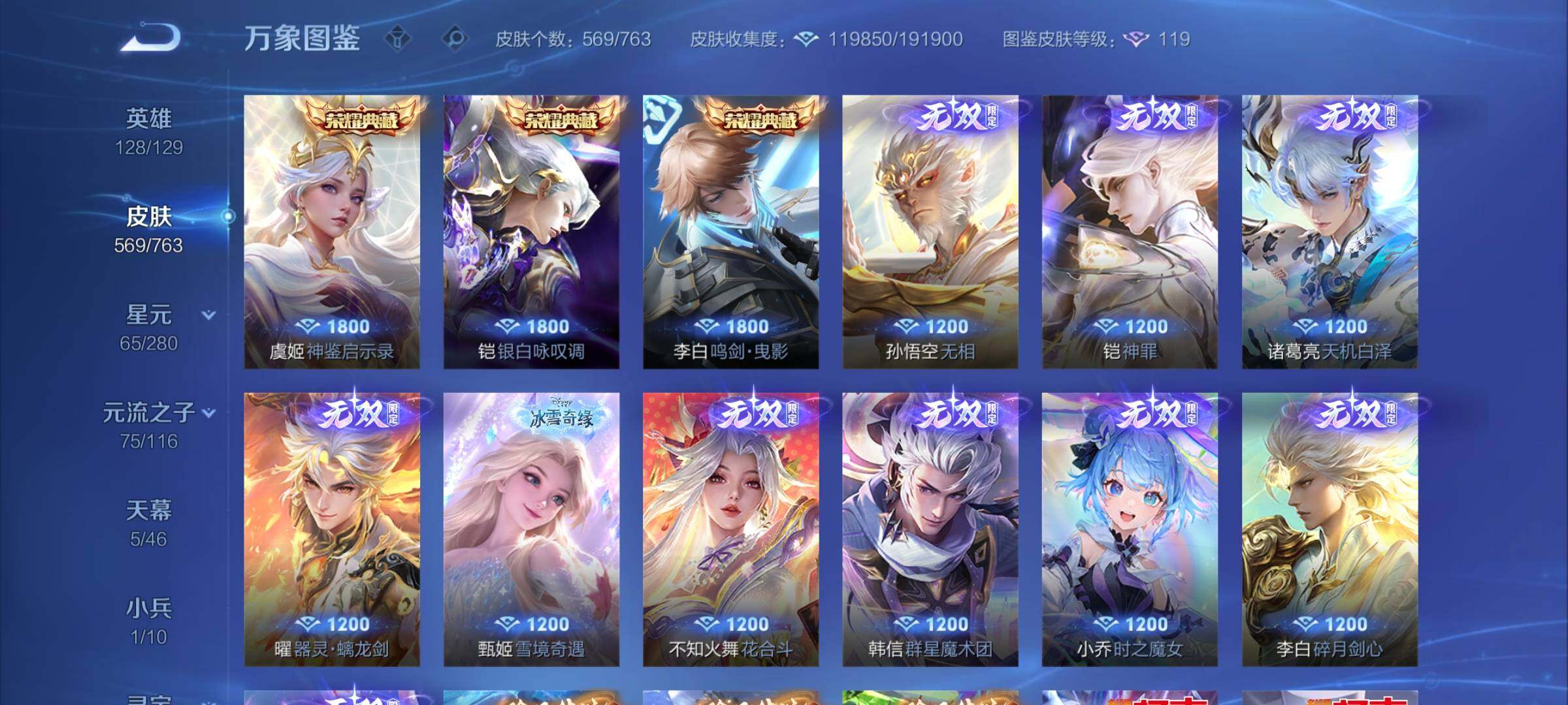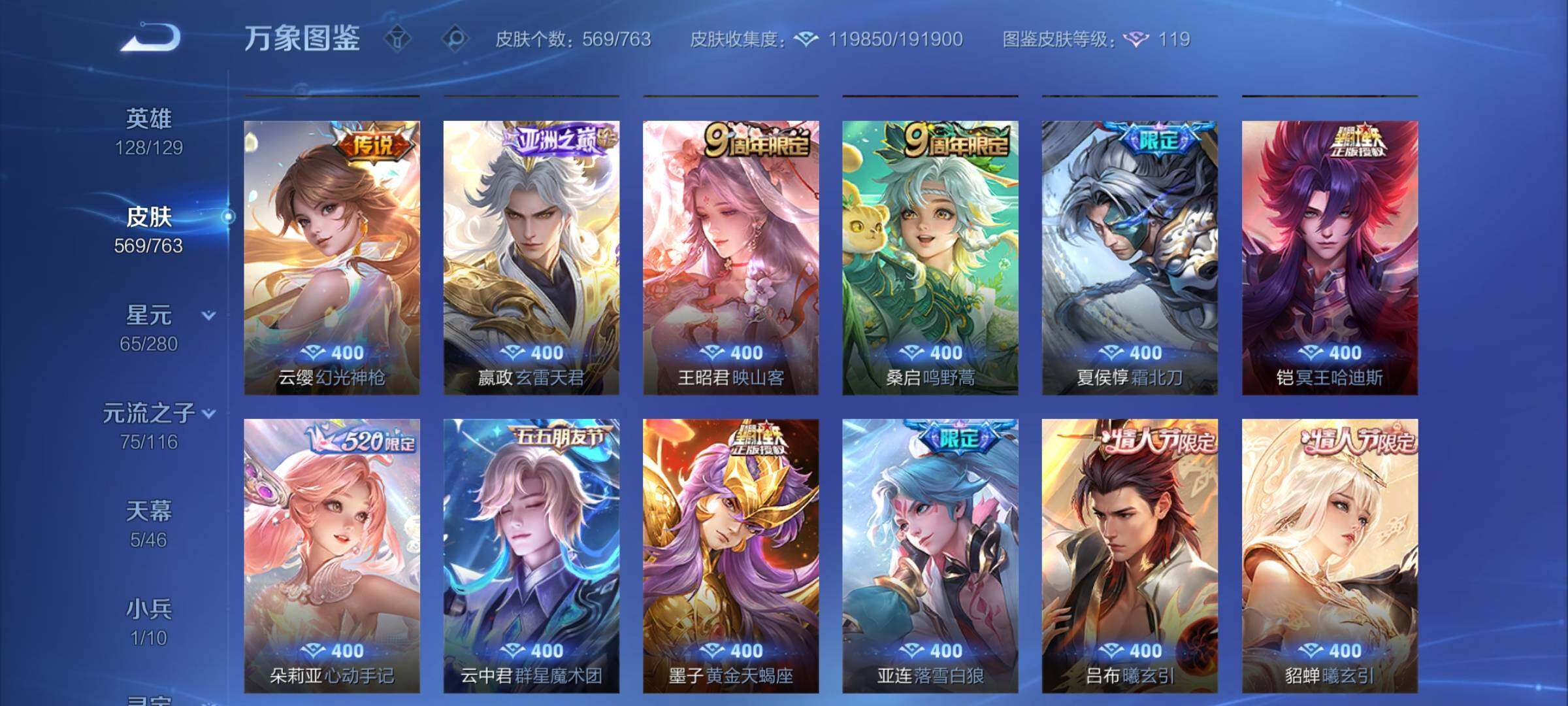 【精品推荐v11·7w7流光积分·准百传·3典藏·10无双·5珍品·小兵青铜锵锵兵·全皮曜·全皮杨戬·全皮孙策·猪年全限定·虎年全限定·兔年全限定·龙年全限定·蛇年全限定·岁雨灵司·力鸭全场天幕·财神纳福天幕·箭叩九天天幕·龙腾四海天幕·鸿兔大展天幕·可二次】w14808-安卓q-128英雄-569皮肤-5王者印记-300铭文-贵族积分40w【贵族11】【3典藏·10无双·5珍品·4星传说