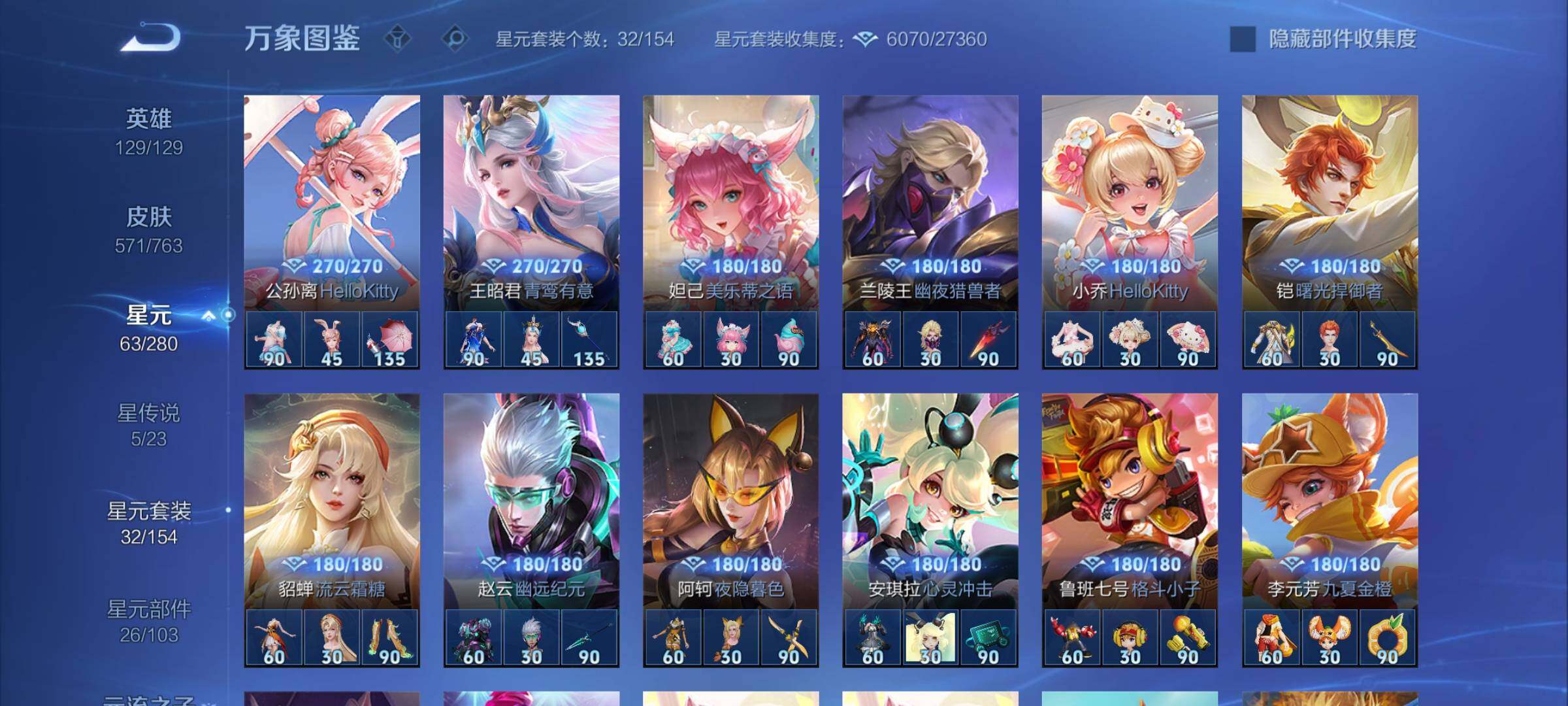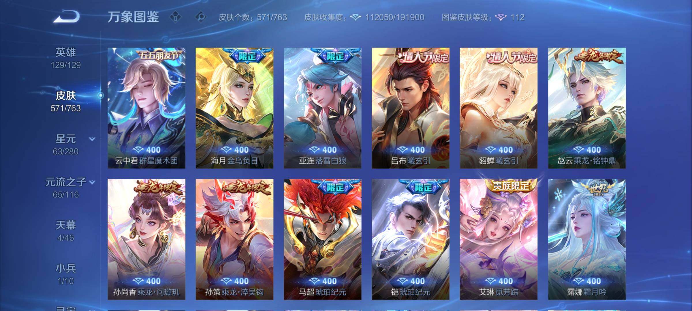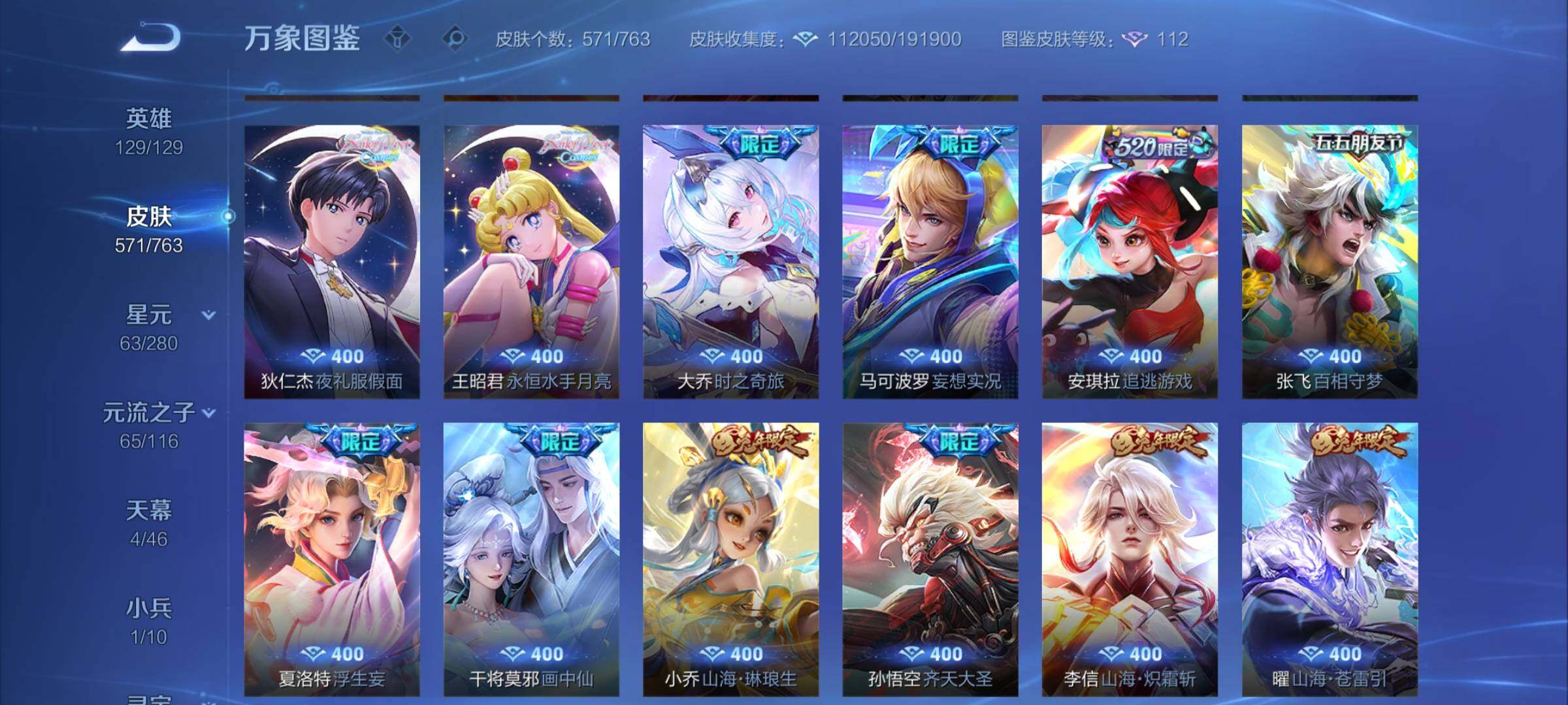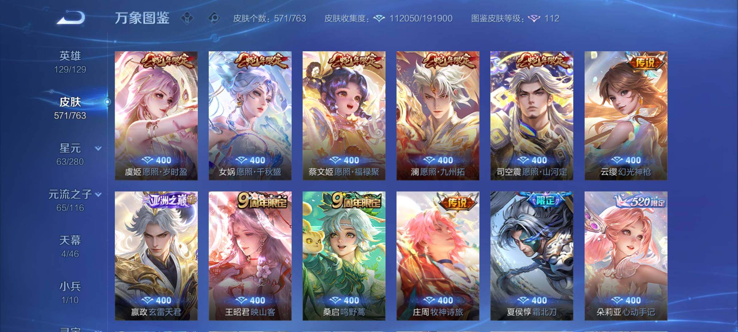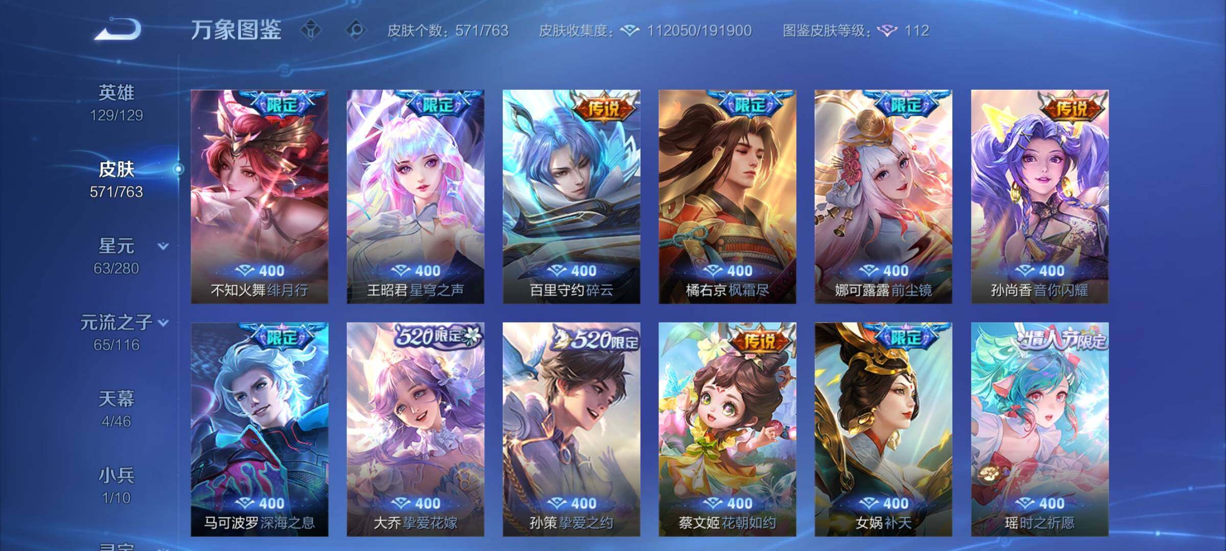 【极品漂亮女号v10·背包一荣耀水晶·3典藏·10无双·6珍品·5星传说·76传说·2精品天幕·1小兵·全皮瑶带紫瑶·全皮小乔·全皮火舞·全皮大乔·全皮嫦娥·全皮西施·离恨烟·雪境奇遇·青丘九尾·碎月剑心·韩信群星魔术团·器灵螭龙剑·太华红枫·财神纳福天幕·路在脚下天幕·小兵雪境奇遇·满兔年限定·满龙年限定·满蛇年限定·可二次】w14830-安卓q-129英雄-571皮肤-26王者印记-2