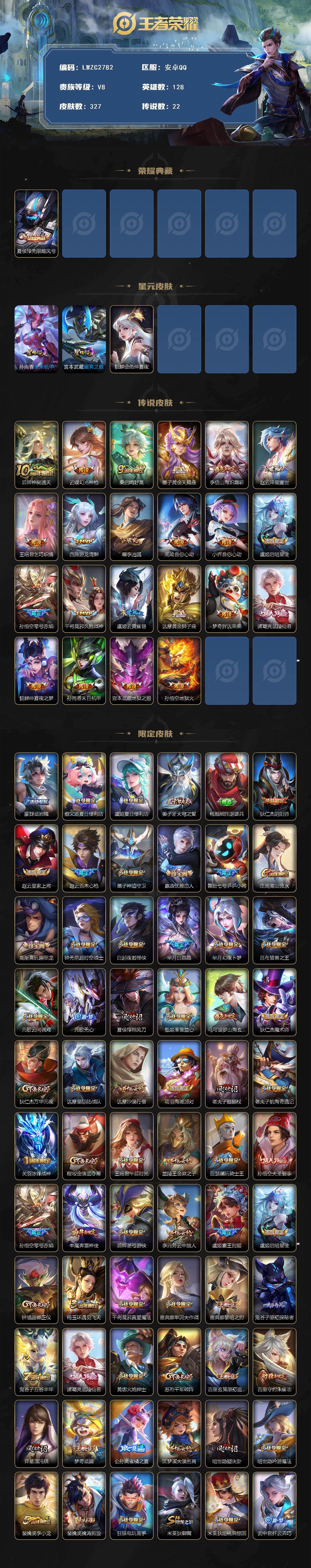 [16575390]可二次【特价出售/店主推荐/1市标/4954星币】:安卓q-v8-最强王者段位-128英雄-327皮肤-1典藏皮肤-3星元-22传说-109史诗 【英雄全皮】:孙权全皮,空空儿全皮,影全皮 【荣耀典藏】:夏侯惇无限飓风号 【传说皮肤】:后羿神树通天,云缨幻光神呛,桑启鸣野蒿,墨子黄金天蝎座,李信山海炽霜斩,赵云淬星耀世,王昭君乞巧织情,西施游龙清影,曜李 ,周瑜音你心动,小乔音你心动,虞姬启明星使,孙悟空零号赤焰,干将莫邪久胜战神,虞姬云霓雀翎,达摩黄金狮子座,梦奇胖达荣荣,诸葛亮武陵仙君,貂蝉仲夏夜之梦,孙尚香末日机甲,宫本武藏地狱之眼,孙悟空地狱火 【限定皮肤】:蒙犽顽岩魄,蔡文姬夏日便利店,虞姬夏日便利店,姜子牙天穹之誓,杨戬破阵退雄兵,狄仁杰阴阳师,赵云皇家上将,赵云百木心呛,墨子神迹守卫,嬴政优雅恋人,鲁班七号乒乒小将,庄周高山流水,高渐离玩趣恶龙,钟无艳超时空战士,白起夜都怪侠,芈月白晶晶,芈月幻夜卜梦,吕布猎兽之王,元歌云间偶戏,元歌无心,夏侯惇朔风刀,甄姬落雪兰心,马可波罗山海玄木吟,狄仁杰魔术师,狄仁杰万华元夜,达摩星际陆战队,达摩沙漠行僧,项羽海滩派对,老夫子醍醐杖,老夫子航海奇遇记,关羽冰锋战神,程咬金演武夺筹,王昭君午后时光,兰陵王金庭之子,亚瑟潮玩骑士王,孙悟空大圣娶亲,孙悟空零号赤焰,牛魔奔雷神使,后羿圣弓游侠,李元芳云中旅人,虞姬霸王别姬,虞姬启明星使,钟馗驱傩正仪,杨玉环遇见飞天,干将莫邪真爱魔法,雅典娜单词大作战,雅典娜黎明之约,鬼谷子原初探秘者,鬼谷子五谷丰年,诸葛亮武陵仙君,黄忠火炮绅士,苏烈千军破阵,百里玄策原初追逐者,百里守约朱雀志,弈星混沌棋,梦奇顽趣,公孙离蜜橘之夏,沈梦溪大漠名商,明世隐疑决卦,明世隐吟游魔法,裴擒虎李小龙,裴擒虎擒涛扼浪,狂铁电玩高手,米莱狄御霄,米莱狄胡桃异想国,云中君纤云弄巧,李信山海炽霜斩,盾山御銮,猪八戒猪悟能,上官婉儿神器万象笔,嫦娥拒霜思,嫦娥暖冬兔眠,曜李 ,蒙犽狂想玩偶喵,鲁班大师探海日志,桑启海盐诗旅,暃星界游侠,艾琳女武神,艾琳流音漫舞,司空震地狱燃心,阿古朵江河有灵,张良古海寻踪,蒙犽百解令,蒙恬荣光圣徽,鬼谷子天穹祈灯,姬小满妄想食味,沈梦溪龙舞盛年,刘邦剑破天穹,程咬金群星魔术团,镜青焰无极,项羽苍威无极,刘备异域游侠,周瑜熔金海岸 【年限皮肤】:百里守约朱雀志,牛