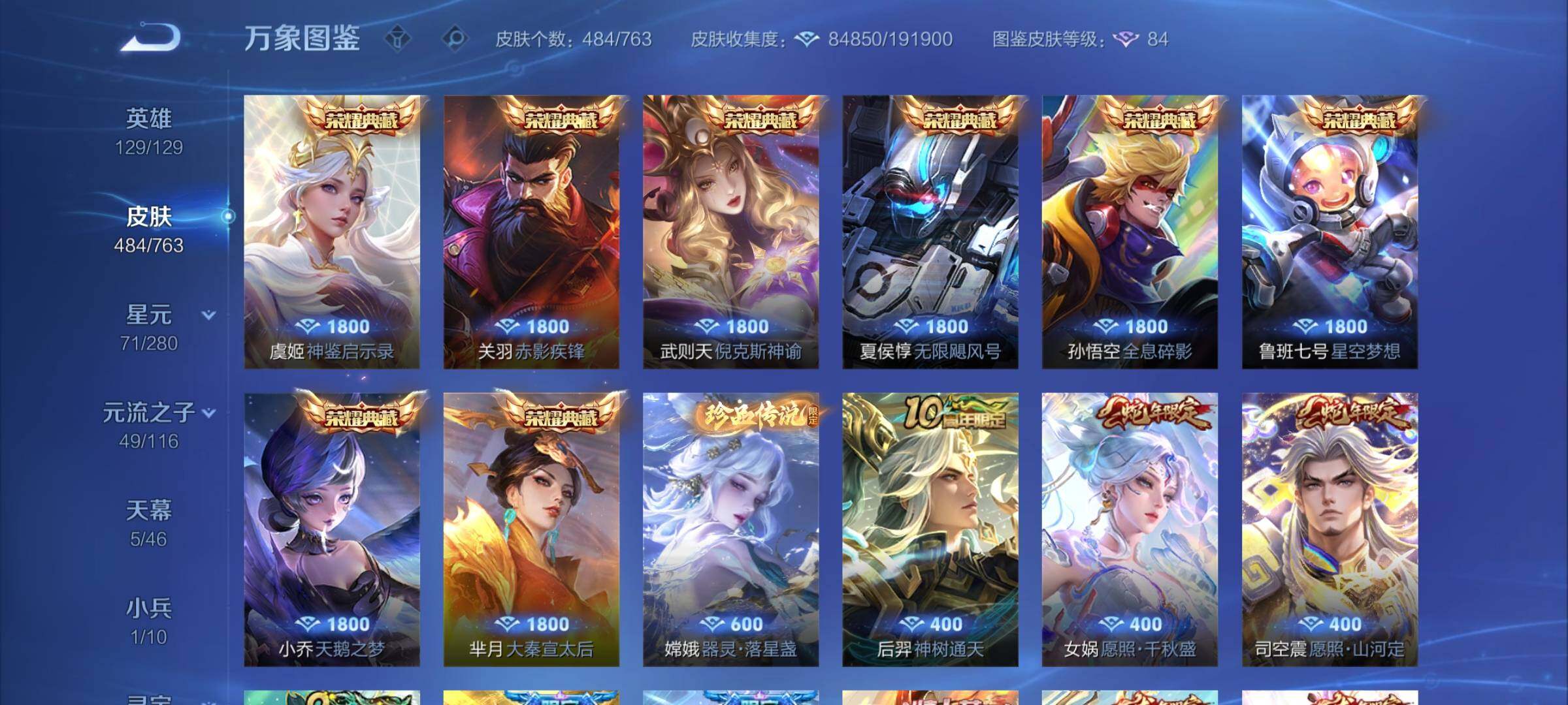 【精氪贵族v10·背包1未使用水晶·小兵线条小狗·龙腾四海天幕·路在脚下天幕·金虎啸春天幕·秋月华灯天幕·梅西·9典藏·1珍品·40传说·4星传说·武则天·全息碎影·倪克斯神谕·无限飓风号·天鹅之梦·星空梦想·大秦宣太后·赤影疾锋·神鉴启示录·器灵落星盏·11个年限皮·满龙年限定·可二次】yxw14763-安卓q-129英雄-484皮肤-27王者印记-300铭文-贵族积分21w【贵族10】【9典藏·1珍品·4星传说·40传说·5天幕·14按键·356个性戳戳】【因赛季更新游戏段付以上号为准!】 【英雄全皮】:阿轲全皮,扁鹊全皮,刘邦全皮,孙权全皮,太乙真人全皮,梦奇全皮,米莱狄全皮,盾山全皮,猪八戒全皮,鲁班大师全皮,司空震全皮,金蝉全皮,戈娅全皮,空空儿全皮,影全皮 【荣耀典藏】:武则天英雄,孙悟空全息碎影,武则天倪克斯神谕,夏侯惇无限飓风号,小乔天鹅之梦,鲁班七号星空梦想,芈月大秦宣太后,关羽赤影疾锋,虞姬神鉴启示录 【珍品传说】:嫦娥器灵落星盏 【星元皮肤】:孙尚香未来机甲,武则天幻海之心,宫本武藏幽冥之眼,貂蝉金色仲夏夜 【天幕】:龙腾四海天幕,路在脚下天幕,金虎啸春天幕,秋月华灯天幕,共赏芳华天幕 【小兵皮肤】:小兵线条小狗 【传说皮肤】:后羿神树通天,司空震愿照山河定,女娲愿照千秋盛,桑启鸣野蒿,海月金乌负日,亚连落雪白狼,吕布曦玄引,孙尚香乘龙问璇玑,孙策乘龙淬吴钩,赵云乘龙铭钟鼎,澜逐花归海,艾琳觅芳踪,兰陵王影龙天霄,东皇太一灼幽烈阳,张飞百相守梦,公孙离记忆之芯,孙悟空齐天大圣,李信山海炽霜斩,李白诗剑行,狄仁杰神器狴犴令,王昭君星穹之声,马可波罗深海之息,马超无双飞将,孙策挚爱之约,孙尚香异界灵契,西施游龙清影,曜李 ,李元芳飞鸢探春,诸葛亮时雨天司,虞姬启明星使,张良黄金白羊座,虞姬云霓雀翎,达摩黄金狮子座,花木兰冠军飞将,梦奇胖达荣荣,貂蝉仲夏夜之梦,孙尚香末日机甲,宫本武藏地狱之眼,孙悟空地狱火,武则天海洋之心 【限定皮肤】:白起狰,狄仁杰阴阳师,虞姬凯尔特女王,赵云皇家上将,墨子神迹守卫,妲己热情桑巴,嬴政优雅恋人,嬴政白昼王子,孙尚香蔷薇恋人,孙尚香异界灵契,鲁班七号狮舞东方,庄周云端筑梦师,庄周高山流水,高渐离死亡摇滚,高渐离玩趣恶龙,阿轲迷踪丽影,钟无艳超时空战士,孙膑妖精王,扁鹊炼金王,扁鹊奇幻香踪,白起夜都怪侠,芈月重明,芈月白晶晶,芈月幻夜卜梦,吕布猎兽之王,周瑜赤莲之焰,元歌云间偶戏,元歌无心,夏侯惇朔风刀,甄姬游园惊梦,甄姬落雪兰心,曹操烛龙,曹操天狼征服者,典韦穷奇,典韦蓝屏警告,马可波罗逐梦之星,马可波罗暗影游猎,马可波罗深海之息,狄仁杰魔术师,狄仁杰万华元夜,狄仁杰神器狴犴令,达摩星际陆战队,达摩沙漠行僧,项羽海滩派对,老夫子圣诞老人,老夫子醍醐杖,老夫子航海奇遇记,关羽冰锋战神,貂蝉逐梦之音,程咬金演武夺筹,刘邦夺宝奇兵,韩信逐梦之影,王昭君午后时光,王昭君星穹之声,兰陵王影龙天霄,兰陵王驯魔猎人,兰陵王金庭之子,花木兰青春决赛季,亚瑟狮心王,亚瑟潮玩骑士王,孙悟空孙行者,孙悟空齐天大圣,牛魔御旌,后羿辉光之辰,后羿圣弓游侠,张飞百相守梦,李元芳银河之约,李元芳云中旅人,虞姬霸王别姬,虞姬启明星使,钟馗神迹守卫,钟馗驱傩正仪,杨玉环遇见飞天,杨戬潮玩骑兵,女娲朔望之晖,哪吒逐梦之翼,干将莫邪冰霜恋舞曲,干将莫邪真爱魔法,雅典娜单词大作战,雅典娜黎明之约,蔡文姬繁星吟游,太乙真人饕餮,太乙真人华丽摇滚,东皇太一逐梦之光,鬼谷子原初探秘者,鬼谷子五谷丰年,诸葛亮时雨天司,黄忠火炮绅士,铠青龙志,苏烈千军破阵,百里玄策原初追逐者,弈星混沌棋,梦奇顽趣,梦奇天降福星,公孙离蜜橘之夏,沈梦溪星空之诺,沈梦溪大漠名商,明世隐疑决卦,明世隐吟游魔法,裴擒虎李小龙,裴擒虎擒涛扼浪,狂铁御狮,狂铁电玩高手,米莱狄御霄,米莱狄胡桃异想国,云中君纤云弄巧,李信山海炽霜斩,盾山御銮,盾山梦圆繁星,孙策挚爱之约,猪八戒西部大镖客,猪八戒猪悟能,上官婉儿梁祝,上官婉儿神器万象笔,嫦娥拒霜思,嫦娥暖冬兔眠,曜李 ,西施玲珑珍味,蒙犽狂想玩偶喵,鲁班大师匿光启智者,鲁班大师探海日志,桑启海盐诗旅,金蝉唐三藏,暃星界游侠,戈娅驭风魔法,艾琳女武神,艾琳流音漫舞,赵怀真鹤归松栖,司空震地狱燃心,阿古朵江河有灵,张良古海寻踪,裴擒虎梅西,蒙犽百解令,艾琳觅芳踪,蒙恬荣光圣徽,高渐离燃音魔法,妲己灵卜魔法,鬼谷子天穹祈灯,伽罗琥珀纪元,大乔乘龙忆丹青,安琪拉乘龙聚宝船,孙尚香乘龙问璇玑,孙策乘龙淬吴钩,赵云乘龙铭钟鼎,吕布曦玄引,亚连落雪白狼,沈梦溪龙舞盛年,鲁班七号蔬乡物语,李元芳蔬乡物语,海月金乌负日,刘邦剑破天穹,程咬金群星魔术团,镜青焰无极,项羽苍威无极,刘备异域游侠 【年限皮肤】:后羿辉光之辰,铠青龙志,诸葛亮时雨天司,李信山海炽霜斩,孙尚香乘龙问璇玑,孙策乘龙淬吴钩,赵云乘龙铭钟鼎,大乔乘龙忆丹青,安琪拉乘龙聚宝船,司空震愿照山河定,女娲愿照千秋盛 【赛季限定】:亚瑟狮心王,孙膑妖精王,扁鹊炼金王,虞姬凯尔特女王,白起狰,太乙真人饕餮,曹操烛龙,芈月重明,典韦穷奇,狂铁御狮,米莱狄御霄,牛魔御旌,盾山御銮,夏侯惇朔风刀,弈星混沌棋,明世隐疑决卦,老夫子醍醐杖,鬼谷子原初探秘者,狄仁杰万华元夜,程咬金演武夺筹,钟馗驱傩正仪,苏烈千军破阵,达摩沙漠行僧,兰