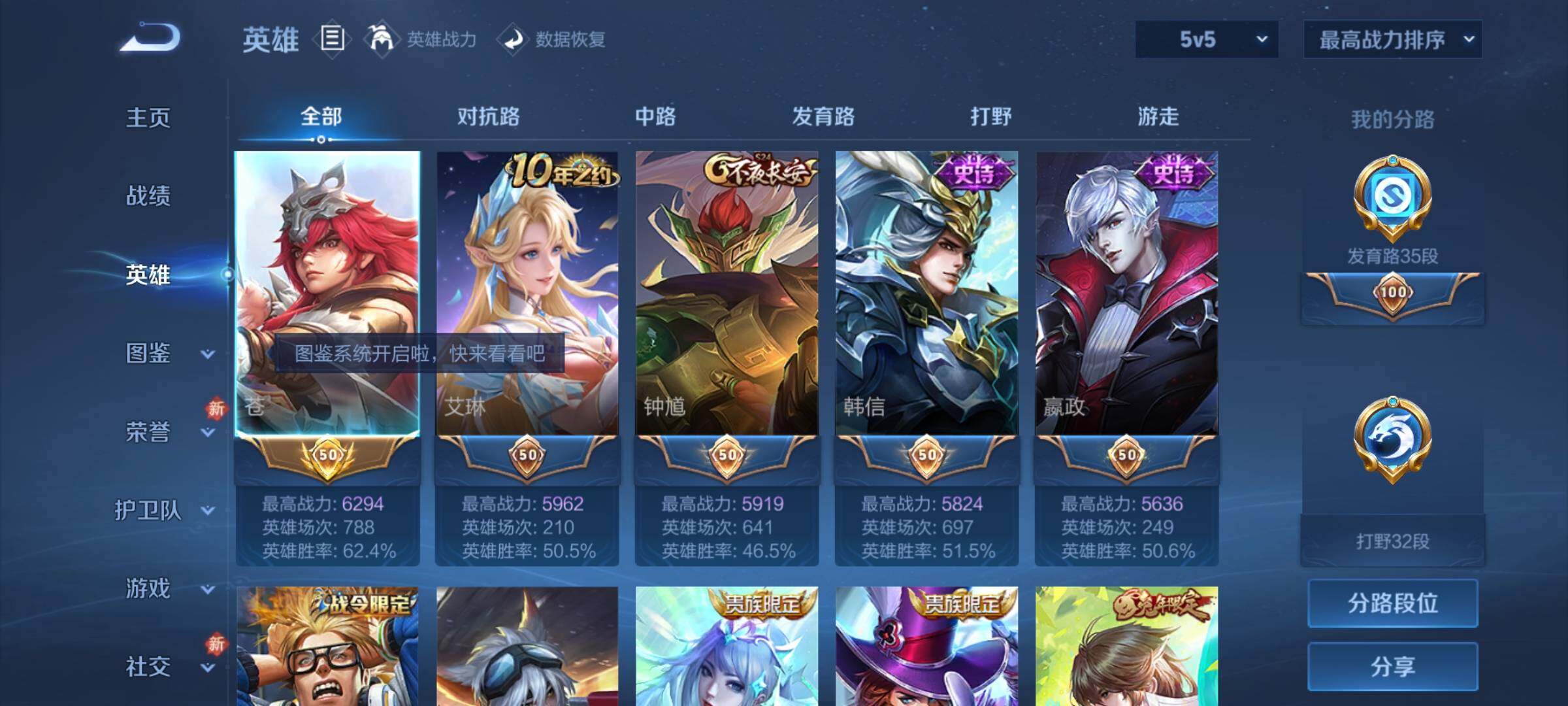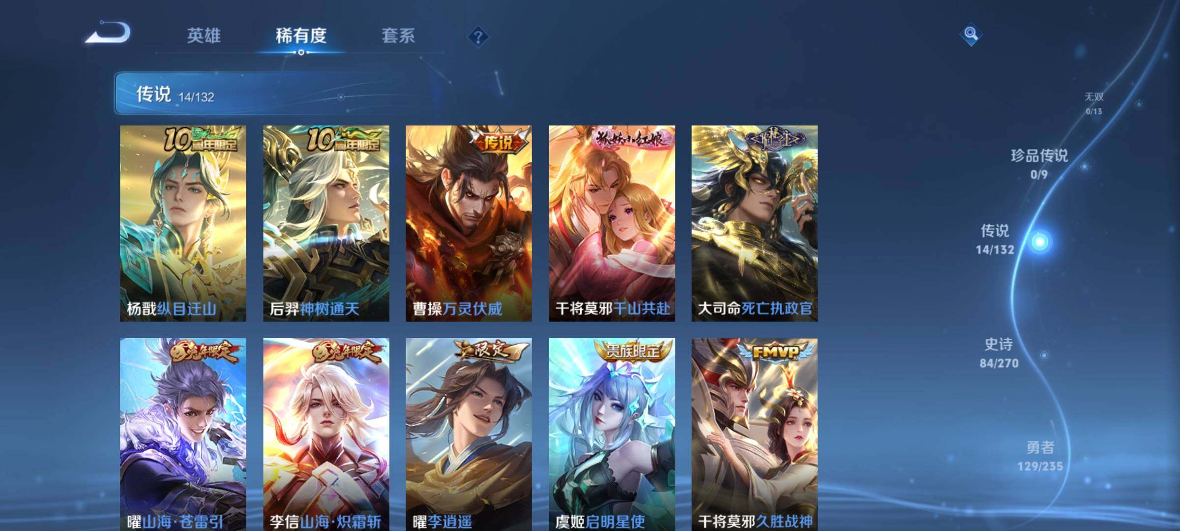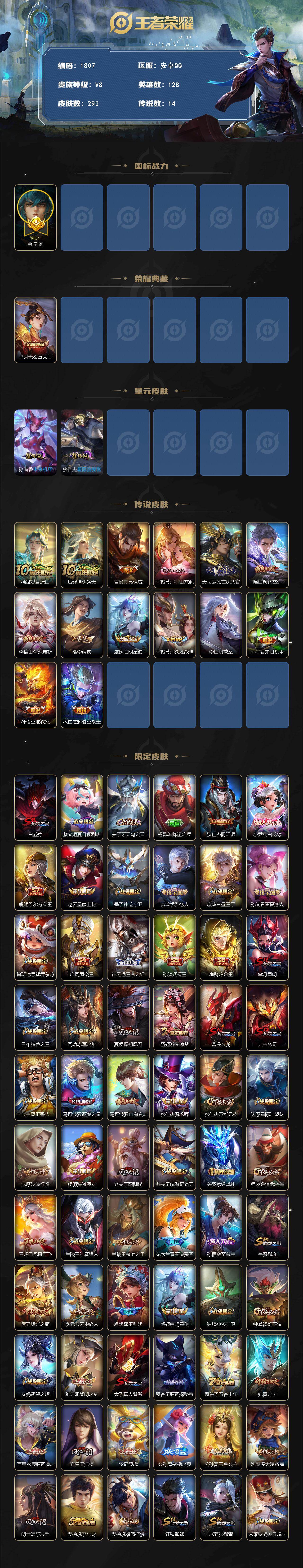 2440264-q-v8-最强王者段位-128英雄-293皮肤-1典藏皮肤-14传说-83史诗,对抗路21段,打野32,中路24,游走21,发育路35 幸运值291 【荣耀典藏】:芈月大秦宣太后 【传说皮肤】:杨戬纵目迁山,后羿神树通天,曹操万灵伏威,干将莫邪千山共赴,大司命死亡执政官,曜山海苍雷引,李信山海炽霜斩,曜李 ,虞姬启明星使,干将莫邪久胜战神,李白凤求凰,孙尚香末日机甲,孙