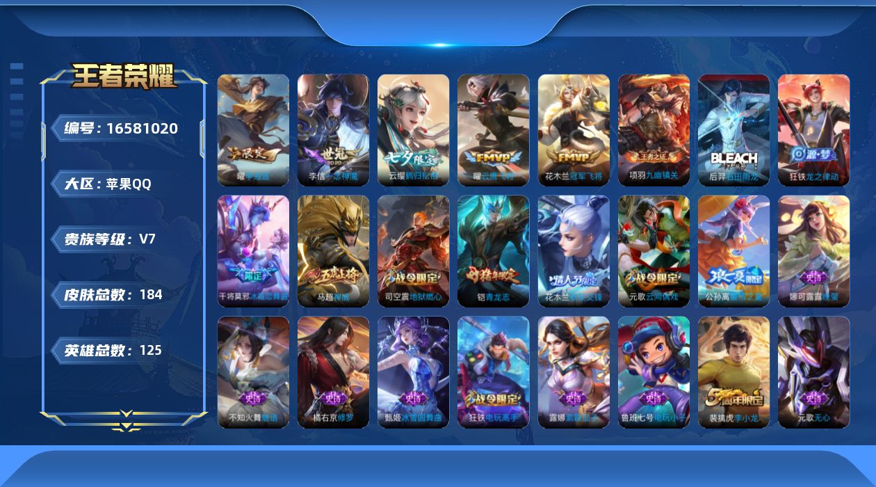 [16581020]v7 5传说 125英雄 184皮肤 可修改实名 女号 【稀有英雄】大司命韩信韩跳跳夏洛特夏师傅艾琳橘右京橘子娜可露露鸟人不知火舞赵云金蝉唐僧戈娅 【传说皮】李一念神魔冠军飞将云鹰飞将小将军鹤归松栖云缨 【珍宝阁皮】胡桃夹子玩趣恶龙 【赛季/战令皮】古海寻踪s33海盐诗旅s30探海日志s32驭风魔法玲珑珍味流音漫舞顽趣-梦奇地狱燃心天穹祈灯s34天穹之誓s36混沌棋s18疑决卦s19醍醐杖s20原初探秘者s21万华元夜s22演武夺筹s23驱傩正仪s24千军破阵s25夺宝奇兵迷踪丽影单词大作战狂想玩偶喵潮玩骑士王云间偶戏神迹守卫-墨子航海奇遇记沙漠行僧s26金庭之子s27电玩高手电玩铁子大漠名商s28云中旅人s29 【史诗皮】龙之律动石田雨龙星界特工九幽镇关紫霞仙子电玩小子小书包特工魅影千年之狐蒙恬荣光圣徽百解令蒙犽冰冠公主魅语晚萤江河有灵猫狗日记-孙策时之恋人-孙尚香乱世虎臣节奏热浪修罗女仆咖啡摇滚巨星水果甜心天才门将暗隐猎兽者鬼剑武藏心灵战警繁星吟游呼啦呼啦缤纷独角兽乘风破浪逐浪之夏月团寄思金属风暴原初追逐者鹰眼统帅王者之锤魅力维加斯黎明之约无心 【限定皮】神威电光马子高山流水五谷丰年青龙志铠年限天狼运算者李小龙默契交锋-花木兰冰霜恋舞曲蜜橘之夏 【普通皮】谧流熔炉神迹守卫苍林狼骑雪境奇遇-西施星梦巡礼春野之旅街头霸王功夫炙烤龙舞盛年铁骨偃魂荣光之誓命运加冕锦麟游梦虚灵犬护灵野札记死霸装逆浪荇歌踏浪烽翎聚星闪耀零食大作战妄想特派鬼谷子天穹祈灯s34破局者威尼斯狂欢完美运算妲己灵卜魔法万事如意五福同心龙腾万里花好人间归虚梦演-曜归虚梦演-西施海滩派对皇家上将魔术师沉稳之力掌控之力化身博士炽热元素使缤纷绘卷纽约教父特工战影圆桌骑士(盾山)乓乓大师万象初新次元突破天使之翼哥特玫瑰鲨炮海盗猫红桃皇后教廷特使星际陆战队(程咬金)阴阳师兔女郎死亡骑士少女阿狸忍·炎