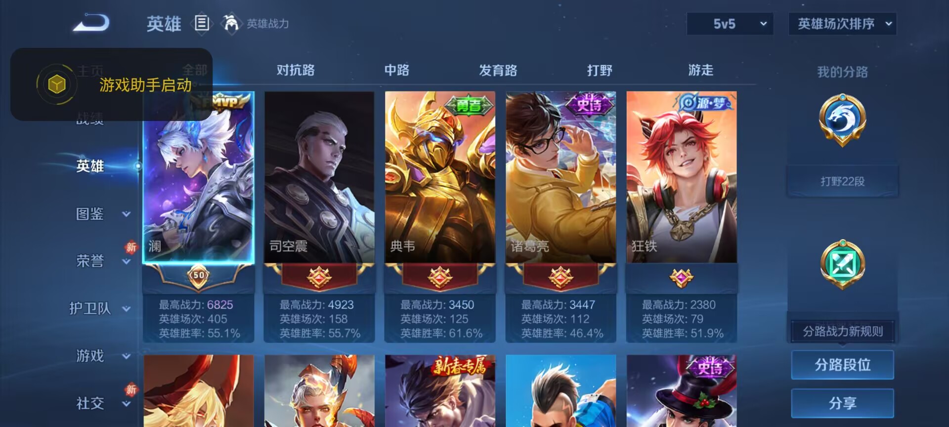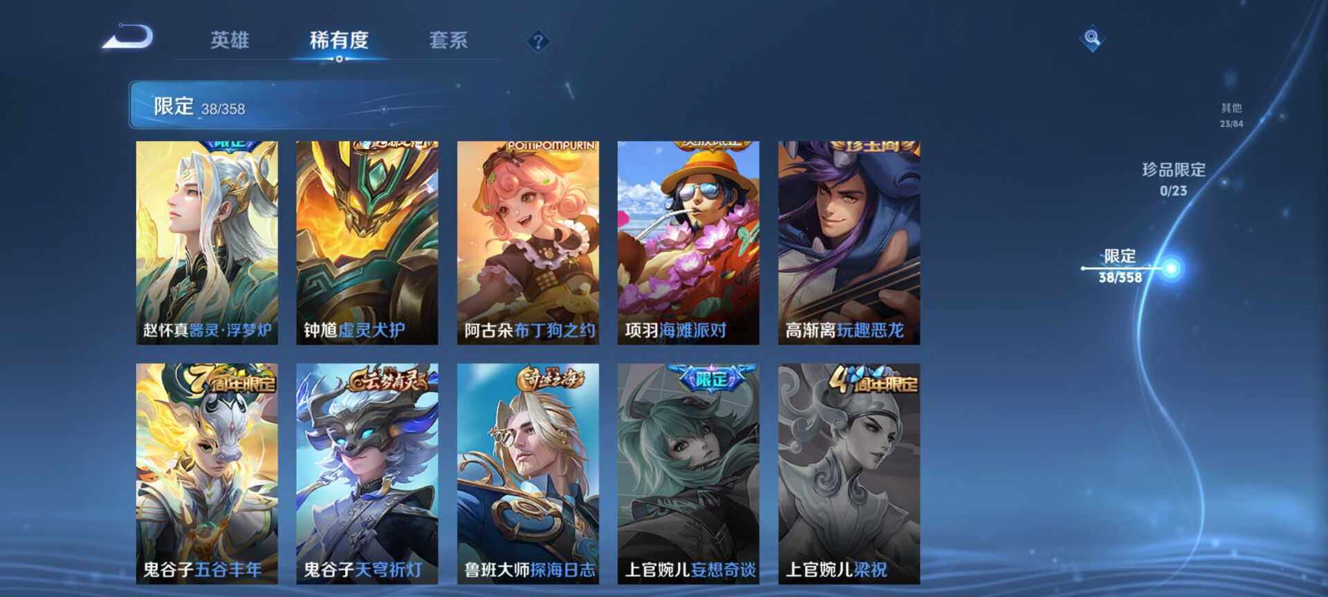 【v5 4传说 打野22段】安卓q-113皮肤-122英雄 【传说皮肤】 鸣野蒿 逐花归海 愿照·山河定 愿照·九州拓 【史诗皮肤】 破空之剑 百相守梦 器灵·浮梦炉 布丁狗之约 谧流熔炉 鸭鸭历险记 龙之律动 线条小狗 威尼斯狂欢 顽岩魄 魅力维加斯 鹰眼统帅 圣诞恋歌 鬼剑武藏 水晶猎龙者 千年之狐 天才门将 紫霞仙子 圣诞狂欢 狂想玩偶喵 水果甜心 乘风破浪 皇家上将 黄