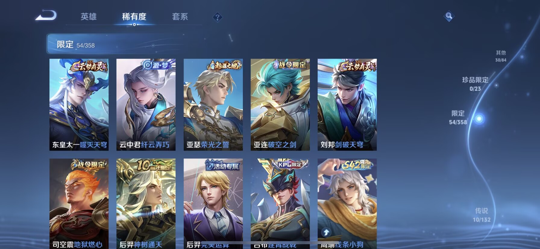 【v7 10传说 打野22段 至尊宝】苹果q-175皮肤-125英雄 【传说皮肤】 神树通天 鸣野蒿 逐花归海 乘龙·铭钟鼎 幻光神呛 愿照·九州拓 无双飞将 炽阳神光 时之恋人 云鹰飞将 【史诗皮肤】 蔬乡物语 蔬乡物语 破空之剑 星界战将 百相守梦 器灵·浮梦炉 布丁狗之约 谧流熔炉 至尊宝 孙行者 地狱燃心 线条小狗 星界特工 熊喵少女 山海·玄木吟 青焰无极 踏浪烽翎