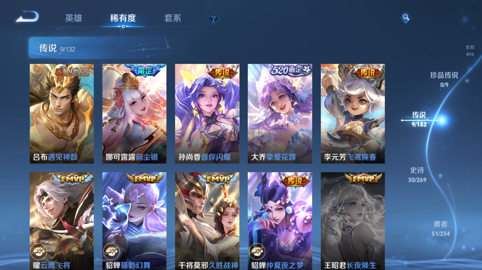 v7【9传说 前尘镜 贵族积分27872】安卓qq/荣耀黄金/126皮肤/122英雄/9传说/30史诗/8稀有英雄【9 传说皮肤】前尘镜 娜可露露飞鸢探春 李元芳云鹰飞将 曜猫影幻舞 貂蝉仲夏夜之梦 貂蝉遇见神鼓 吕布久胜战神 干将莫邪挚爱花嫁 大乔音你闪耀 孙尚香【30 史诗皮肤】紫霞仙子 露娜猫狗日记 大乔五谷丰年 鬼谷子鬼剑武藏