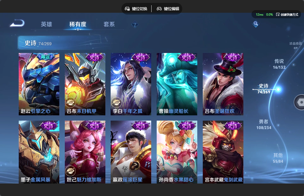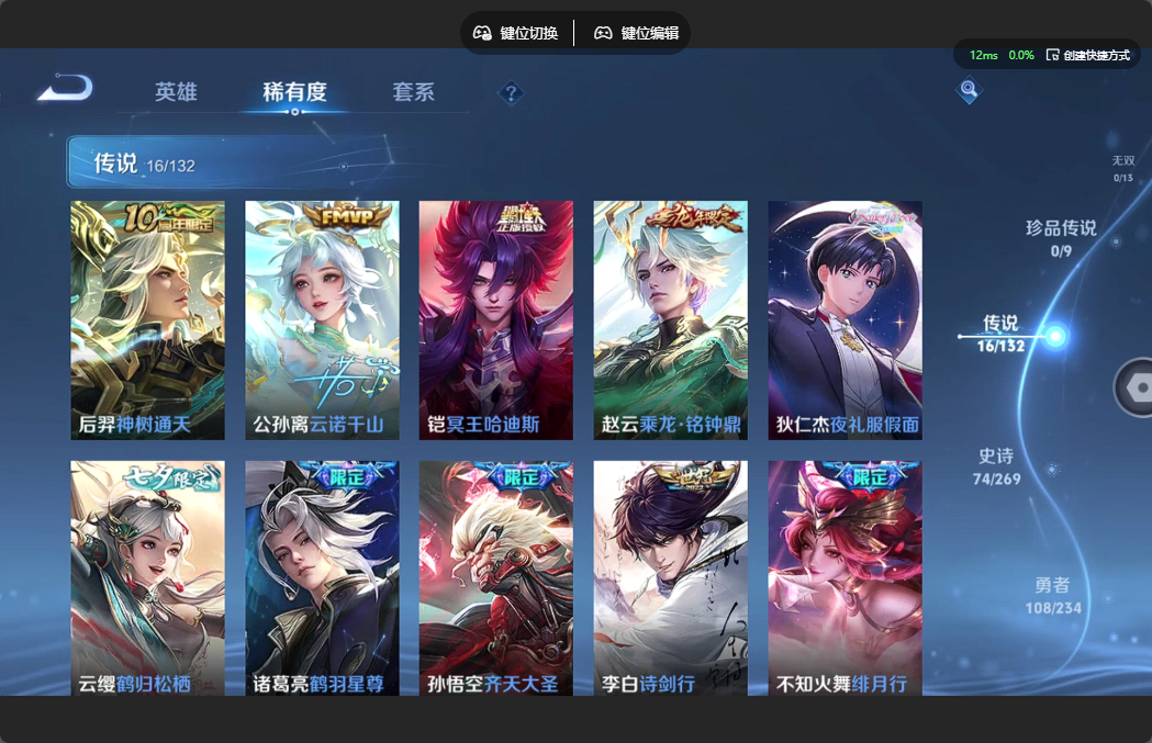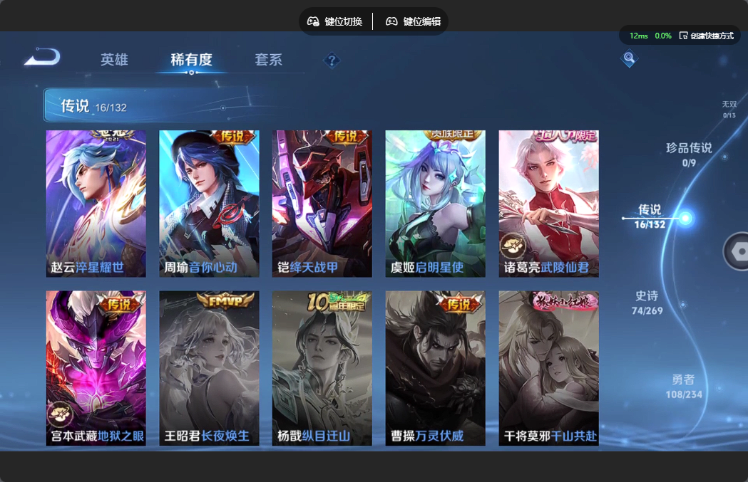 v8【16传说 夜礼服假面 弑呛猎影 贵族积分60895 荣耀印记 12皮肤按键】苹果qq/v8/最强王者/254皮肤/127英雄/1典藏/16传说/73史诗/8稀有英雄【2 星传说皮肤】未来机甲 孙尚香幽冥之眼 宫本武藏【1 典藏皮肤】弑呛猎影 韩信【16 传说皮肤】鹤归松栖 云缨启明星使 虞姬齐天大圣 孙悟空夜礼服假面 狄仁杰诗剑行