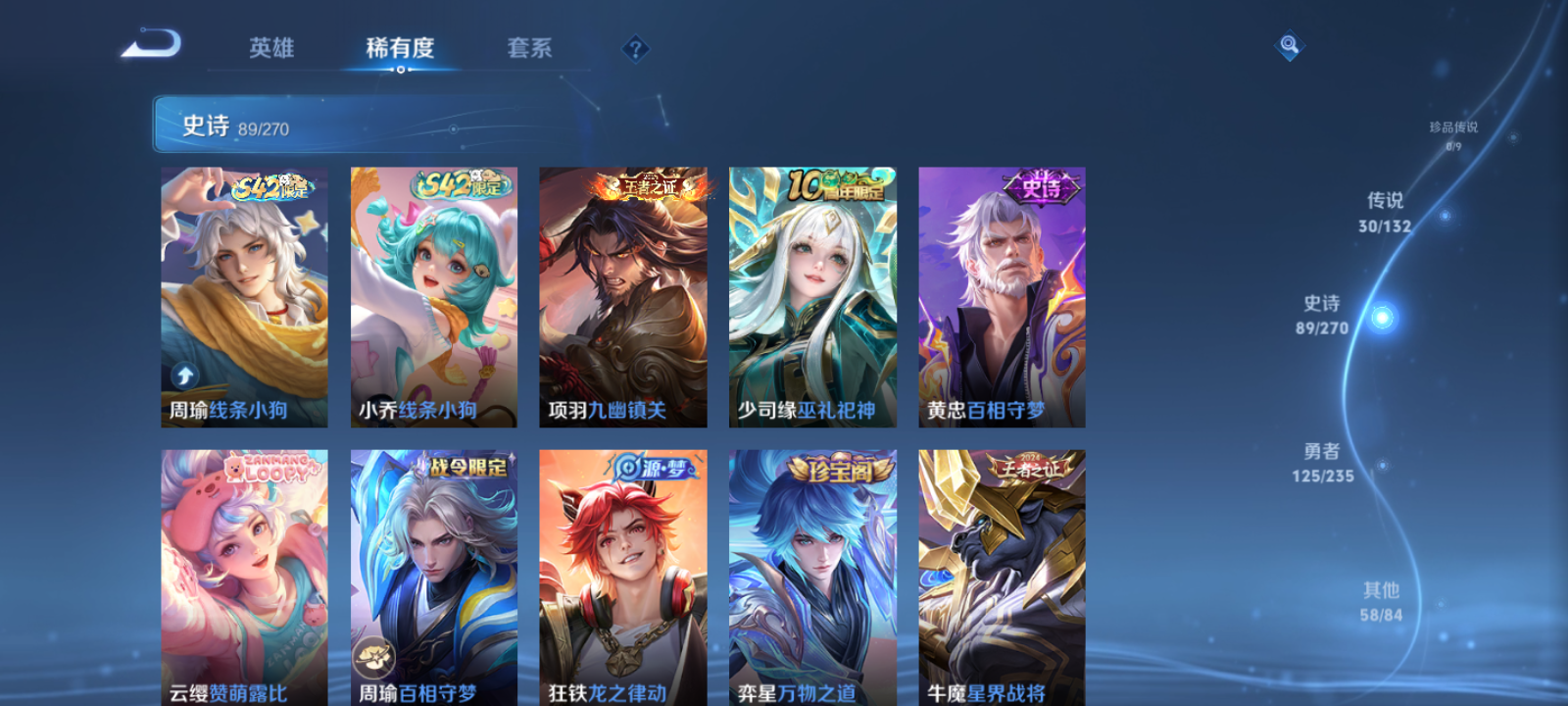 【王者荣耀】【lywz30205】珍品无双0 典藏2 无双0 珍品传说0 传说30 史诗88 英雄128 皮肤304 贵族8级 荣耀典藏:九霄神辉|弑呛猎影__传说皮肤:鸣野蒿|前尘镜|深海之息|无双飞将|绛天战甲|炽阳神光|启明星使|仲夏夜之梦|黄金射手座|猫影幻舞|刘备-时之恋人|一念神魔|冠军飞将|乞巧织情|淬星耀世|瑶-时之祈愿|绯月行|浮生妄|孙尚香-末日机甲|齐天大圣|祈雪灵祝|燃星之曲|霜月吟|逐花归海|云缨-鹤归松栖|山海·苍雷引|山海·炽霜斩|山海·琳琅生|幻光神呛|神树通天__稀有限定:朱雀志|神威|孙行者|傲雪梅呛|山海·碧波行|山海·玄木吟|神器·万象笔|拒霜思|暗影游猎|百解令|大漠名商|地狱燃心|电玩高手|古海寻踪|海滩派对|海盐诗旅|胡桃夹子|胡桃异想国|华丽摇滚|皇家上将|剑破天穹|江河有灵|黎明之约|魔术师|花木兰-默契交锋|匿光侦查者|奇幻香踪|擒涛扼浪|青焰无极|荣光圣徽|死亡摇滚|探海日志|天穹祈灯|阿古朵-顽趣|无心|五谷丰年|午后时光|纤云弄巧|星界游侠|阴阳师|优雅恋人|游园惊梦|驭风魔法|原初追逐者|暗夜贵公子|暗夜猫娘|暗隐猎兽者|缤纷独角兽|冰冠公主|冰雪圆舞曲|苍穹之光|乘风破浪|德古拉伯爵|电玩·爆裂旋风|功夫厨神|鬼剑武藏|黄金分割率|箭羽风息|金属风暴|龙骑士|吕布-末日机甲|玫瑰异探|魅力维加斯|魅语|梦奇-顽趣|女仆咖啡|绅士熊喵|圣诞狂欢|圣诞恋歌|水果甜心|水晶猎龙者|孙策-猫狗日记|天才门将|晚萤|赵云-未来纪元|星夜王子|雪夜绮愿|摇滚巨星|银翎春语|鹰眼统帅|永昼|幽灵船长|遇见神鹿|钟无艳-超时空战士|紫霞仙子|赵怀真-鹤归松栖|噬灭天穹|天穹之誓|修罗|千年之狐|刘备-百相守梦|无限星赏官|特工魅影|心灵骇客|星界战将|谧流熔炉|万物之道|云中旅人|玲珑珍味|流音漫舞|暖冬·兔眠|灵卜魔法|苍威无极|落雪兰心|华尔街大亨|龙之律动|虚灵犬护|逆浪荇歌|孙策-百相守梦|周瑜-百相守梦|赞萌露比|黄忠-百相守梦|巫礼祀神|鹤鸣心笺|九幽镇关|小乔-线条小狗|周瑜-线条小狗__优质皮肤:尼罗河女神|创世神祝|埃及法老|孤猎|木偶奇遇记|熊喵少女|午夜歌剧院|露花倒影|激情绿茵|海之征途|秩序猎龙将|锦衣卫|冰刃幻境|森|超能战警|英喵野望|维京掠夺者|海军大将|绯红之刃|踏雪寻梅|启蛰|伊势巫女|画中游|生化警戒|威尼斯狂欢|第七人偶|街头旋风|绝影神呛|地府判官|幸存者|赤焰之缨|隐刃|前尘|特种部队|精灵王|剑舞者|龙域领主|爱与和平|花间舞|魇语军师|极冰防御线|花见巫女|蔷薇王座|灼热之刃|精准探案法|圣殿之光|战争女神|霓裳曲|阿摩司公爵|异域舞娘|精灵公主|修竹墨客|万圣前夜|动物派对|长夏之忆|破阵·退雄兵|异域游侠|暗都幽影|功夫炙烤|暖冬絮语|幻夜行动|聚星闪耀|潮玩探月行|秘密基地|次元突破|鲨炮海盗猫|野性能量|虹云星官|守护之力|坚韧之力|幻乐之宴|功夫老勺|命运角斗场|幻想奇妙夜|海滩丽影|阿尔法小队|兔女郎|死亡骑士|黄金武士|少女阿狸|天使之翼|玩偶对对碰|东方不败|红桃皇后|忍·炎影|街头霸王|教廷特使|鸿运当头|金色潮汐|决胜大满贯|破局者|王牌新星|零食大作战|西部游侠|太极少年|乐园追猎者|牛运亨通|幻泉雾影|潮玩造梦师|危途狂花|拳王|时尚教父|救世之瞳|白色死神|程咬金-星际陆战队|白执事|哥特玫瑰|魅影绮裳|西施-雪境奇遇|金福满堂|星梦巡礼|灵卦秘语|掌控之力|雾都夜雨|逐霄战戟|铁骨偃魂|纽约教父|龙腾万里|经纬探寻者|敏锐之力|西施-归虚梦演|孙悟空-西部大镖客|热血海滩|龙舞盛年|汉昭烈帝|乓乓大师|五福同心|万事如意|唤灵魔甲|太乙真人-圆桌骑士|沉稳之力|完美运算|化身博士|花好人间|熔金海岸|万象初新|潮玩骑兵|苍林狼骑|劲辣红锅|炽热元素使|妄想特派|命运加冕|小满鸭|死霸装|无双福将|锦麟游梦|踏浪烽翎|戏梦巡演|径山谋武|极光幻客|溯影追猎|桑启-线条小狗|妲己-线条小狗__贵族等级:贵族8级__王者段位:非凡王者精品打野号【小国1w云缨 47段打野】典藏花木兰 韩信 逐花归海,时之恋人,时之祈愿,浮生妄,炽阳神光,绯月行等