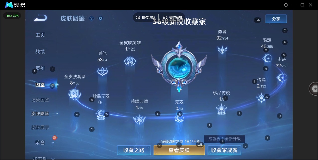 v7 1典藏 1珍品传说 2传说 125英雄 181皮肤 可修改实名 【英雄全皮】影全皮 【稀有英雄】大司命夏洛特夏师傅金蝉唐僧戈娅赵云韩信韩跳跳艾琳不知火舞娜可露露鸟人橘右京橘子 【荣耀水晶】鸣剑·曳影 【珍品传说】江户川柯南 【传说皮】神树通天