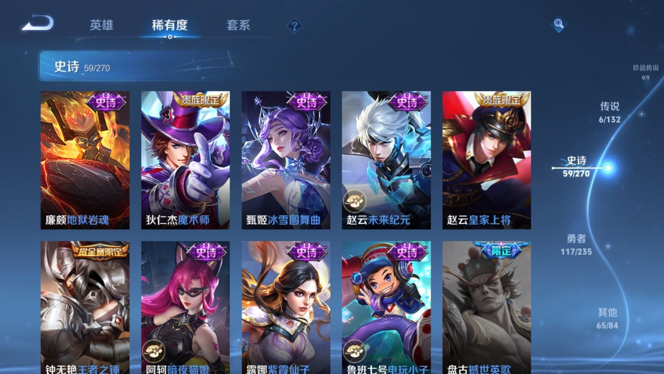 128英雄-248皮肤v7-1典藏6传说【典藏】 星域神启 【传说】 游龙清影 碎云 云鹰飞将 黄金白羊座 时之恋人男 仲夏夜之梦 【热门】至尊宝 梅西 冰封战神 逐梦之影 引擎之心 猎兽之王 蓝屏警告 神迹守卫钟馗 狮舞东方 朔望之晖 星空之诺 银河之约 暗影游猎 原初追逐者 梁祝 狂想玩偶喵