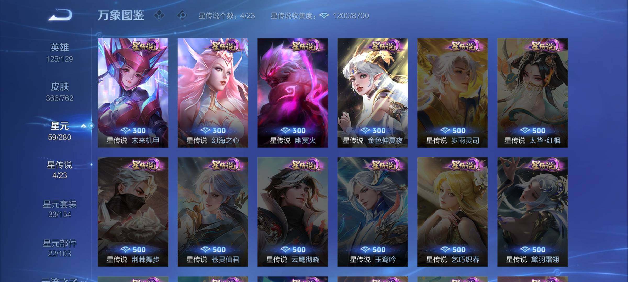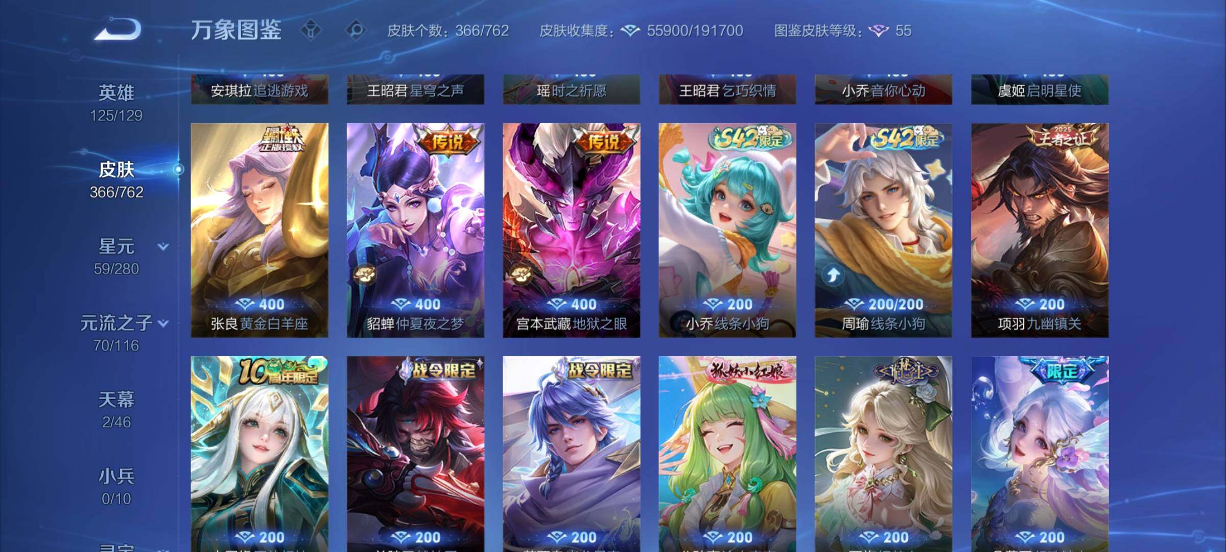 【精品女号·全皮瑶·馥梦繁花·甄姬雪境奇遇·器灵落星盏·金色仲夏夜·至美化雀舞·星穹之声·长夜焕生·愿照众生和·愿照福禄聚·愿照岁时盈·朵莉亚心动手记·乞巧织情·映山客·貂蝉曦玄引·财神纳福天幕·可二次】w14692-安卓q-125英雄-366皮肤-12王者印记-110铭文-贵族积分14w【贵族9】【1典藏·1珍品无双·2无双·3珍品·4星传说·20传说·2天幕·38按键】【因赛季更新游戏