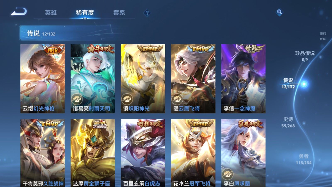 125英雄-247皮肤v7-12传说 【传说】 凤求凰 幻光神呛 白虎志 时雨天司 地狱火 炽阳神光 云鹰飞将 久胜战神 冠军飞将 一念神魔 黄金狮子座 地狱之眼 【热门】万灵启世 神威 白虎志 时雨天司 飞衡 后羿如梦令 大圣娶亲 辉光之辰 引擎之心 猎兽之王 蓝屏警告 神迹守卫钟馗 狮舞东方