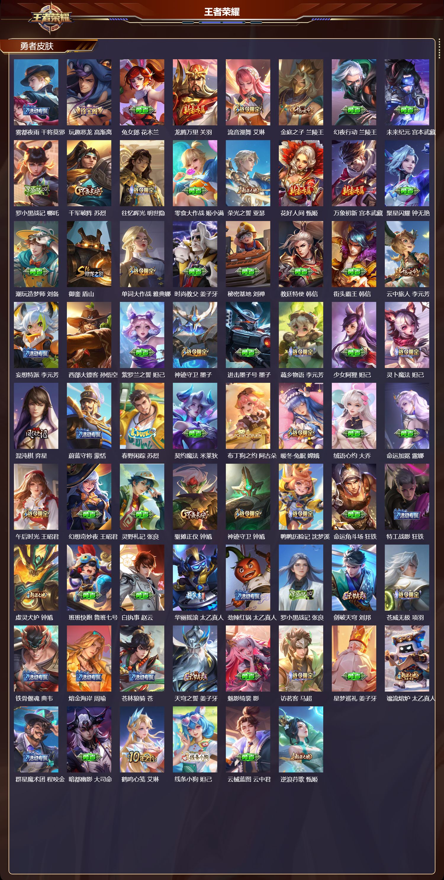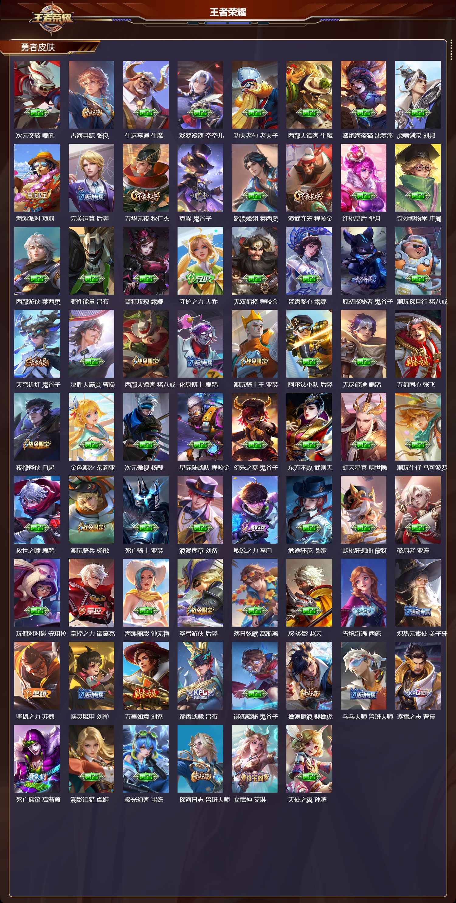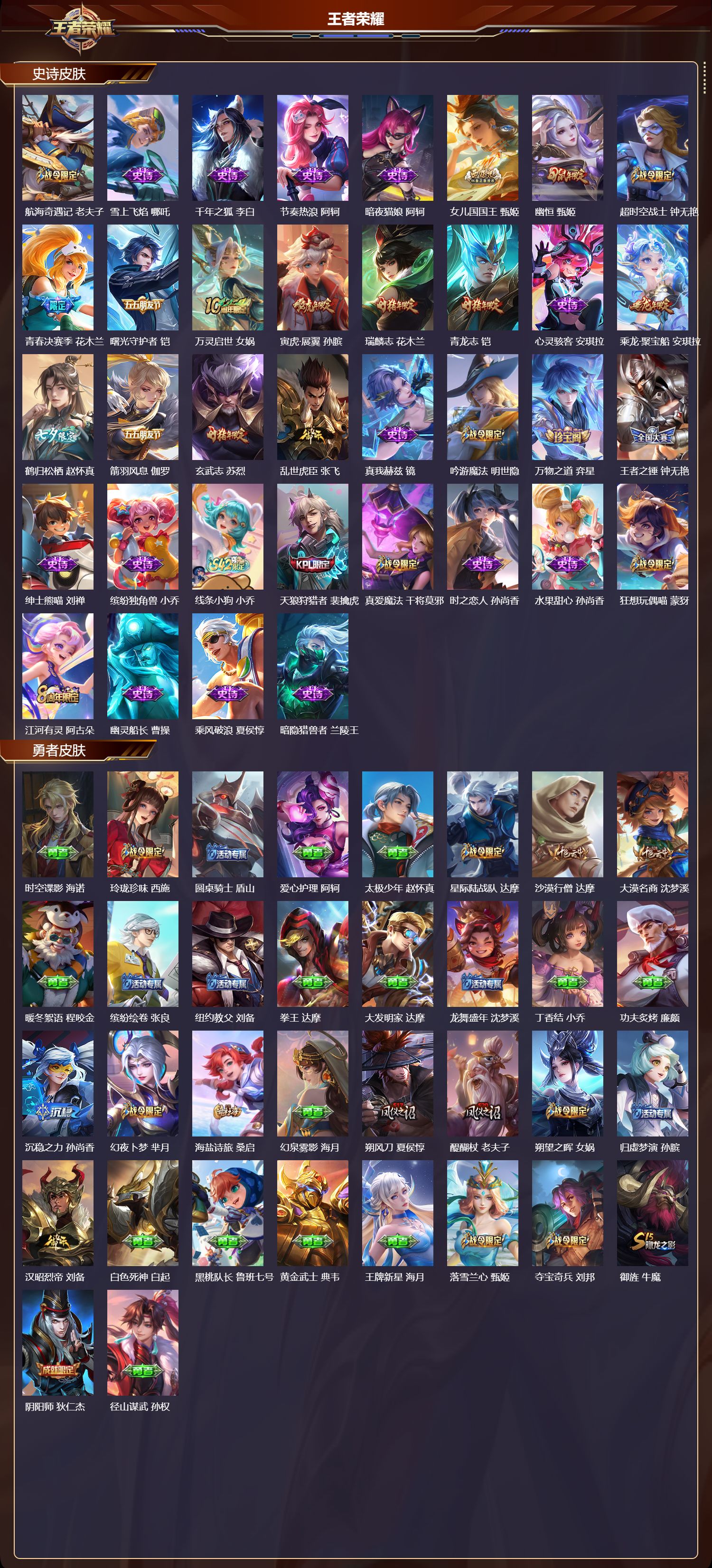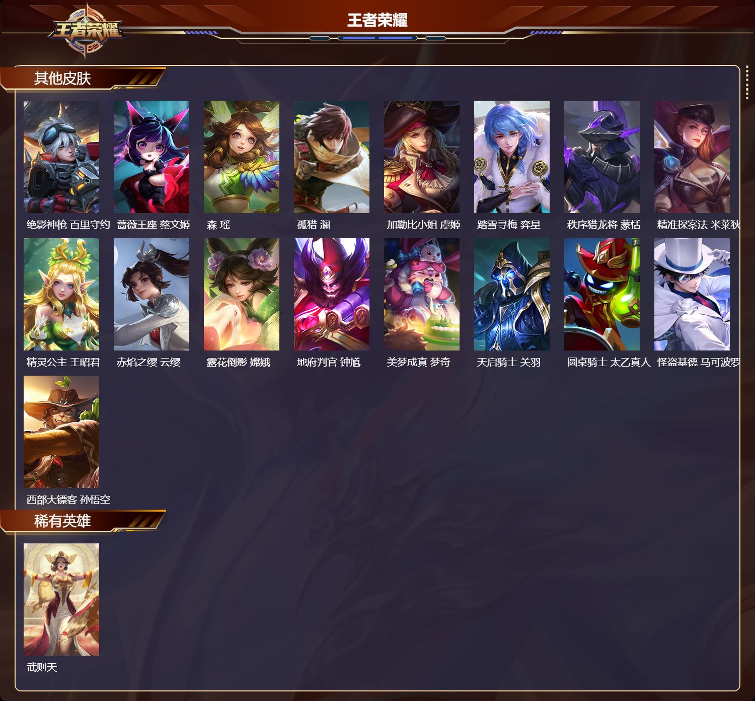 苹果qq/无双王者/505皮肤/128英雄/9典藏/0珍品无双/2无双/1珍品传说/65传说/169史诗/9稀有英雄【1 珍品传说】怪盗基德 马可波罗【9 典藏皮肤】鸣剑·曳影 李白倪克斯神谕 武则天银白咏叹调 铠幻阙歌 貂蝉星空梦想 鲁班七号弑呛猎影 韩信九霄神辉 花木兰大秦宣太后 芈月拾光映像 瑶【2 无双皮肤】雪境奇遇 甄姬神器·明辉仪 武则天【65 传说皮肤】枫霜尽