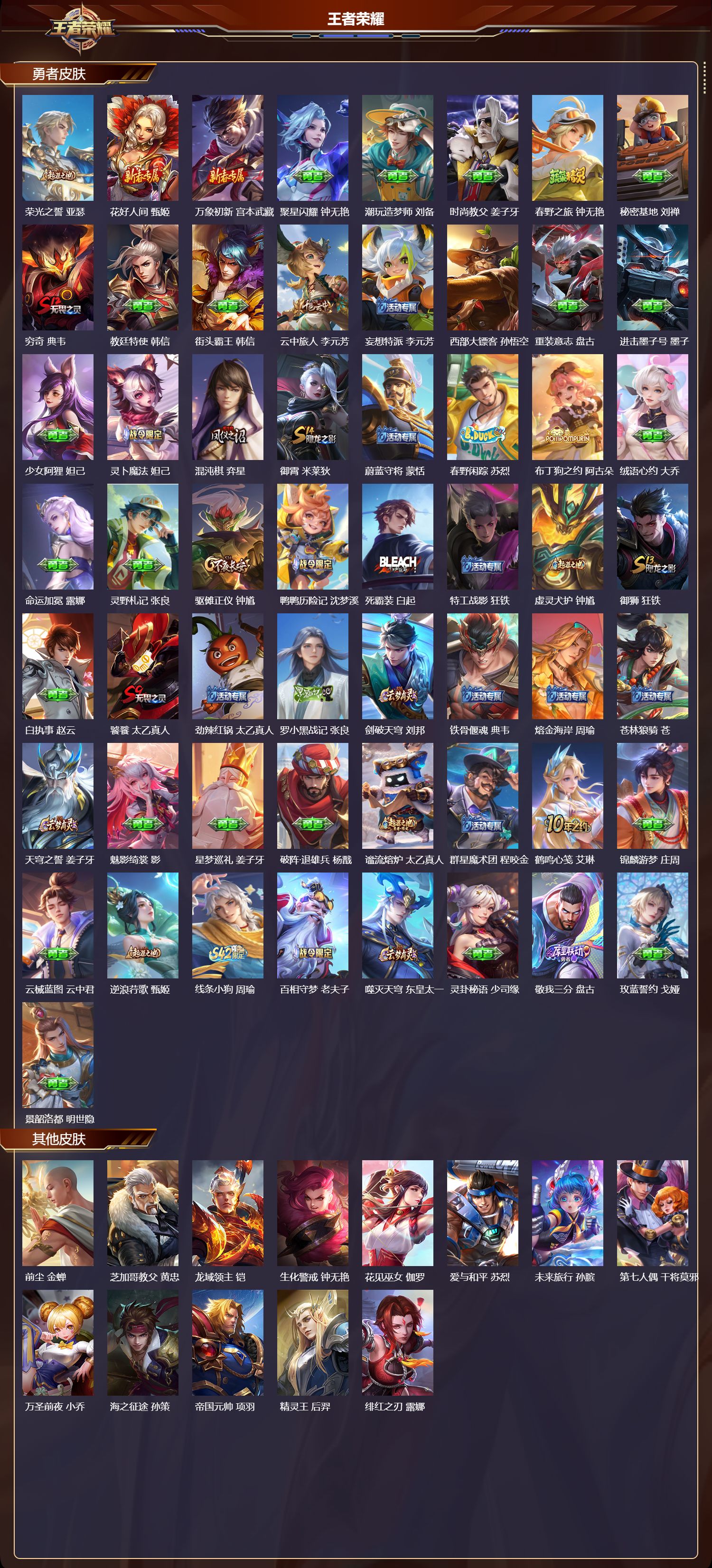 安卓qq/至尊星耀/244皮肤/127英雄/0典藏/0珍品无双/0无双/1珍品传说/4传说/54史诗/9稀有英雄【1 珍品传说】怪盗基德 马可波罗【4 传说皮肤】云鹰飞将 曜凤求凰 李白挚爱之约 孙策鸣野蒿 桑启【54 史诗皮肤】末日机甲 吕布白昼王子 嬴政紫霞仙子 露娜燃音魔法 高渐离心灵战警 亚瑟五谷丰年 鬼谷子无心 元歌巫礼祀神 少司缘鬼剑武藏 宫本武藏百相守梦