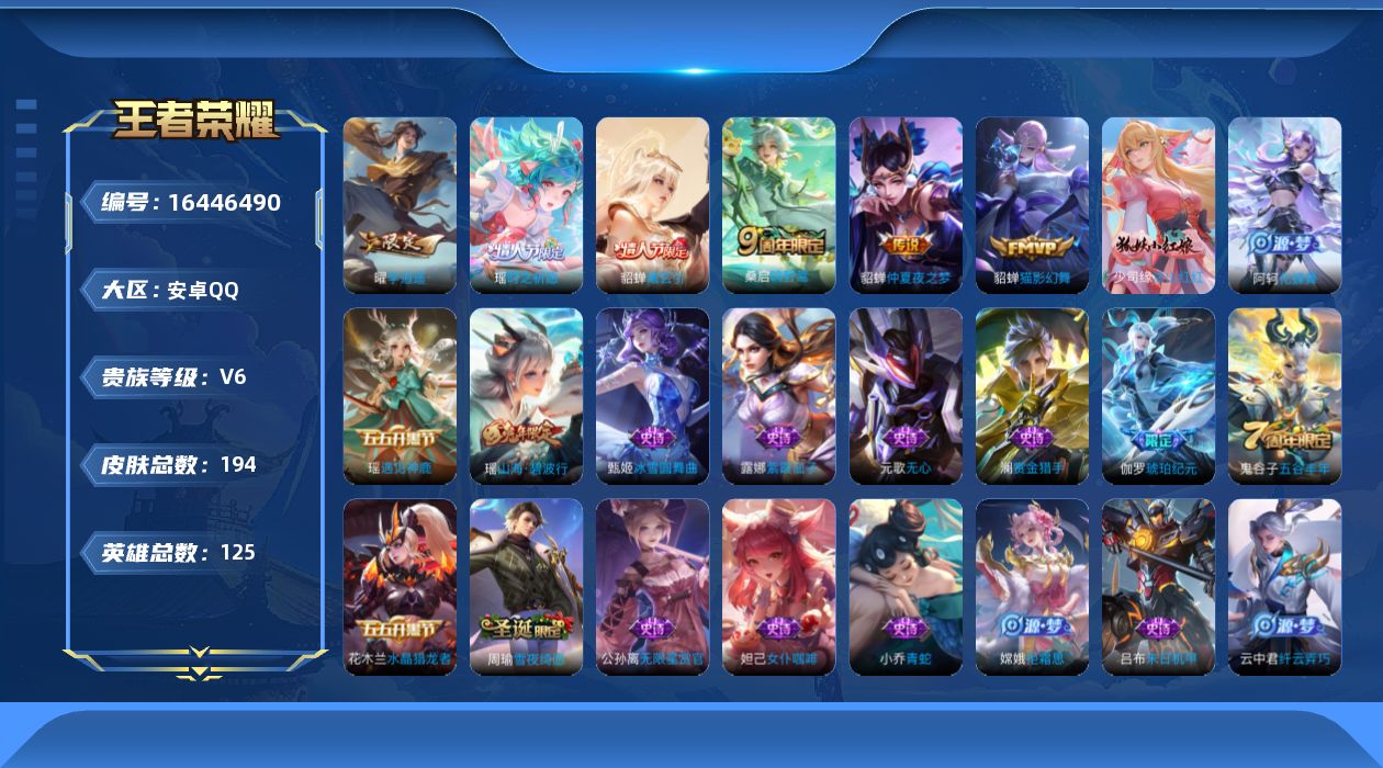 [16446490]v6 6传说 125英雄 194皮肤 可修改实名 女号 【稀有英雄】大司命韩信韩跳跳夏洛特夏师傅艾琳橘右京橘子娜可露露鸟人不知火舞赵云金蝉唐僧戈娅 【传说皮】貂蝉曦玄引李仲夏夜之梦大飞蛾猫影幻舞 【珍宝阁皮】蔷薇恋人女武神 【赛季/战令皮】噬灭天穹s37古海寻踪s33海盐诗旅s30擒涛扼浪s31探海日志s32天穹祈灯s34蔡文姬夏日便利店虞姬夏日便利店原初探秘者s21万华元夜s22演武夺筹s23驱傩正仪s24千军破阵s25沙漠行僧s26金庭之子s27大漠名商s28云中旅人s29 【史诗皮】涂山红红琥珀纪元伽罗化蝶舞遇见神鹿紫霞仙子特工魅影江河有灵雪夜绮愿周瑜百解令蒙犽无限星赏官偶像歌手青蛇冰冠公主末日机甲-吕布节奏热浪女仆咖啡水果甜心德古拉伯爵暗隐猎兽者舞动绿茵纤云弄巧拒霜思缤纷独角兽乘风破浪逐浪之夏月团寄思水晶猎龙者唤灵魅影金属风暴圣诞狂欢圣诞恋歌鹰眼统帅魅力维加斯赏金猎手无心未来纪元-赵云 【限定皮】鸣野蒿山海·碧波行瑶年限高山流水五谷丰年游园惊梦梁祝时之祈愿-瑶瑶传限 【普通皮】谧流熔炉苍林狼骑雪境奇遇-西施星梦巡礼劲辣红锅景韶洛都春野之旅漠中幻影功夫炙烤朵莉亚金色潮汐龙舞盛年熔金海岸玫蓝誓约浪漫序章荣光之誓罗小黑战记-张良春野闲踪秘证寻踪灵野札记聚星闪耀太极少年妄想特派热血海滩王牌新星鬼谷子天穹祈灯s34尼罗河女神完美运算时空谍影龙腾万里花好人间归虚梦演-孙膑归虚梦演-鲁班大师归虚梦演-曜归虚梦演-西施海滩丽影海滩派对皇家上将魔术师沉稳之力守护之力坚韧之力化身博士炽热元素使缤纷绘卷纽约教父特工战影圆桌骑士(盾山)乓乓大师次元突破天使之翼功夫老勺哥特玫瑰鲨炮海盗猫西部大镖客牛魔教廷特使阴阳师兔女郎死亡骑士少女阿狸忍·炎影紫罗兰之誓奇妙博物学秘密基地爱心护理野性能量冰雪圆舞曲未来纪元-宫本武藏东方不败玩偶对对碰瓷语鉴心幻想奇妙夜阿尔法小队幻乐之宴虹云星官孤猎露花倒影