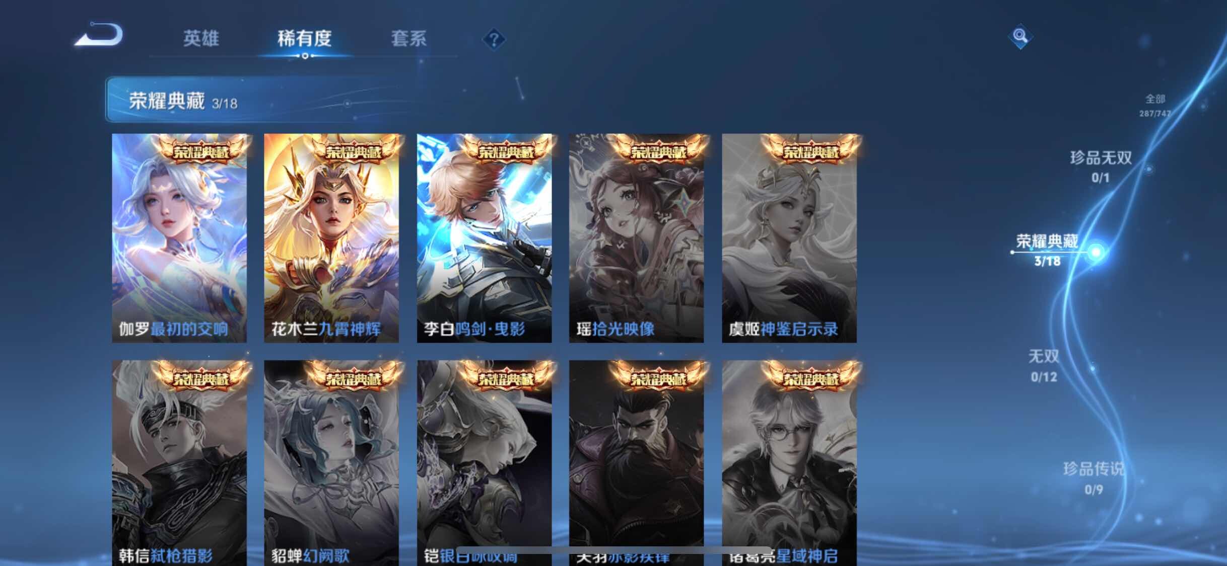 2301163-【44段发育路 伽罗最初的交响虞姬云霓雀翎李白凤求凰】苹果q-v8-最强王者段位-127英雄-287皮肤-3典藏皮肤-11传说-70史诗 【英雄全皮】:蒙恬全皮,戈娅全皮 【荣耀典藏】:李白鸣剑曳影,花木兰九霄神辉,伽罗最初的交响 【传说皮肤】:桑启鸣野蒿,李白诗剑行,赵云淬星耀世,虞姬启明星使,虞姬云霓雀翎,花木兰冠军飞将,后羿黄金射手座,李白凤求凰,孙尚香末日机甲,孙悟空