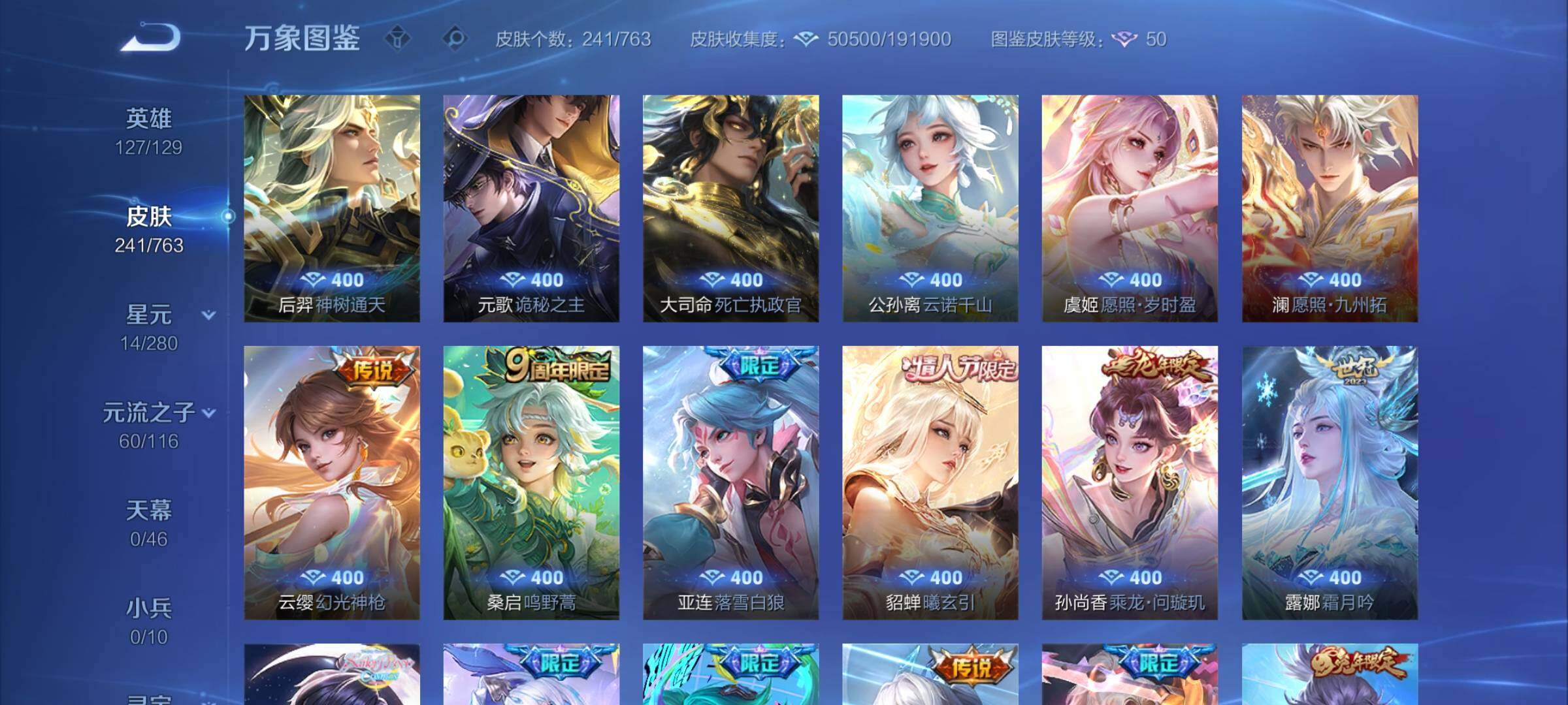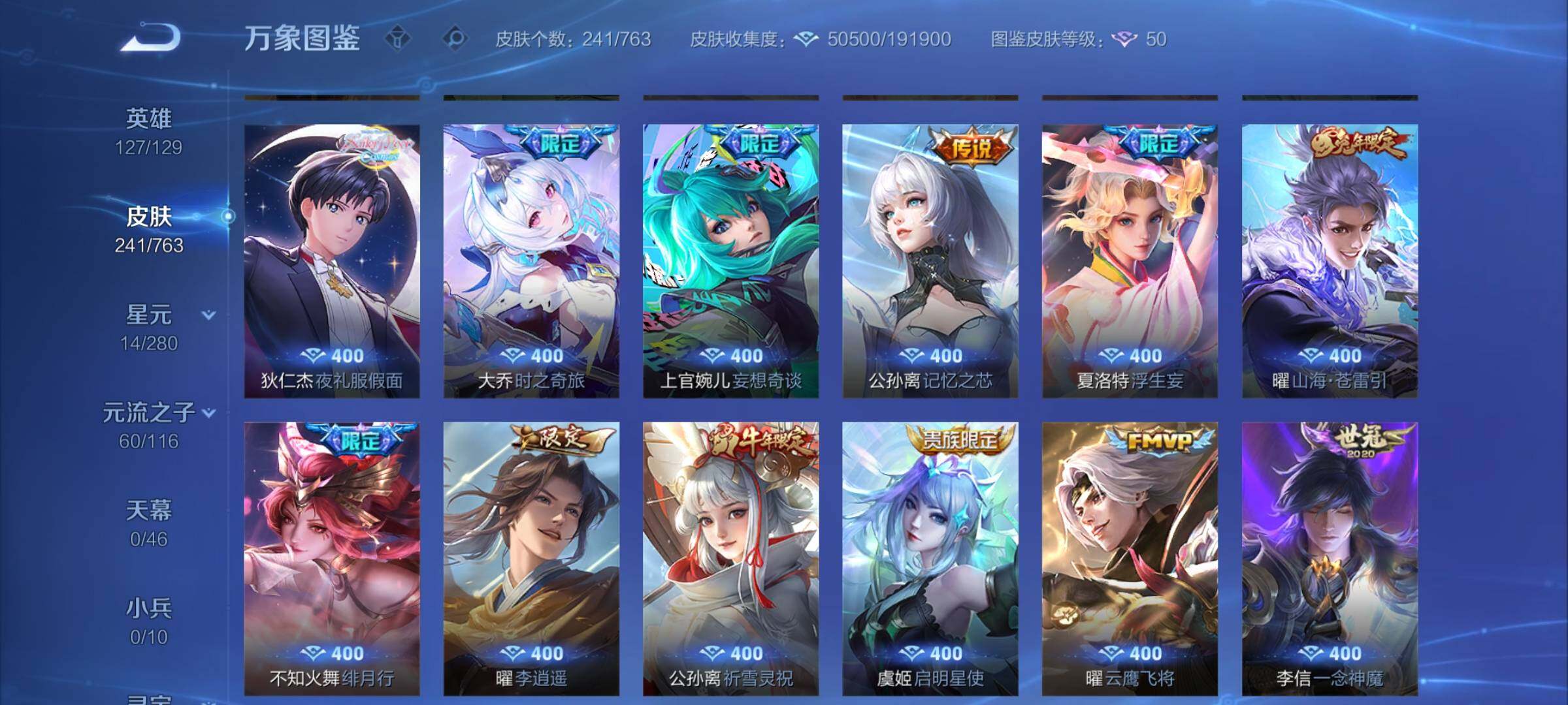 【高性价比推荐·6无双·金标1.1w公孙离·金标1.1w火舞·金标小乔·全皮公孙离·全皮曜·九霄神辉·离恨烟·真我赫兹·时之魔女·雪境奇遇·天机白泽·器灵螭龙剑·基德·孙策时之奇旅·器灵落星盏·大耳狗之梦·夜礼服假面·浮生妄·绯月行·诡秘之主·死亡执政官·愿照九州拓·愿照岁时盈·山海苍雷引·落雪白狼·貂蝉曦玄引·乘龙问璇玑·大乔时之奇旅·可二次】w14881-安卓q-127英雄-241皮肤