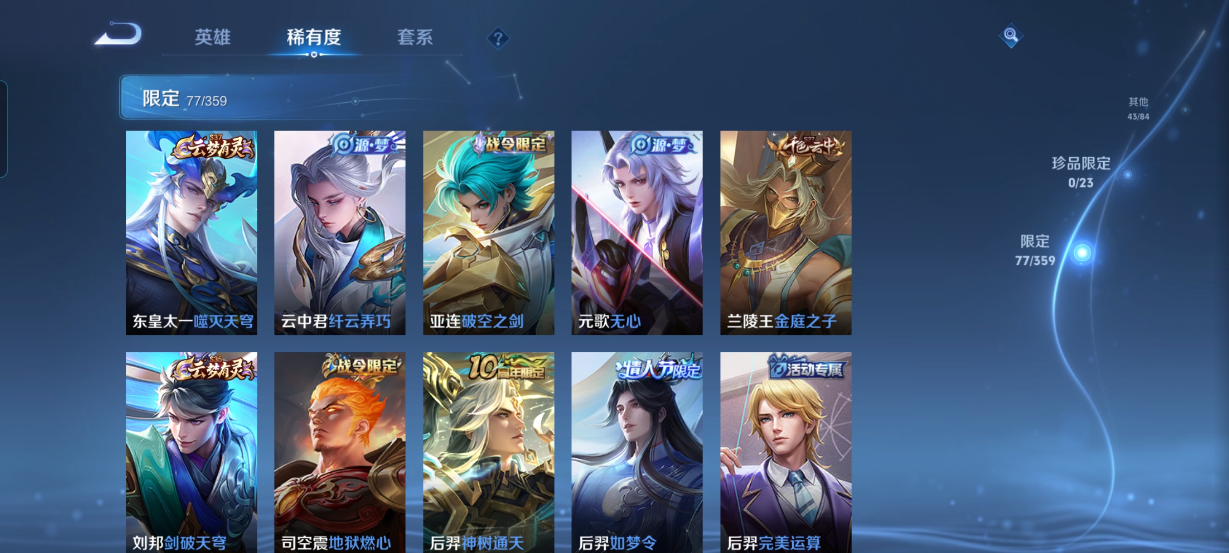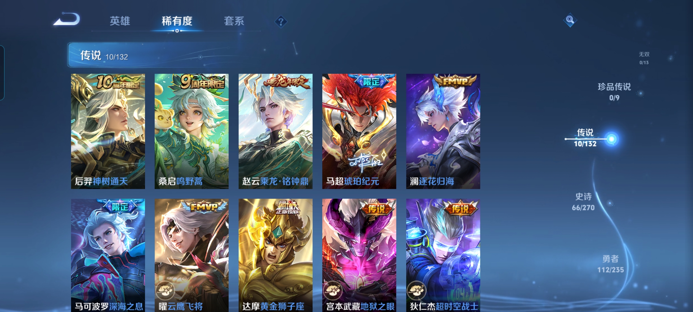 【v6 10传说 1星传说 打野29段】安卓q-231皮肤-125英雄 【传说皮肤】 神树通天 鸣野蒿 逐花归海 琥珀纪元 乘龙·铭钟鼎 深海之息 黄金狮子座 超时空战士 地狱之眼 云鹰飞将 【星传说】幽冥之眼【史诗皮肤】 蔬乡物语 蔬乡物语 破空之剑 百相守梦 傲雪梅呛 如梦令 青春决赛季 乒乒小将 孙行者 地狱燃心 青焰无极 雪夜绮愿 苍威无极 王牌新星 聚星闪耀 江河有灵