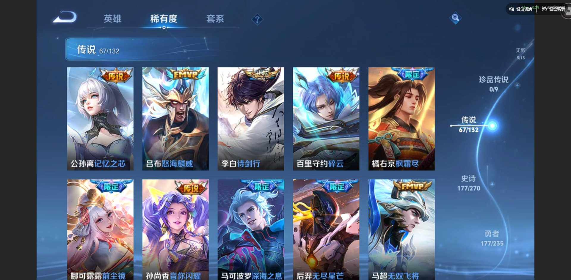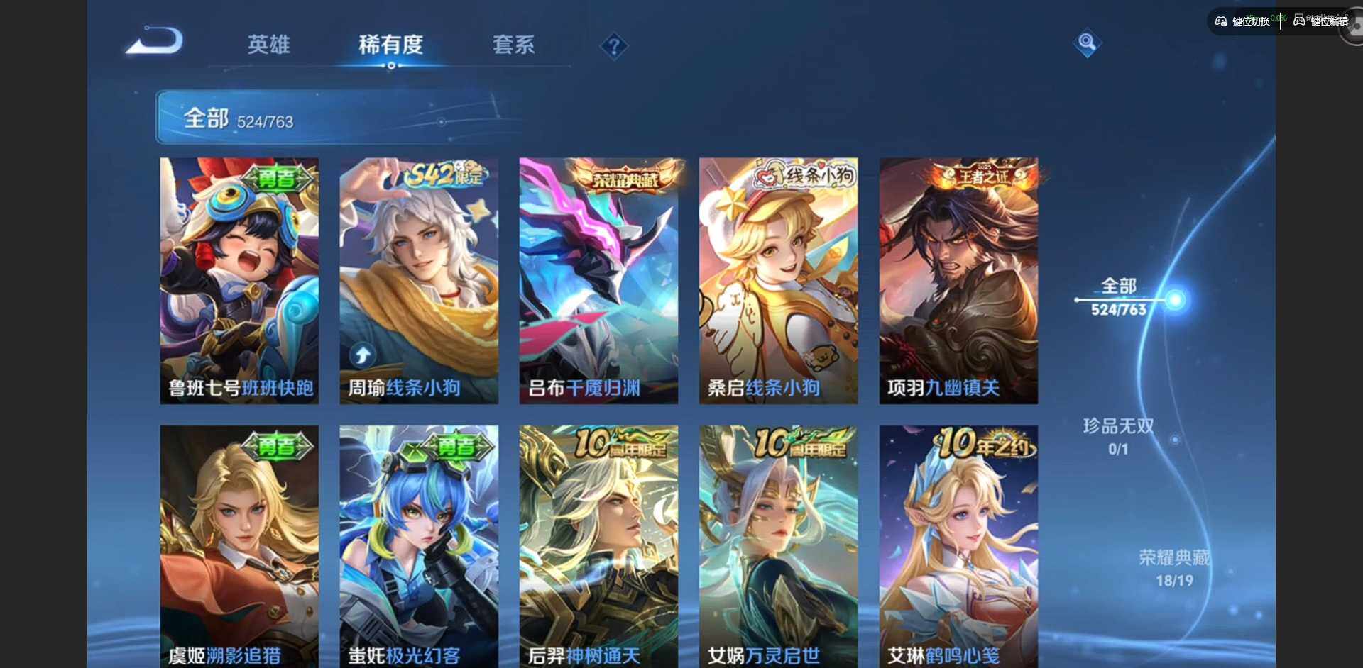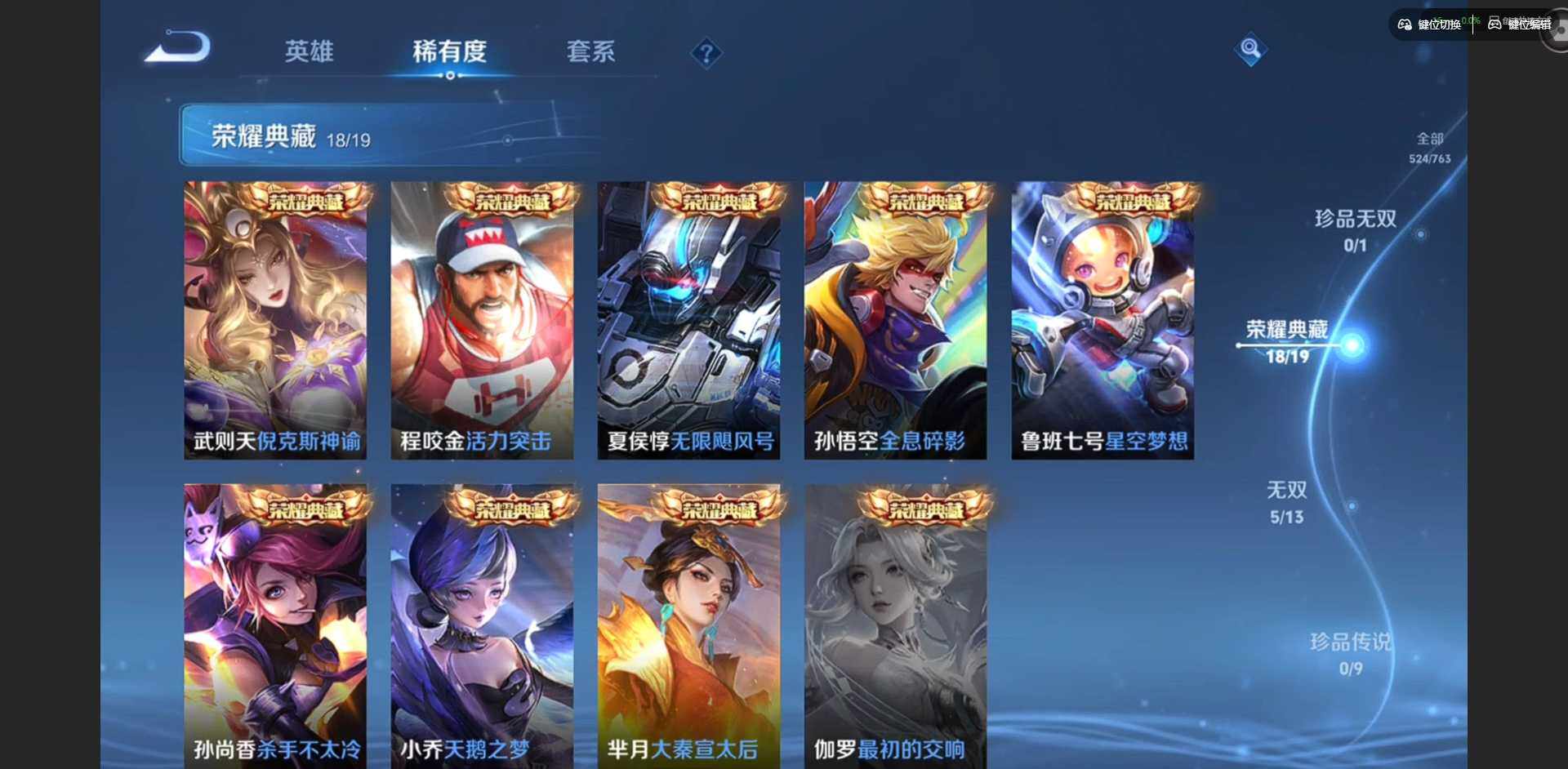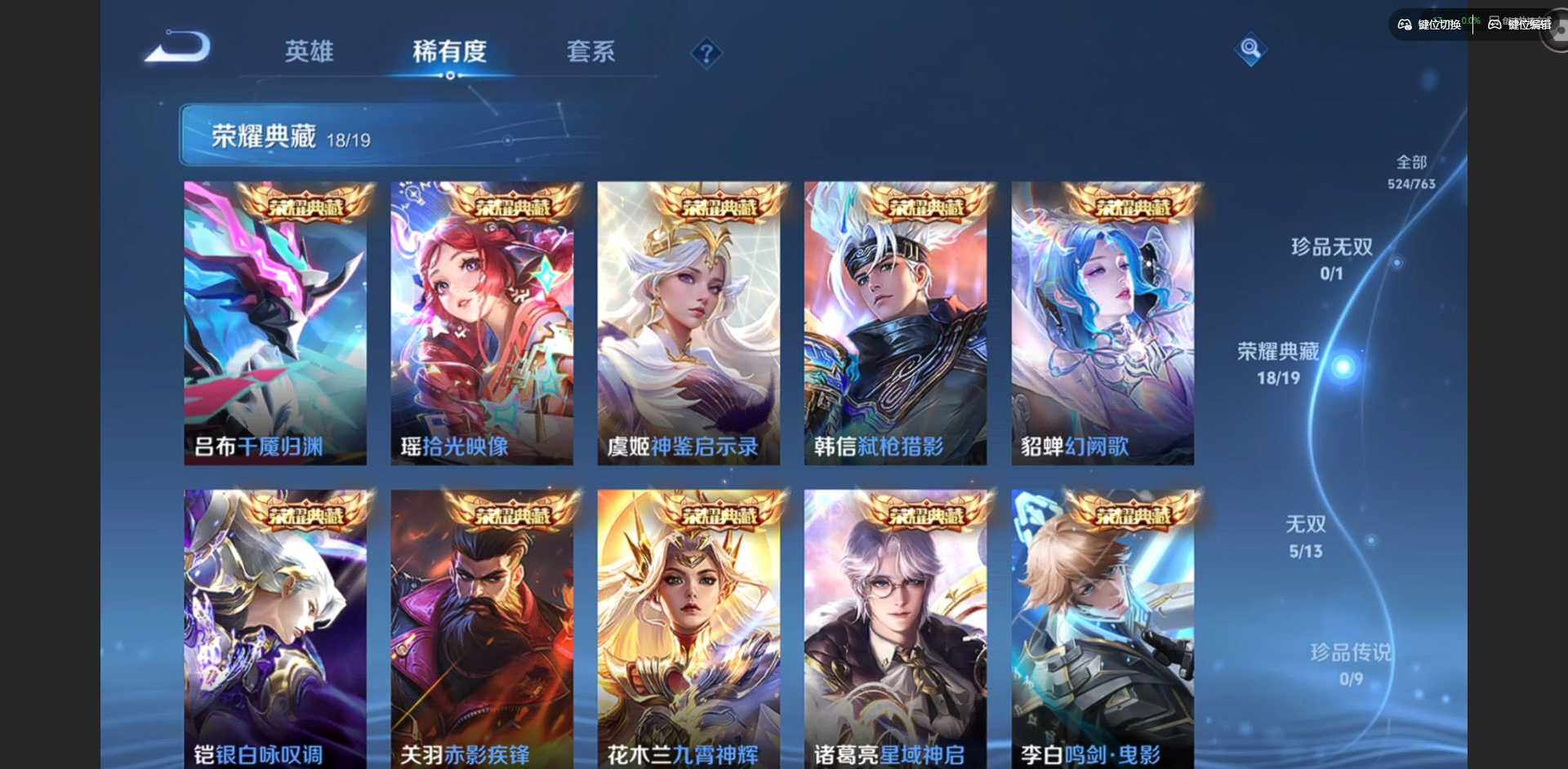 129英雄-524皮肤-【金标瑶 金标安琪拉 金标小乔 金标公孙离 猪年限定全套】实名: 可修改 贵族等级: v10 英雄数: 129 皮肤数: 524 荣耀水晶: 武则天天鹅之梦星空梦想倪克斯神谕无限飓风号活力突击杀手不太冷大秦宣太后鸣剑·曳影全息碎影星域神启九霄神辉赤影疾锋银白咏叹调幻阙歌
