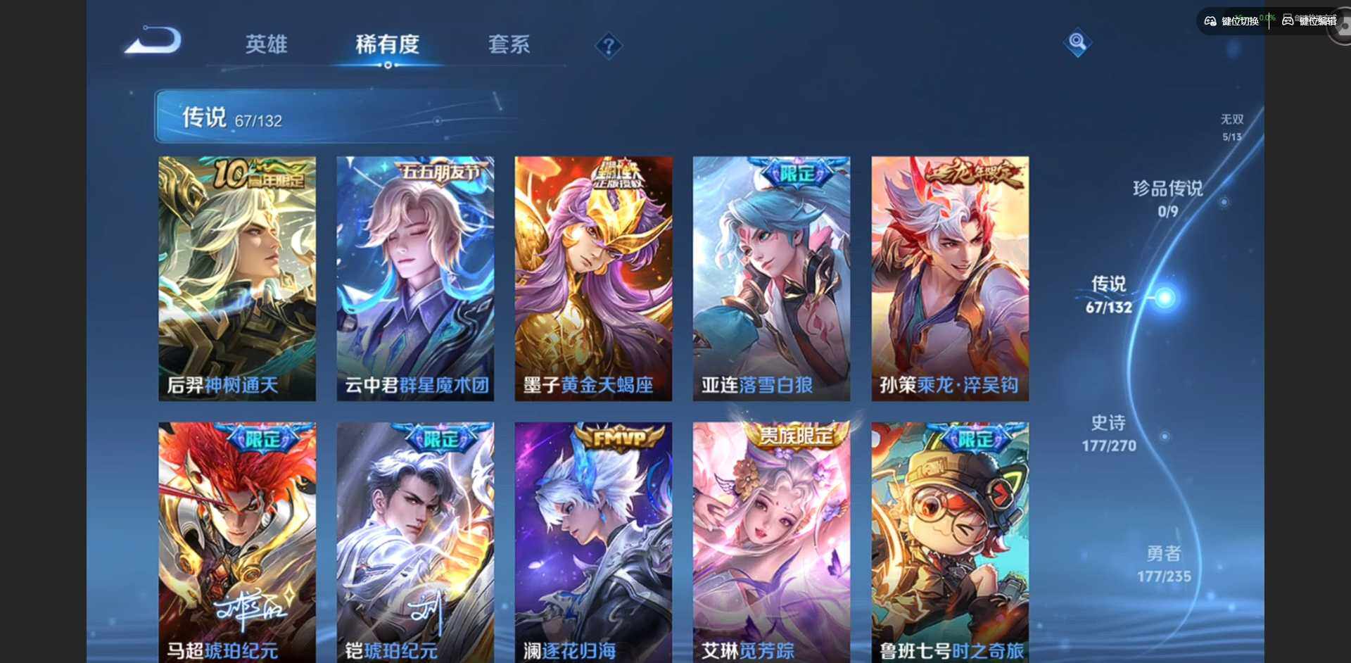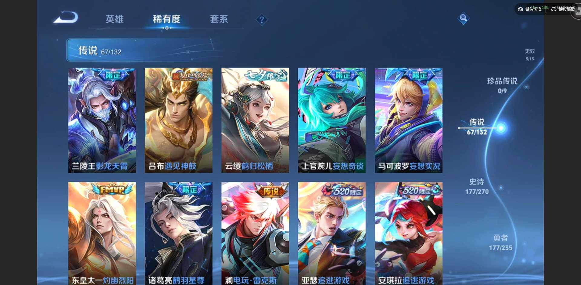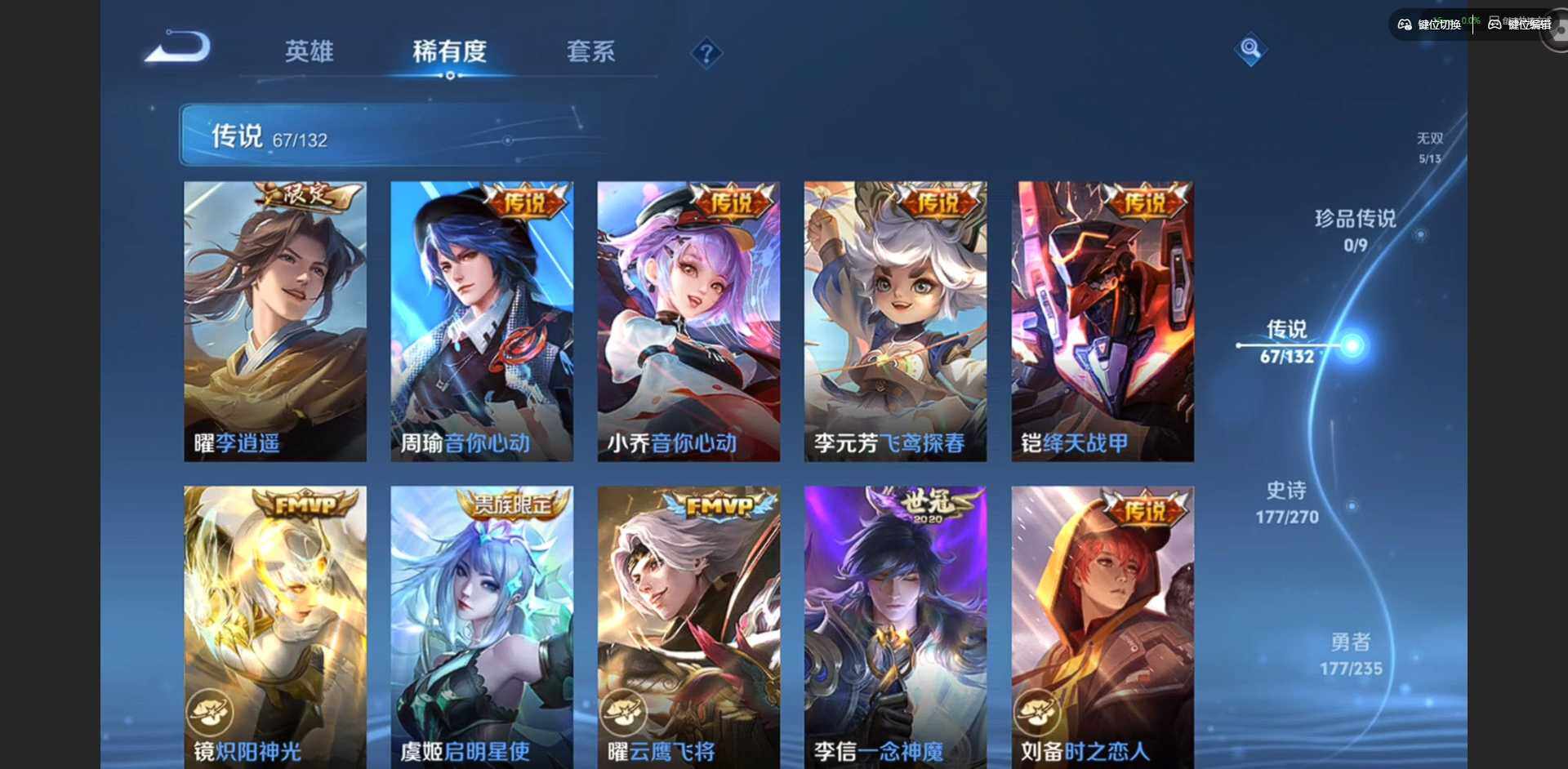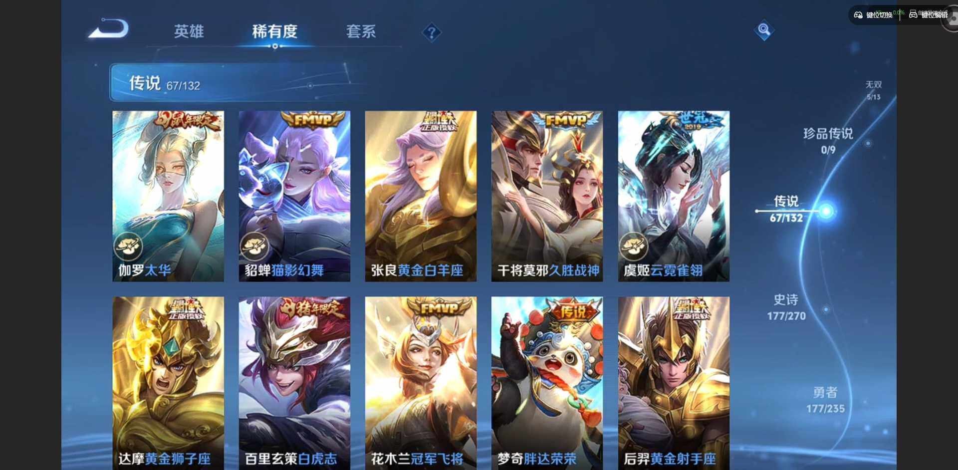 129英雄-524皮肤-【金标瑶 金标安琪拉 金标小乔 金标公孙离 猪年限定全套】实名: 可修改 贵族等级: v10 英雄数: 129 皮肤数: 524 荣耀水晶: 武则天天鹅之梦星空梦想倪克斯神谕无限飓风号活力突击杀手不太冷大秦宣太后鸣剑·曳影全息碎影星域神启九霄神辉赤影疾锋银白咏叹调幻阙歌