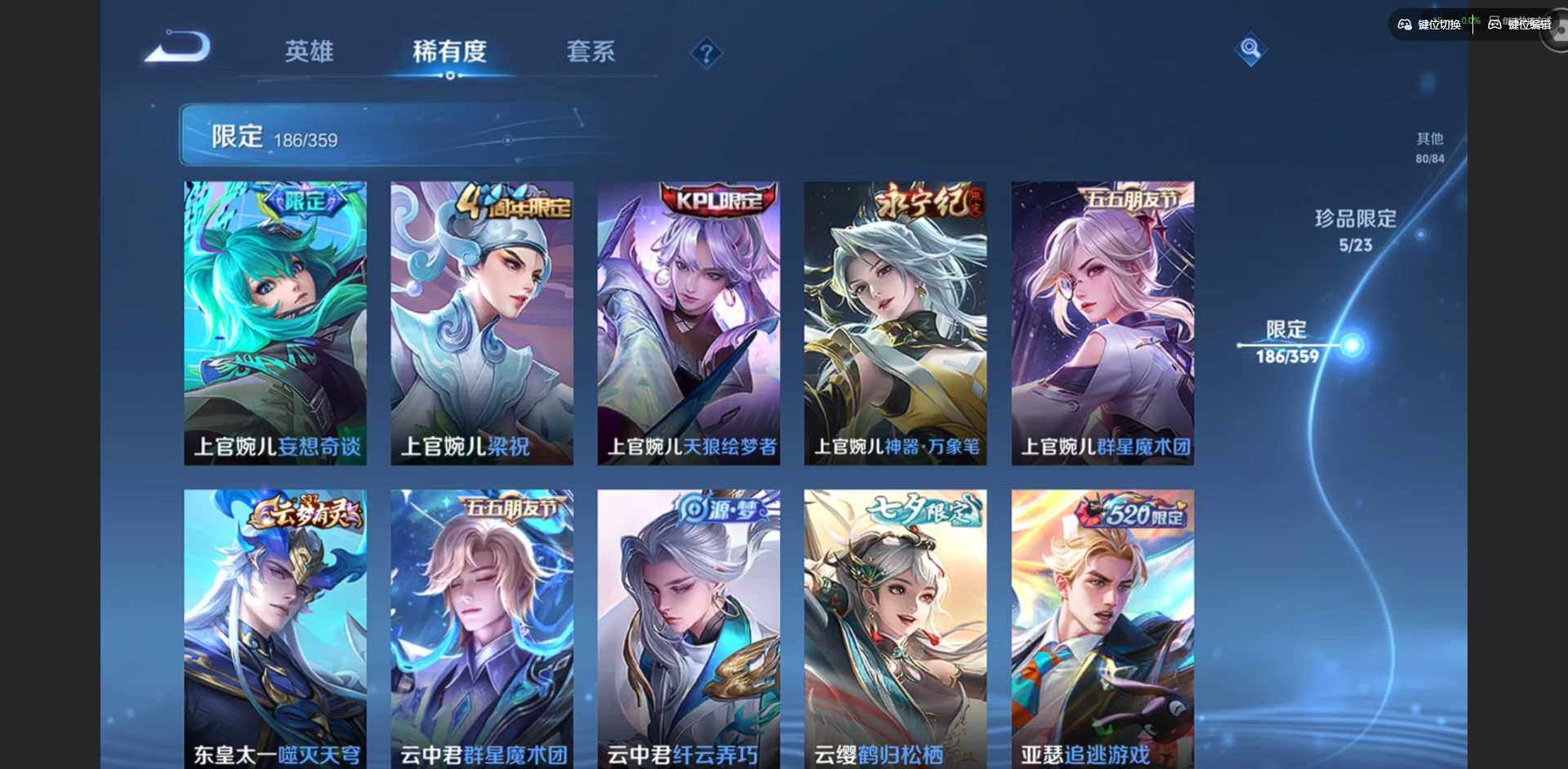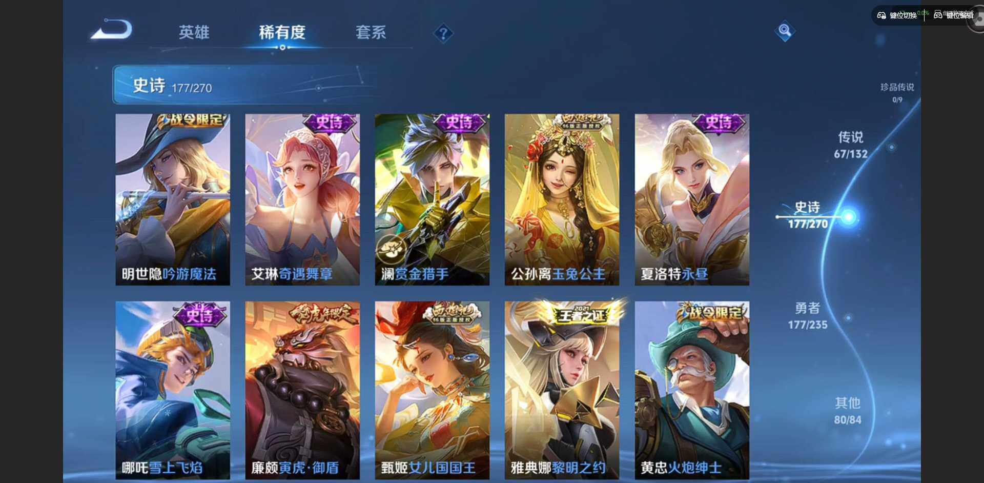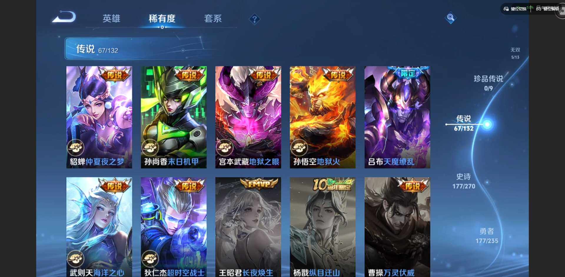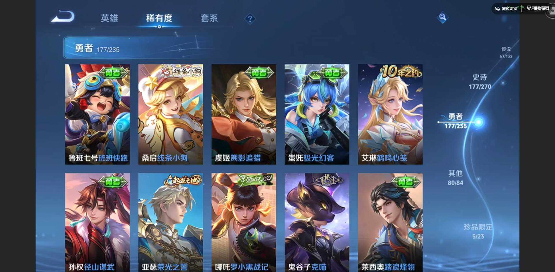 129英雄-524皮肤-【金标瑶 金标安琪拉 金标小乔 金标公孙离 猪年限定全套】实名: 可修改 贵族等级: v10 英雄数: 129 皮肤数: 524 荣耀水晶: 武则天天鹅之梦星空梦想倪克斯神谕无限飓风号活力突击杀手不太冷大秦宣太后鸣剑·曳影全息碎影星域神启九霄神辉赤影疾锋银白咏叹调幻阙歌